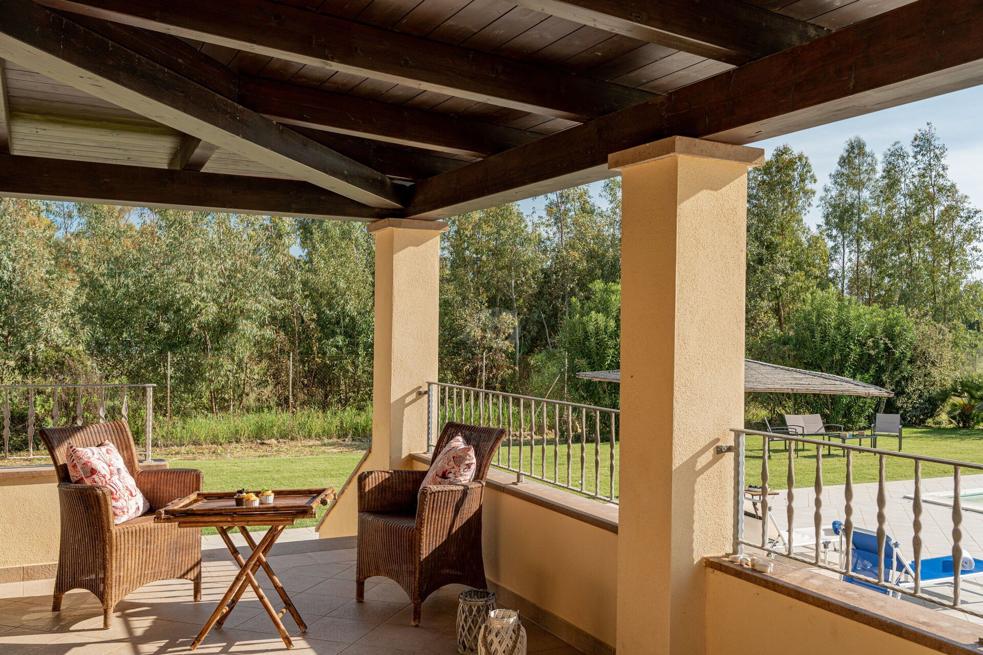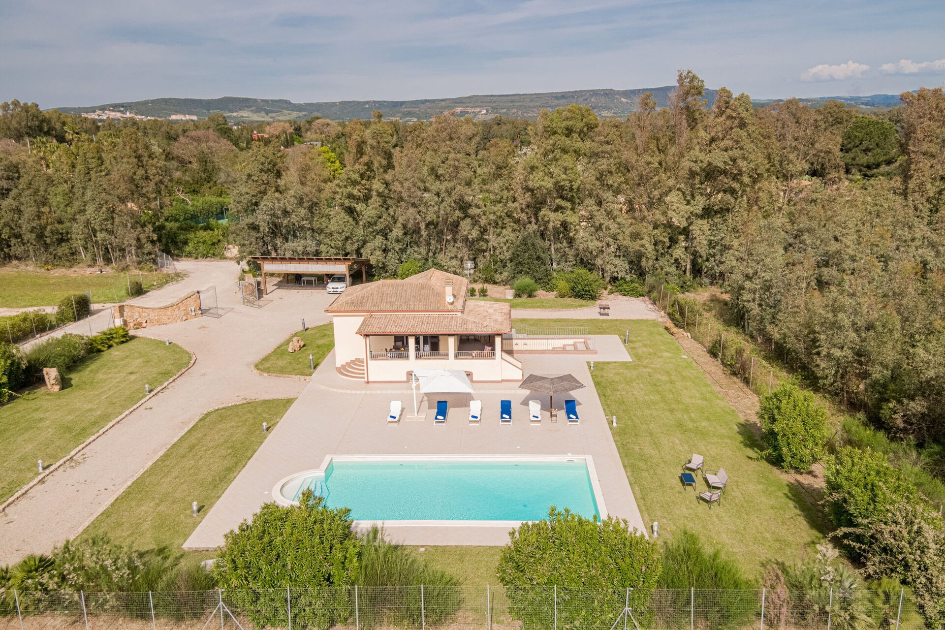 Es gibt auch einen überdachten Parkplatz auf der Rückseite der Villa.