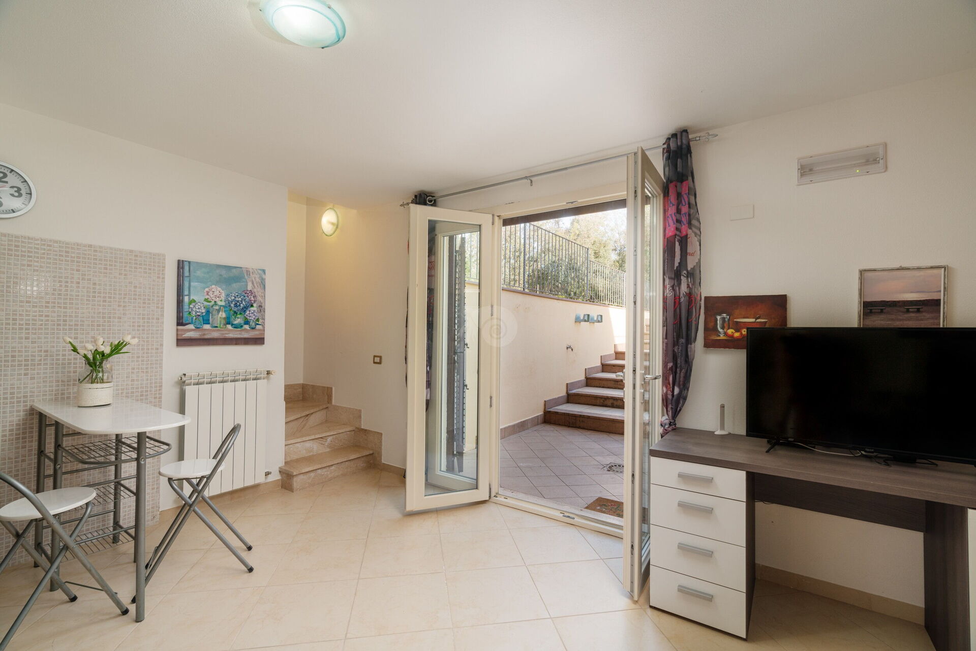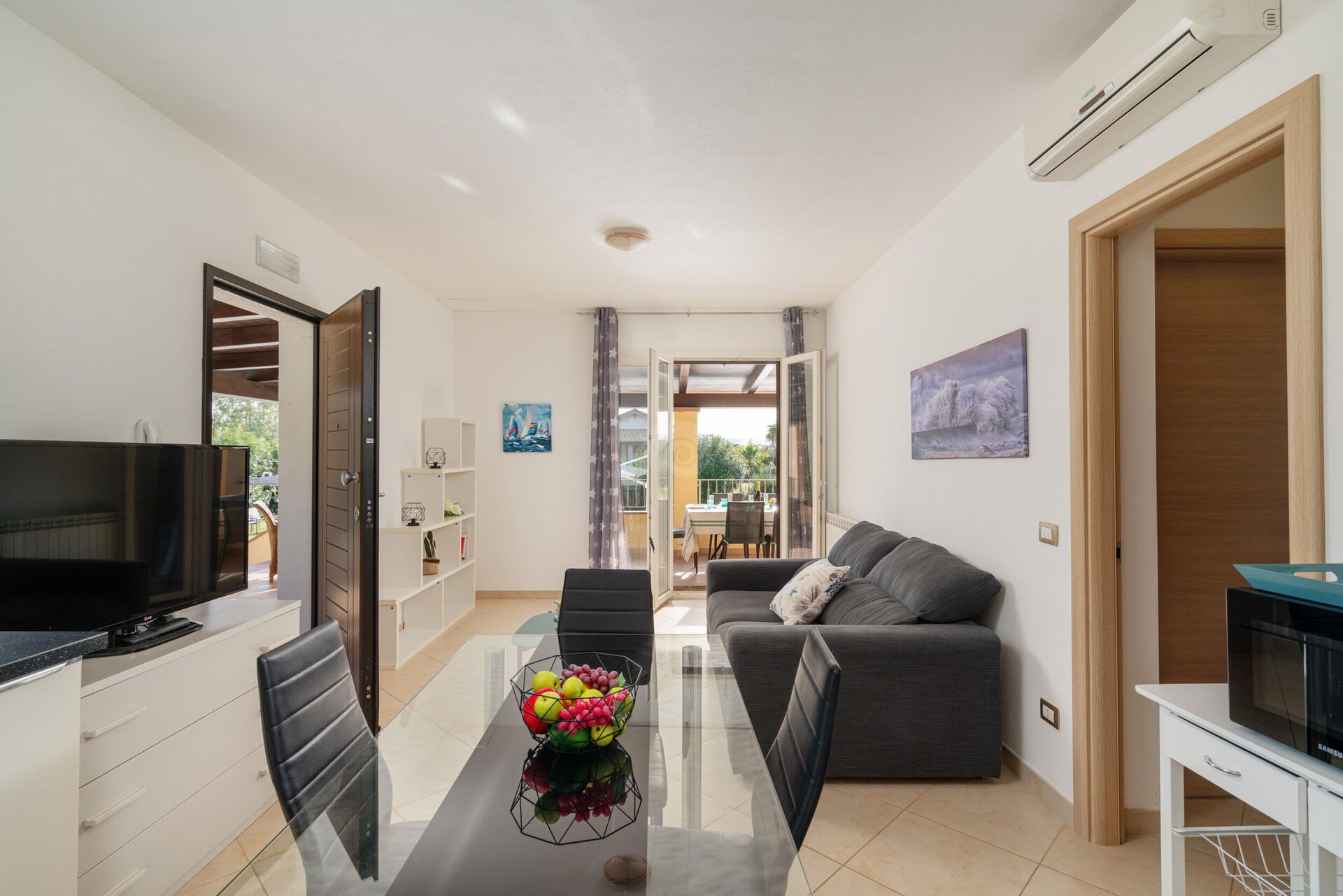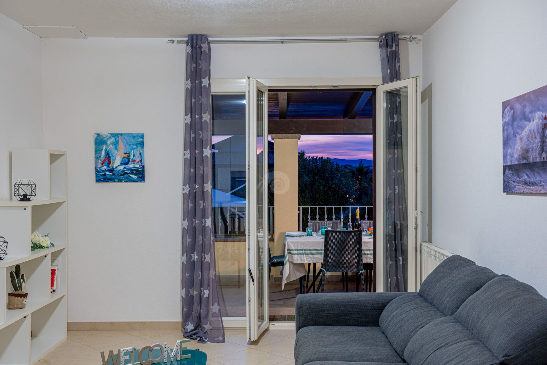 Das Besondere an der Villa Di Vina ist die große Helligkeit, die durch die vielen großen Fenster entsteht, die zu einem Gefühl von Wärme und Gemütlichkeit beitragen. Die Schlafräume verteilen sich auf beide Ebenen des Hauses und bestehen aus drei Doppelzimmern und einem Zweibettzimmer. Dank eines Schlafsofas kann die Villa bequem bis zu 10 Personen beherbergen.