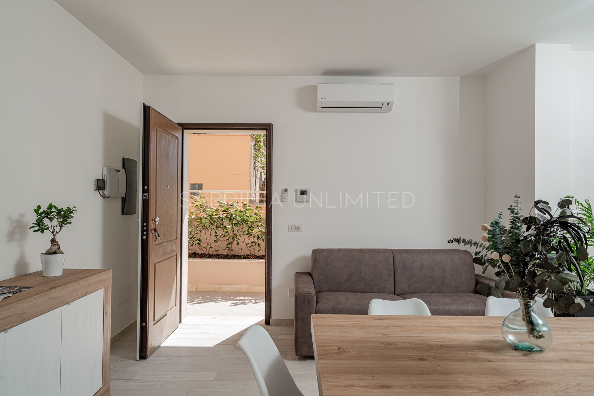 Externally, the apartment features a small private terrace, a cozy outdoor space that invites you to enjoy moments of relaxation, whether it's sipping your morning coffee or unwinding at sunset with a glass of wine, all while being enveloped by the Mediterranean breeze.