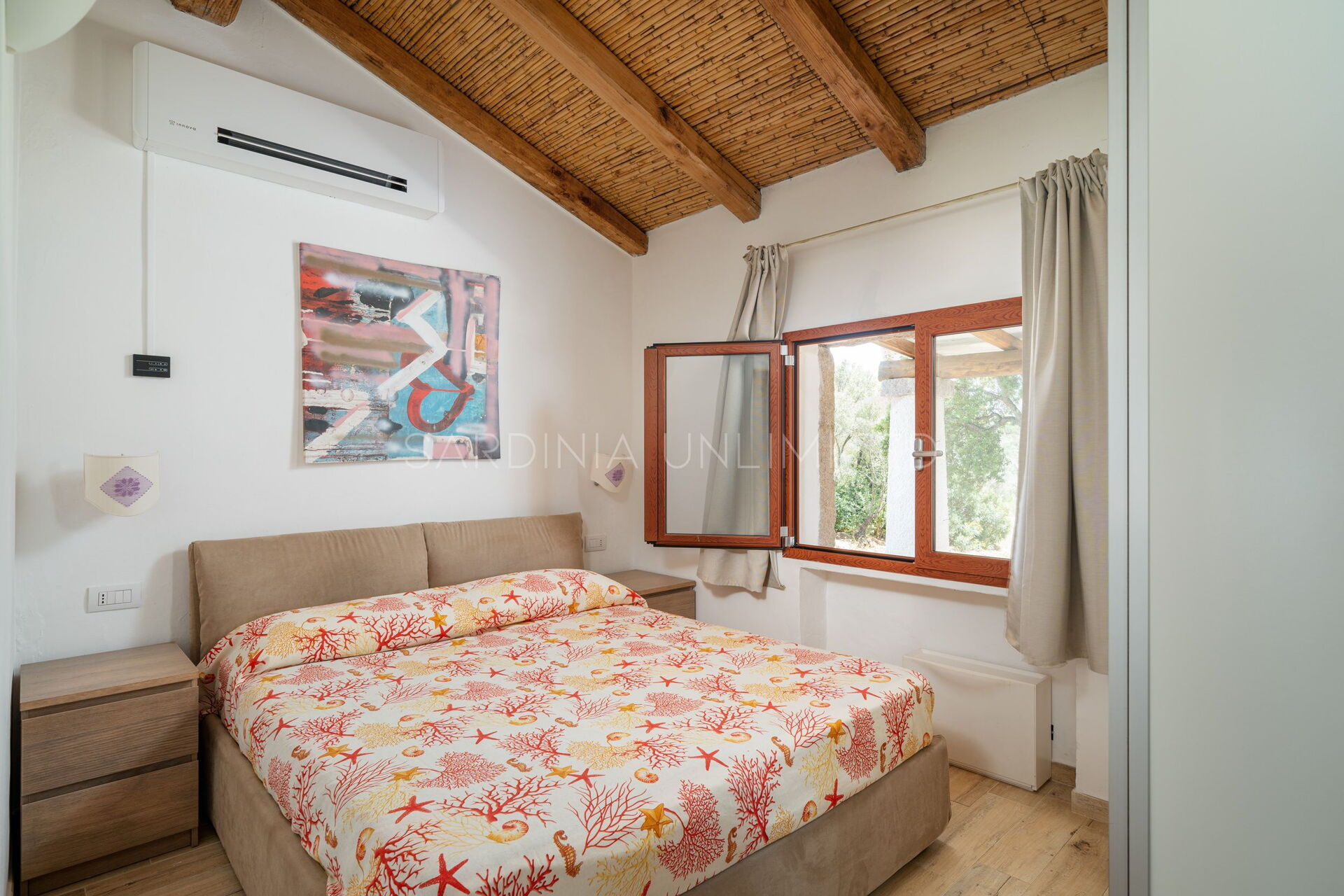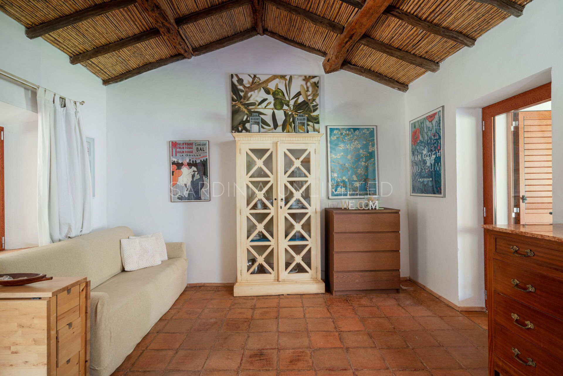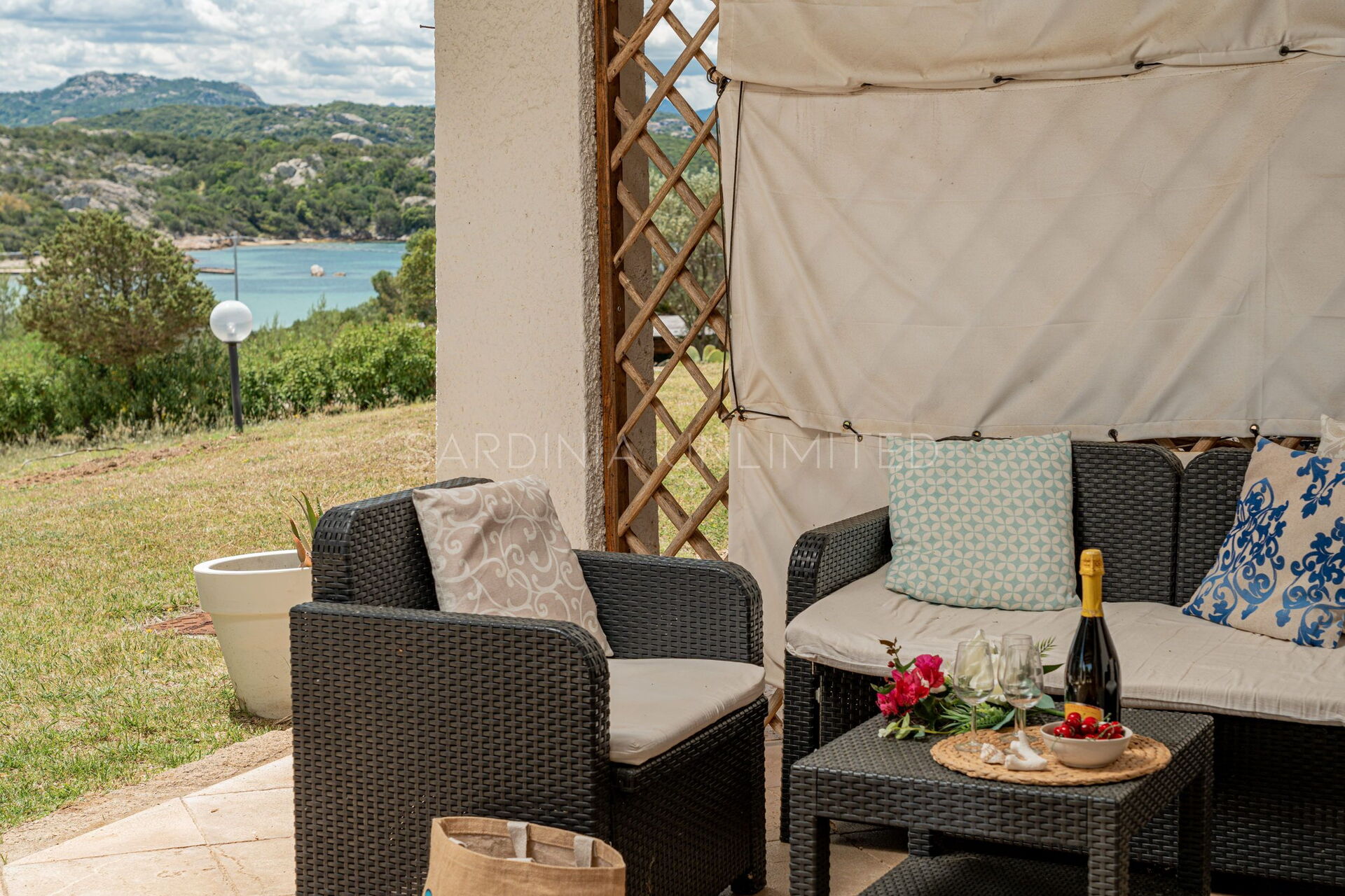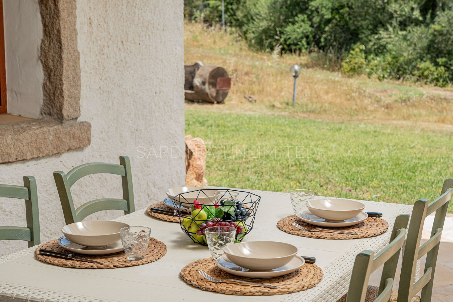 Dieses Ferienhaus auf Sardinien verfügt über einen großen Panoramagarten, ideal für Kinder, um Spaß zu haben oder angenehme Momente der Entspannung zu verbringen. Um die Düfte und Farben der umliegenden Natur zu genießen, gibt es eine große Veranda mit einem Tisch für angenehme Mahlzeiten im Freien und einen Solariumbereich. Villetta Dahlia verfügt außerdem über ein kleines und einladendes Nebengebäude mit einem Doppelbett und eigenem Bad.