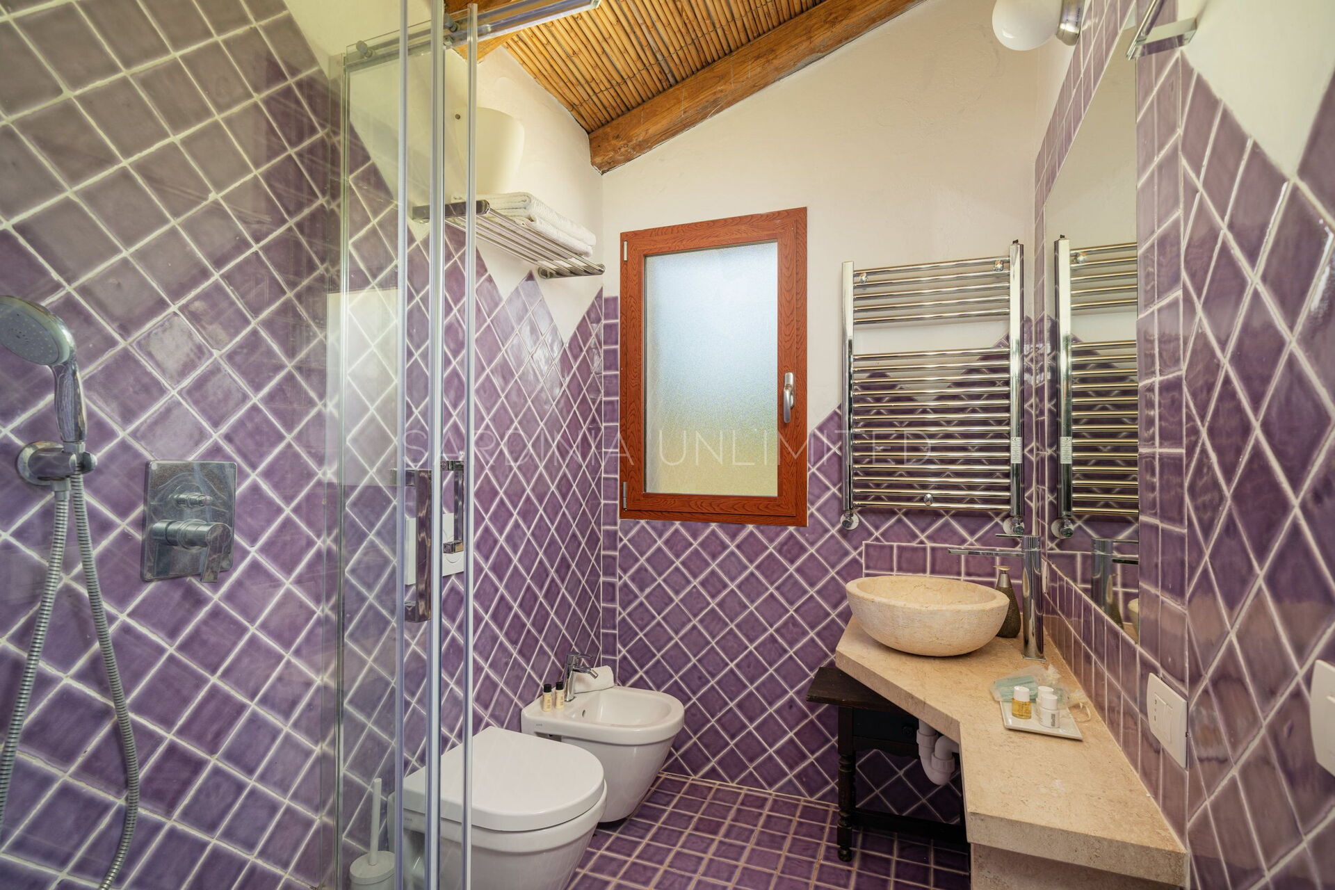 Wenige Kilometer vom berühmten Porto Cervo entfernt, in dem Urlaubsort Baja Sardinia, befindet sich die charmante Villa Dahlia, deren raffinierter rustikaler Stil darauf abzielt, ein Kontinuum mit den unregelmäßigen Formen des Granits und den Farben der ihn umgebenden mediterranen Macchia zu schaffen.