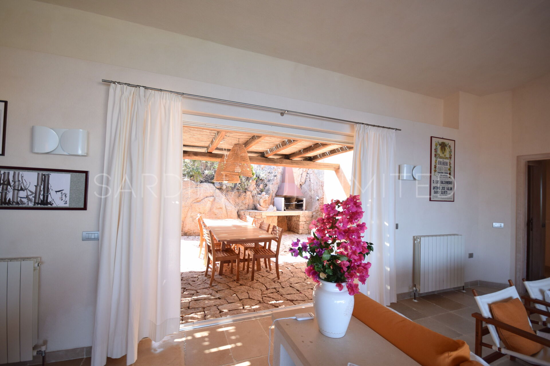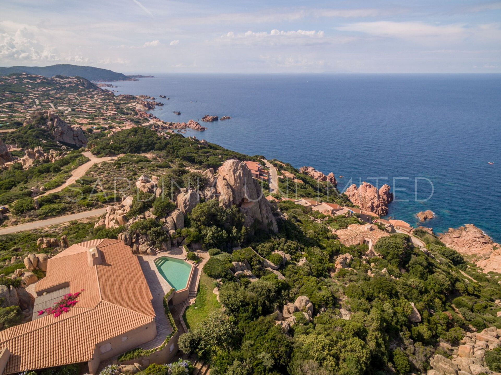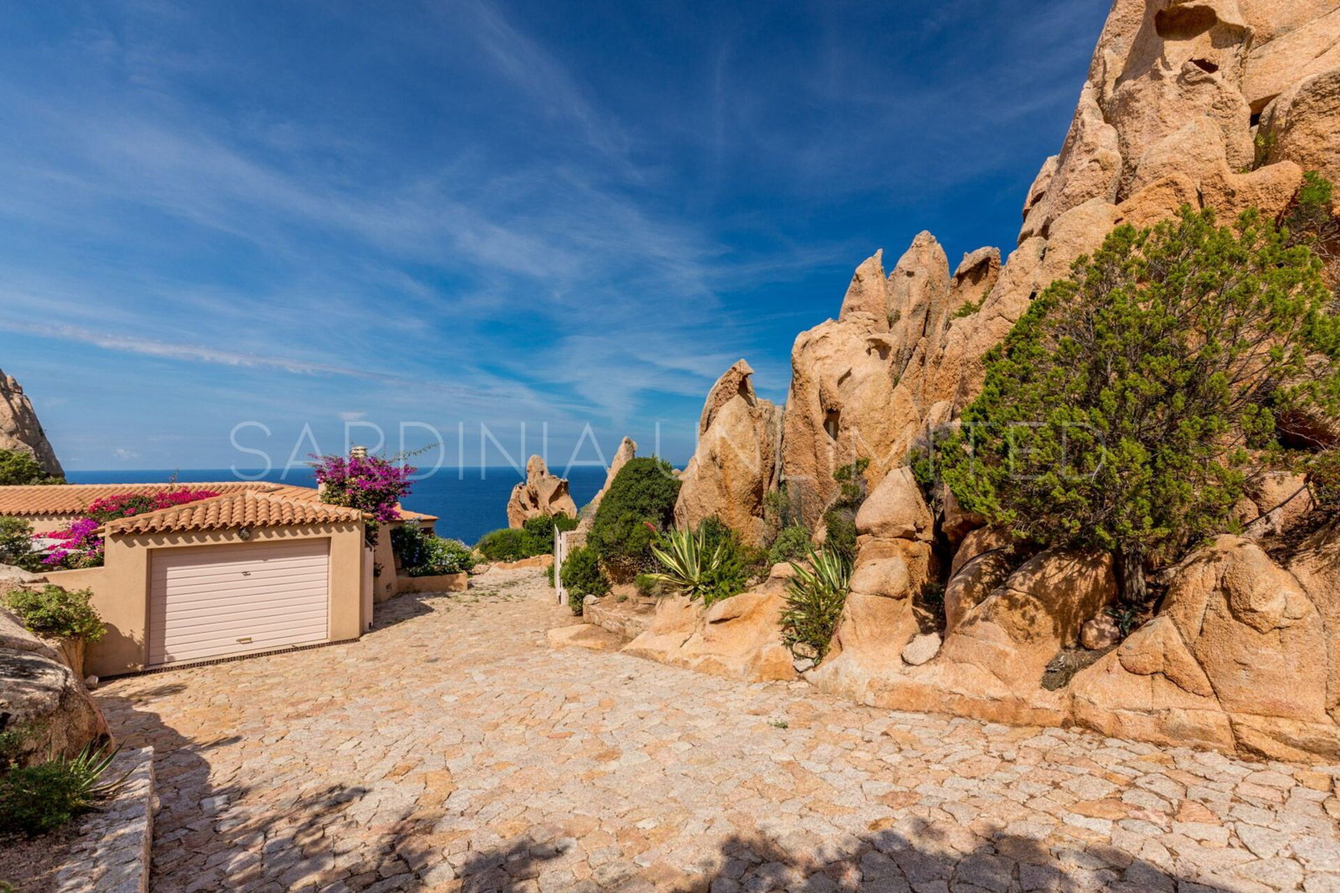 Die Villa wurde von einer Gruppe von Freunden entworfen, die alle Architekten waren. Es handelt sich um eine exklusive Alternative für unsere Gäste die Villen in Sardinien mieten möchten. Heutzutage, ist es immer noch eine der stilistisch schönsten Villen von Costa Paradiso, ein kleines Feriendorf am Meer, wo die meisten Häuser farblich an die beeindruckende Felsenküste aus rotem Granit angepasst sind. In diesem Küstenbereich findet man wunderschöne Felsbuchten mit Badeplattformen, sowie auch den einzigartigen Sandstrand Li Cossi, der zu den schönsten im Nordwesten Sardiniens zählt.