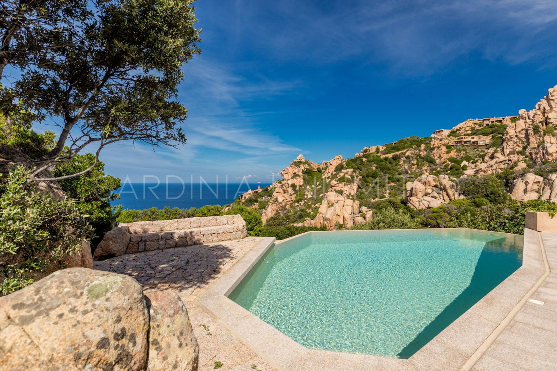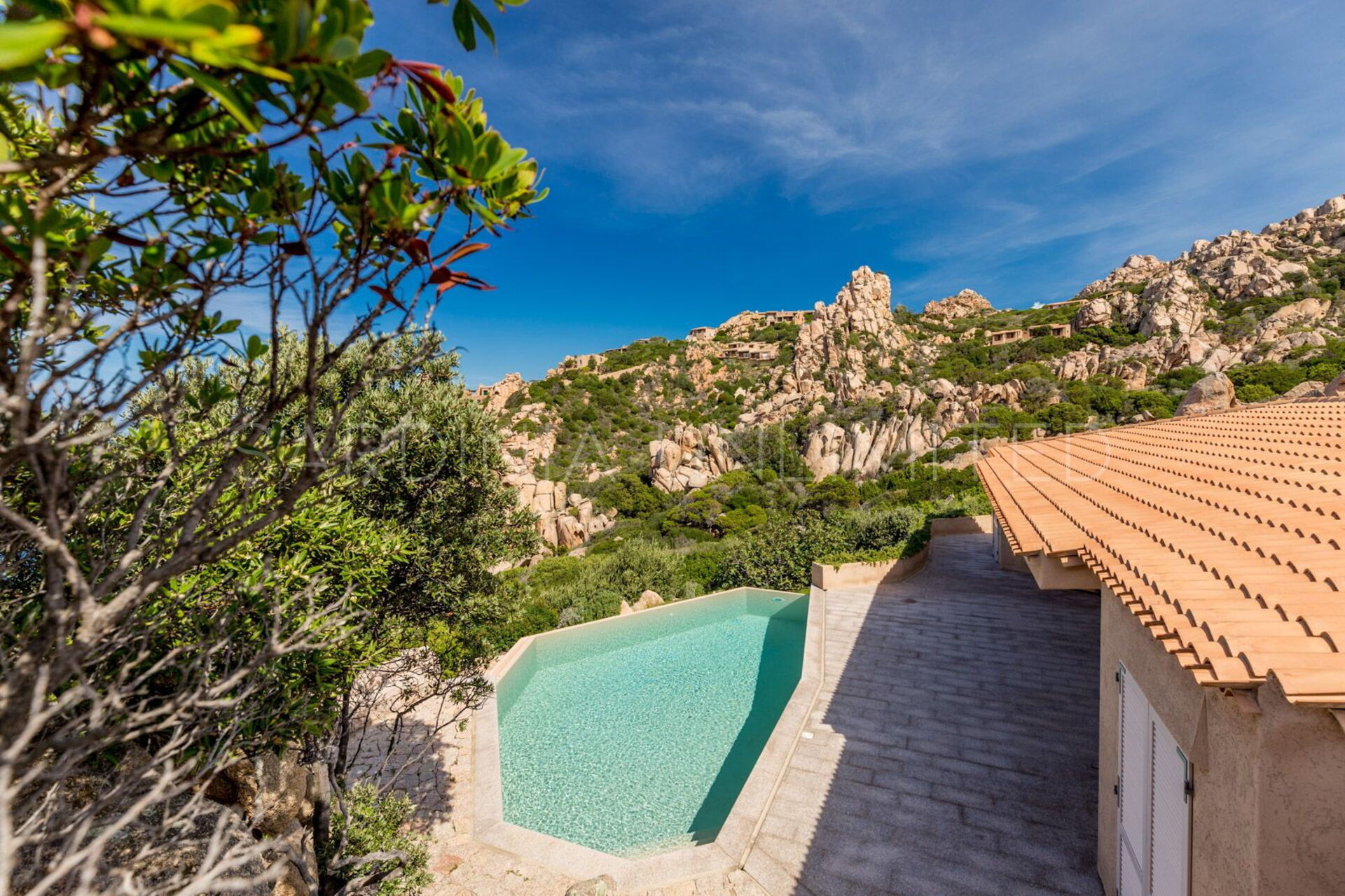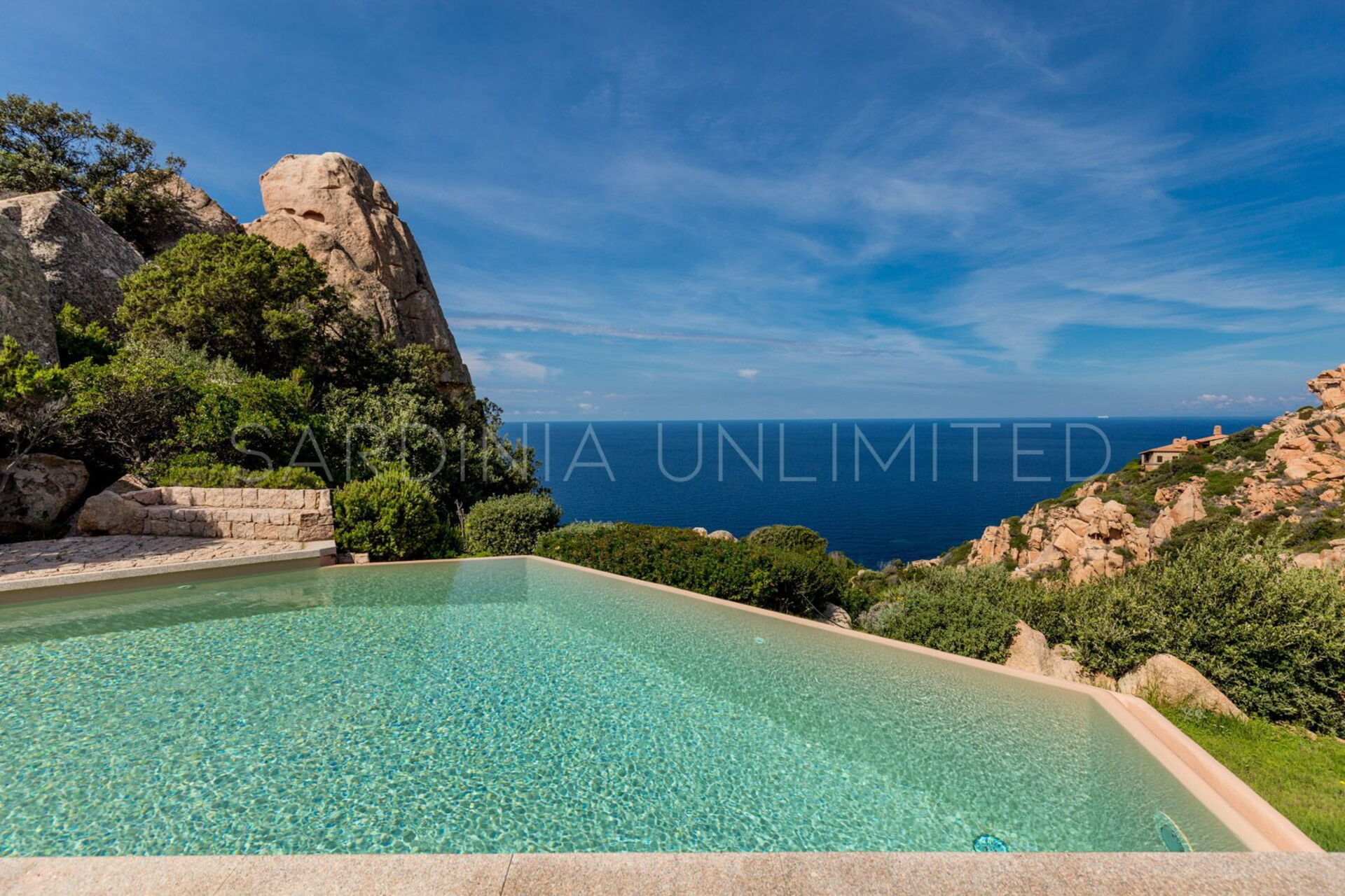 Rifugio degli Architetti bietet einzigartige Meerblicke, Privatsphäre, Luxus und viel Komfort, ist aber gleichzeitig harmonisch in die natürliche Landschaft angepasst. Die Villa verfügt über eine wunderbare Veranda mit Blick auf den Privatpool und das fabelhafte Mittelmeer, ideal für einen Drink bei Sonnenuntergang. Der grosse überdachte Essbereich mit Grill ist der ideale Ort um mit Freunden und Familie draussen zu essen. Am Pool, welcher von einem sagenhaften Garten und von den typischen roten Felsen umgeben ist, können Sie die angenehme Brise des Mittelmeers bei einem Glas Wein geniessen, oder sich einfach auf unsere bequeme Liegestühle entspannen.