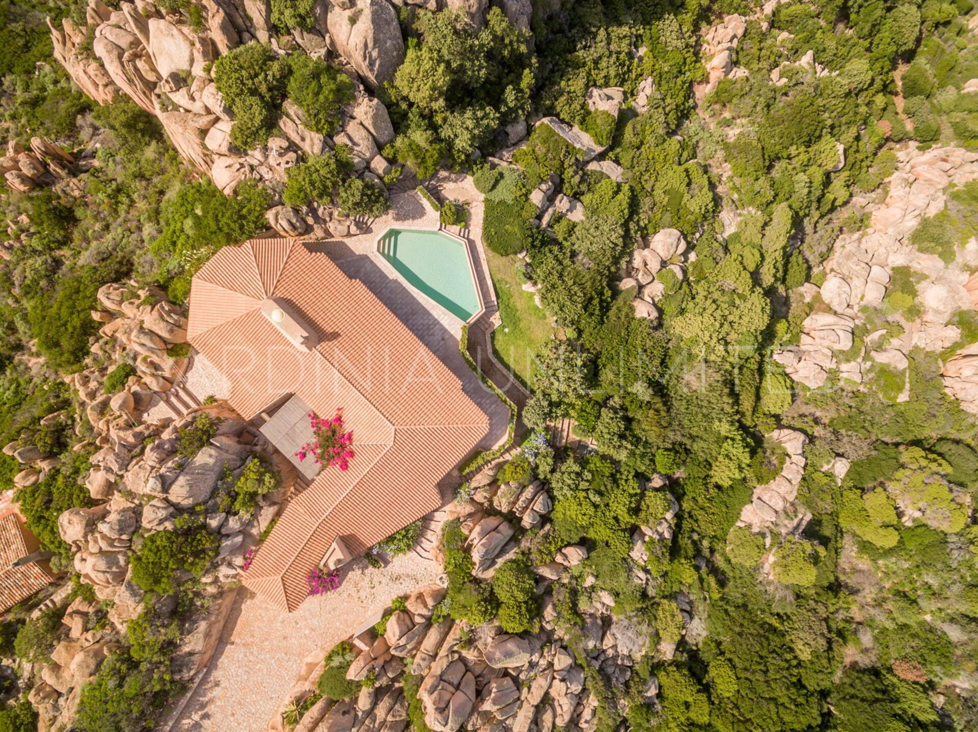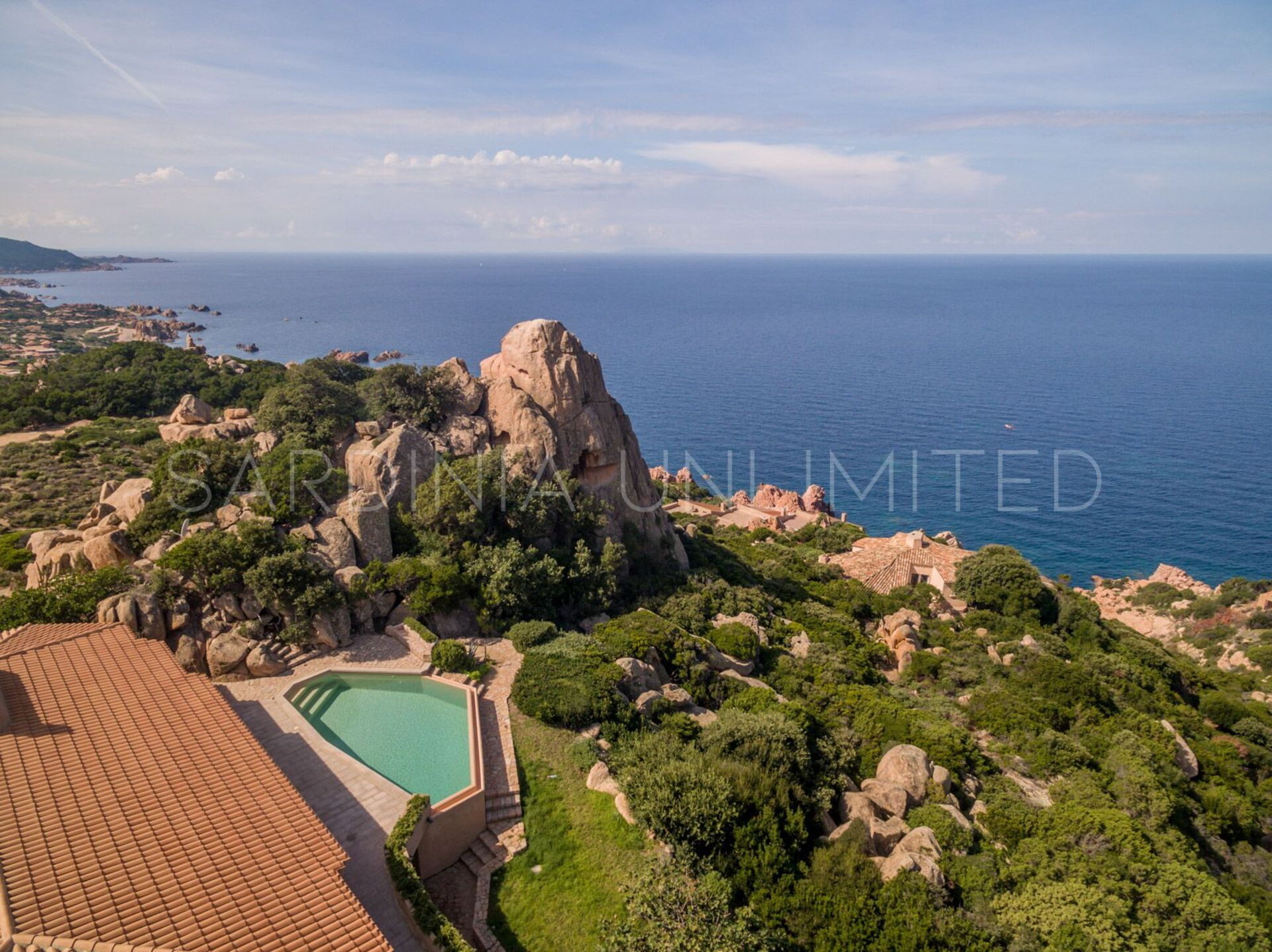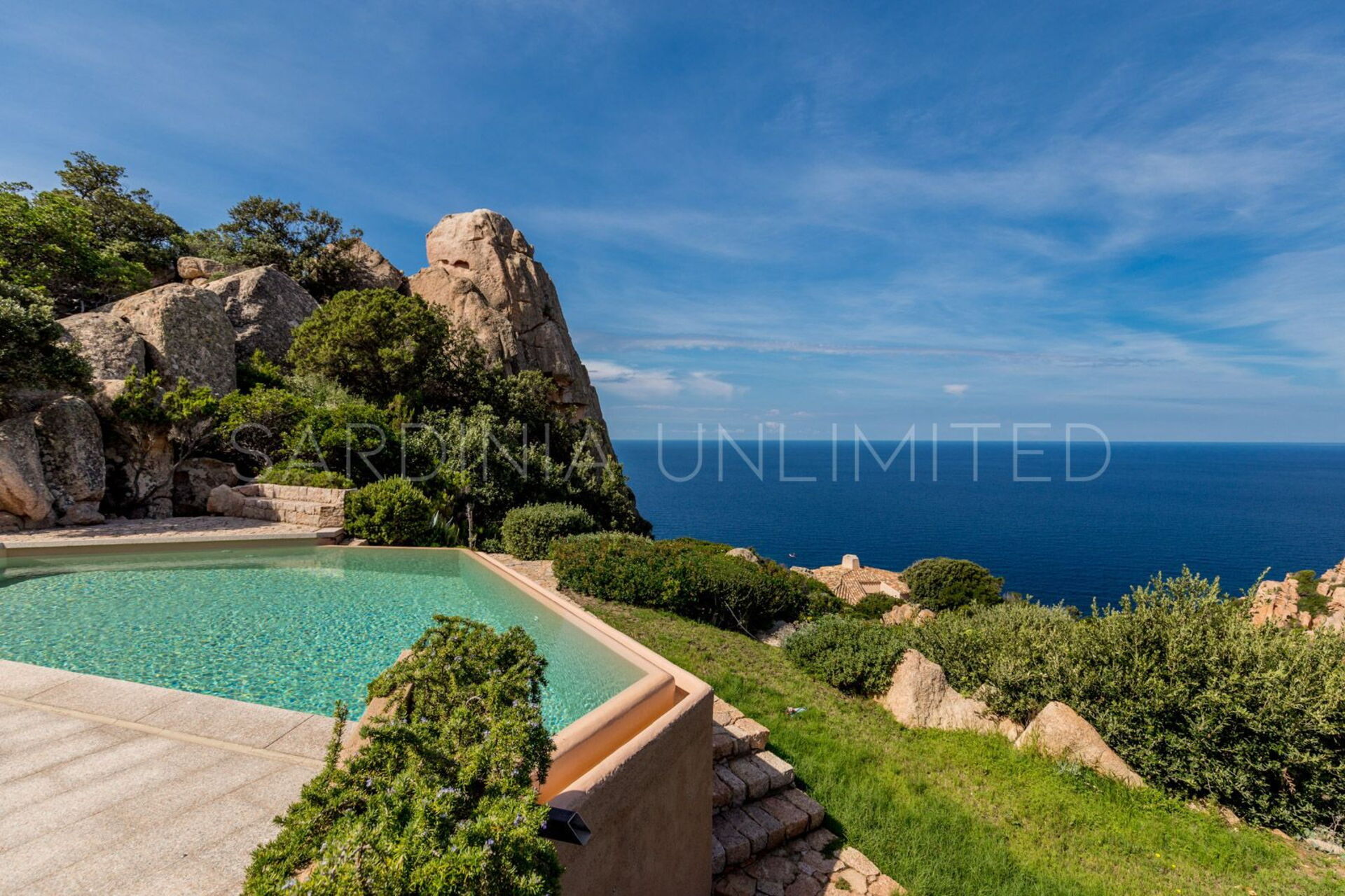 Rifugio degli Architetti bietet einzigartige Meerblicke, Privatsphäre, Luxus und viel Komfort, ist aber gleichzeitig harmonisch in die natürliche Landschaft angepasst. Die Villa verfügt über eine wunderbare Veranda mit Blick auf den Privatpool und das fabelhafte Mittelmeer, ideal für einen Drink bei Sonnenuntergang. Der grosse überdachte Essbereich mit Grill ist der ideale Ort um mit Freunden und Familie draussen zu essen. Am Pool, welcher von einem sagenhaften Garten und von den typischen roten Felsen umgeben ist, können Sie die angenehme Brise des Mittelmeers bei einem Glas Wein geniessen, oder sich einfach auf unsere bequeme Liegestühle entspannen.