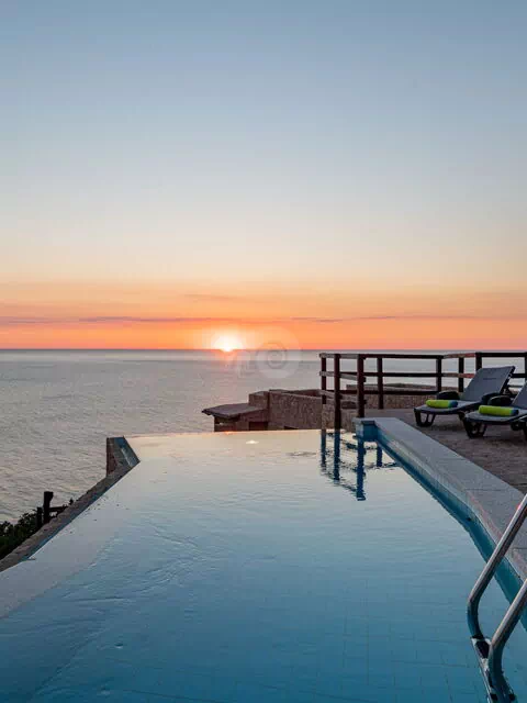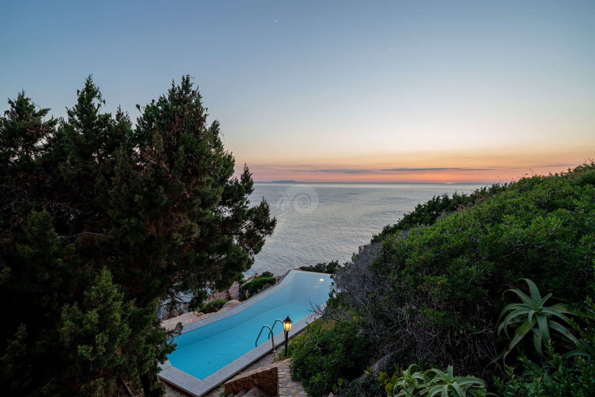 Der Pool mit Blick auf das blaue und kristallklare Meer eignet sich perfekt, um während des Sonnenuntergangs einen Aperitif oder ein erfrischendes Getränk zu genießen, während Sie unter der Sonne entspannen.