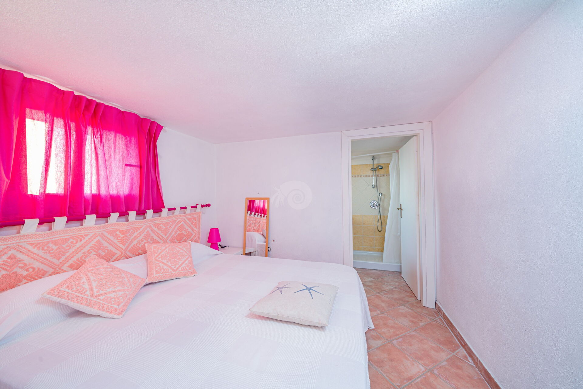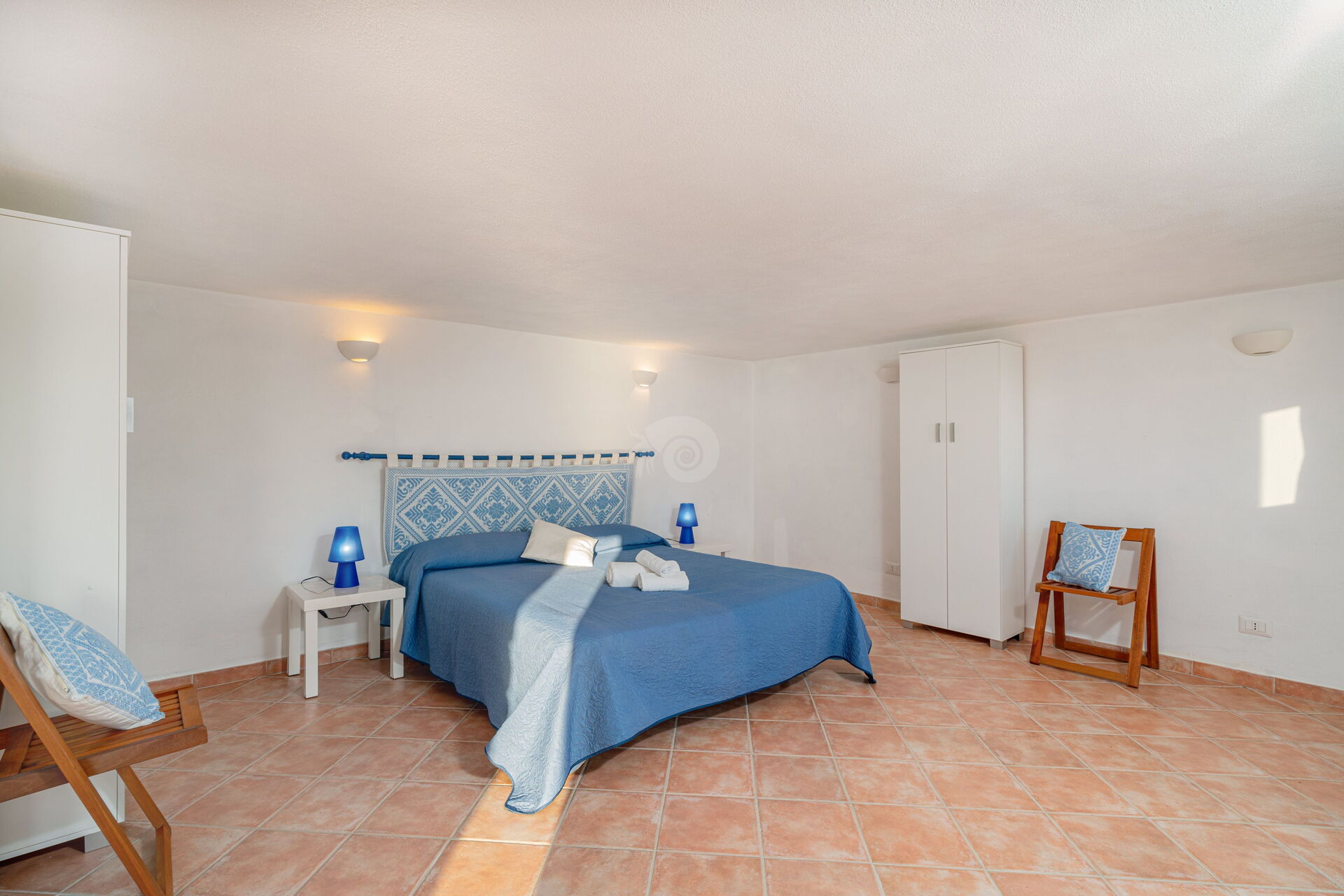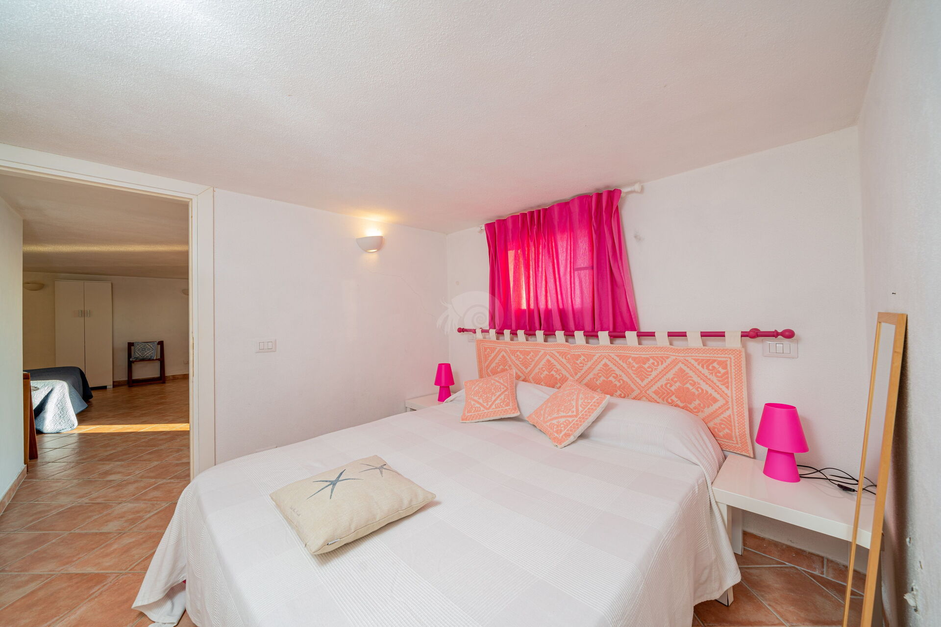 Im Obergeschoss befinden sich zwei große Doppelzimmer mit zwei privaten Badezimmern, die im farbenfrohen sardischen Stil eingerichtet sind.