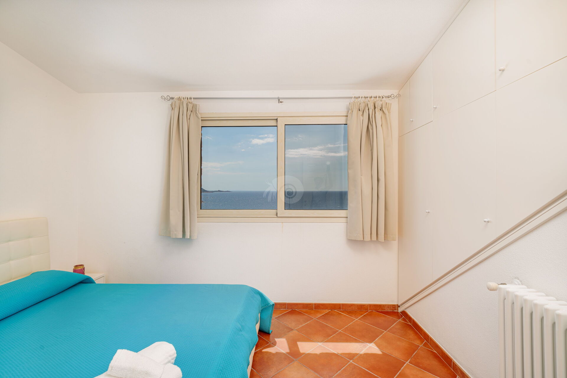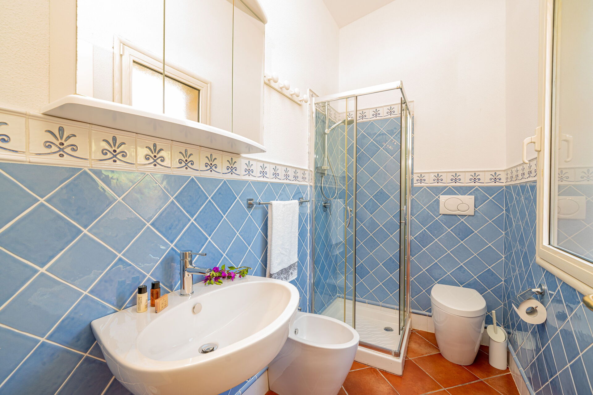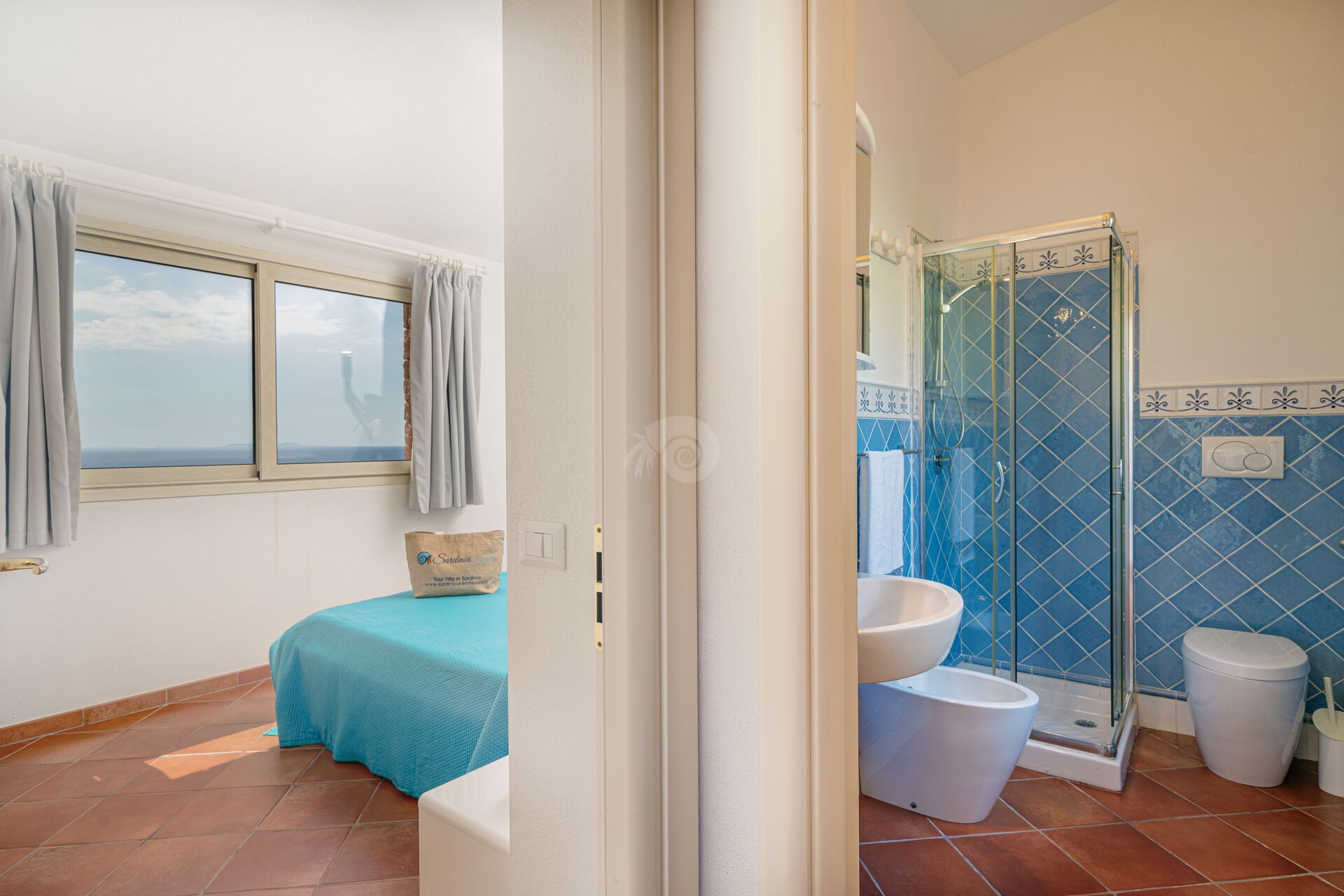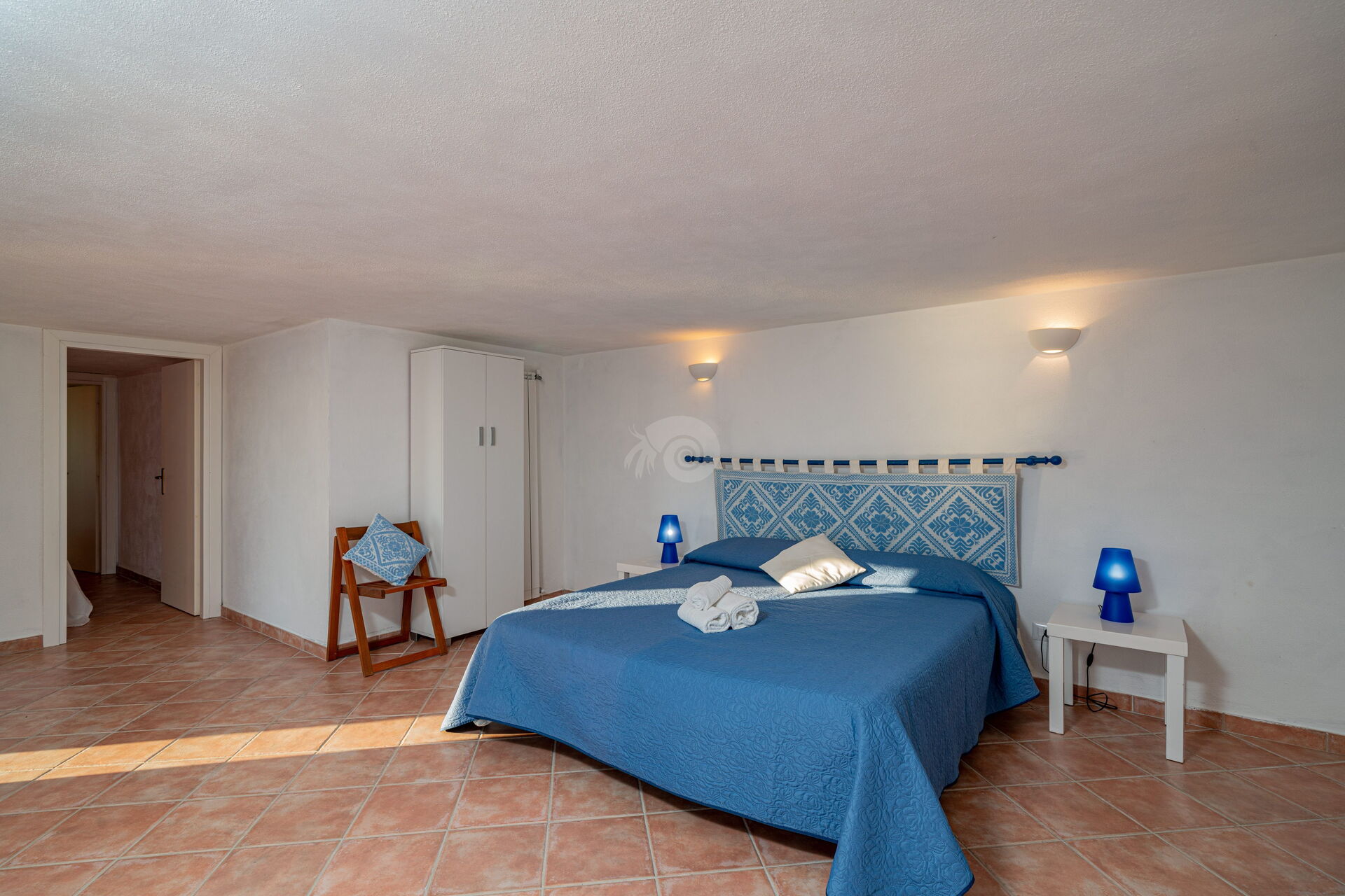 Im Obergeschoss befinden sich zwei große Doppelzimmer mit zwei privaten Badezimmern, die im farbenfrohen sardischen Stil eingerichtet sind.
