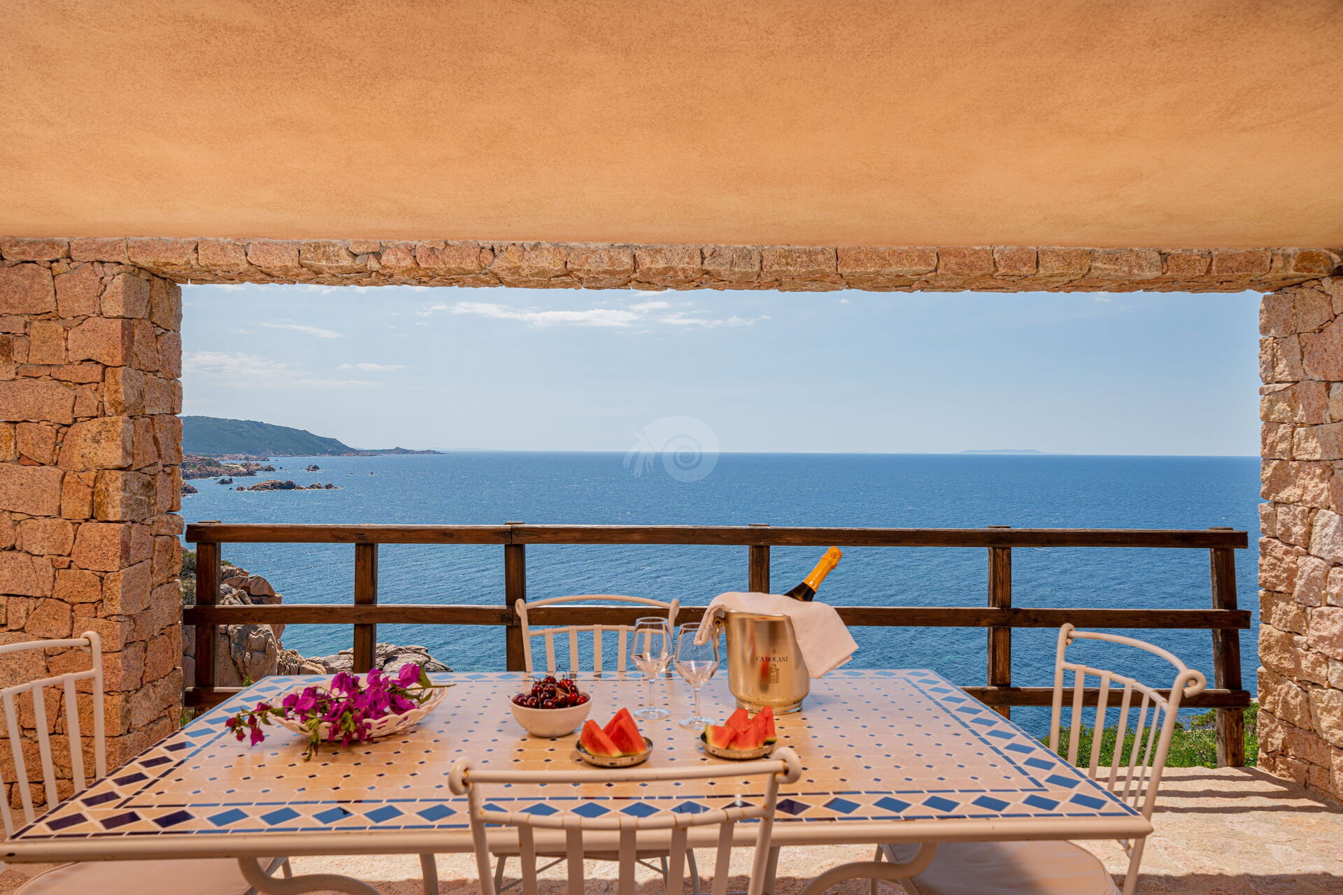 Das atemberaubende Panorama, das von dieser Ferienvilla auf Sardinien aus bewundert werden kann, ist zweifellos das Hauptmerkmal. Außerdem gibt es eine Bucht, in der Sie direkt unter der Villa schwimmen können.