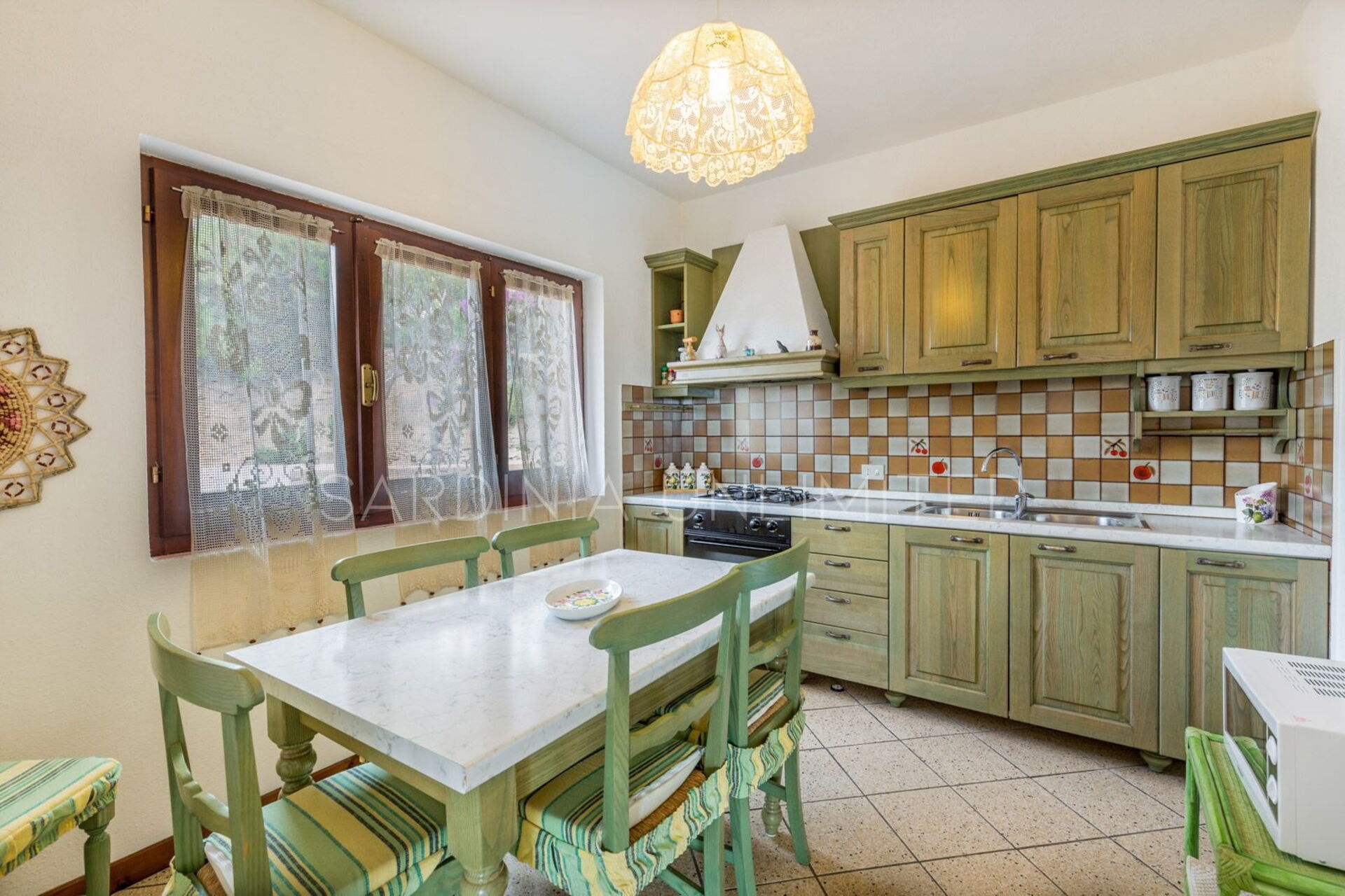 Das nächste Restaurant und den Supermarkt kann man in etwa 10 Minuten zu Fuss erreichen. Die Felsbuchten wo man baden kann, und der Parkplatz vom Sandstrand Li Cossi, liegen nur wenige Autominuten entfernt.