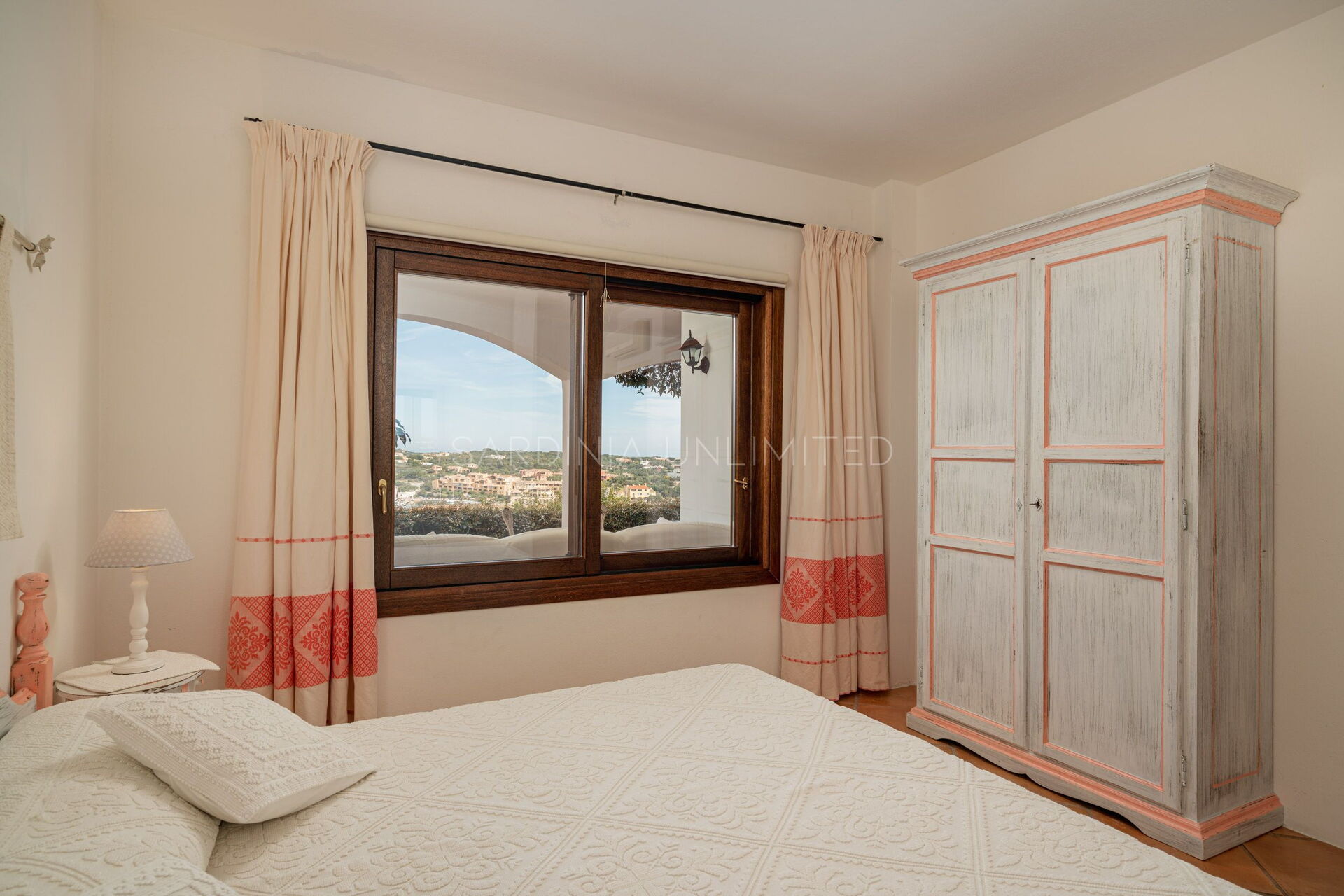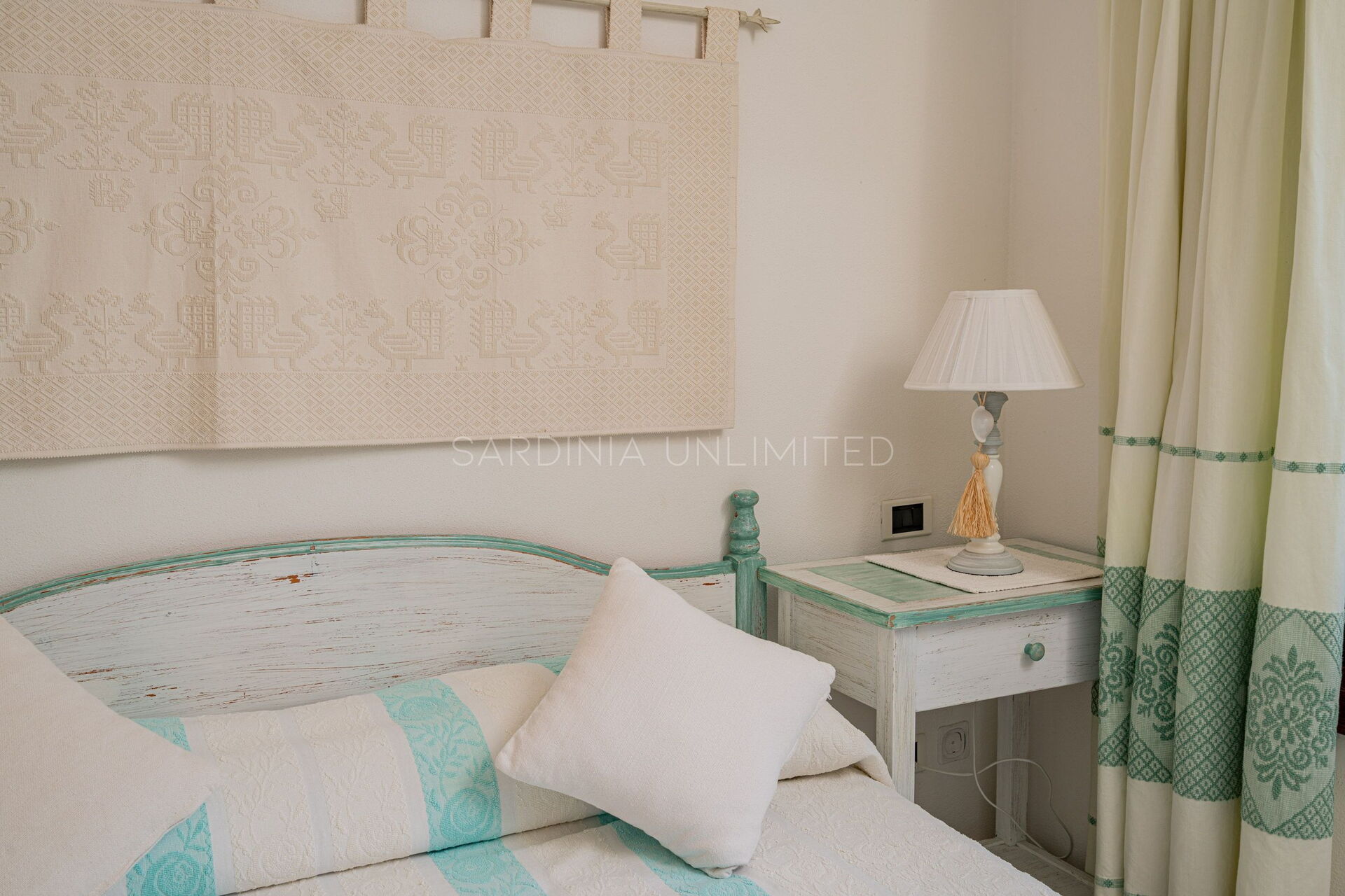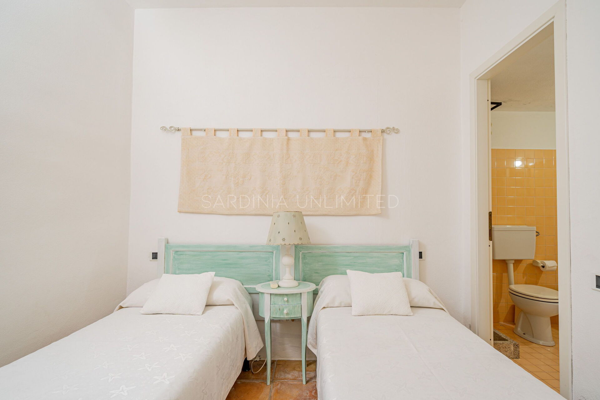 Der Schlafbereich ist in zwei schöne Doppelzimmer aufgeteilt, beide im sardischen Stil, der sich durch viel helles und rohes Holz, an das Meer erinnernde Elemente und fein bestickte Zierstoffe mit geometrischen und floralen Motiven auszeichnet. Dieser Stil hat die Fähigkeit, Umgebungen sehr gastfreundlich und komfortabel zu machen.