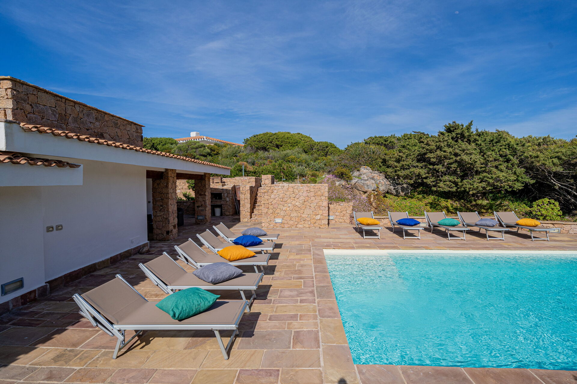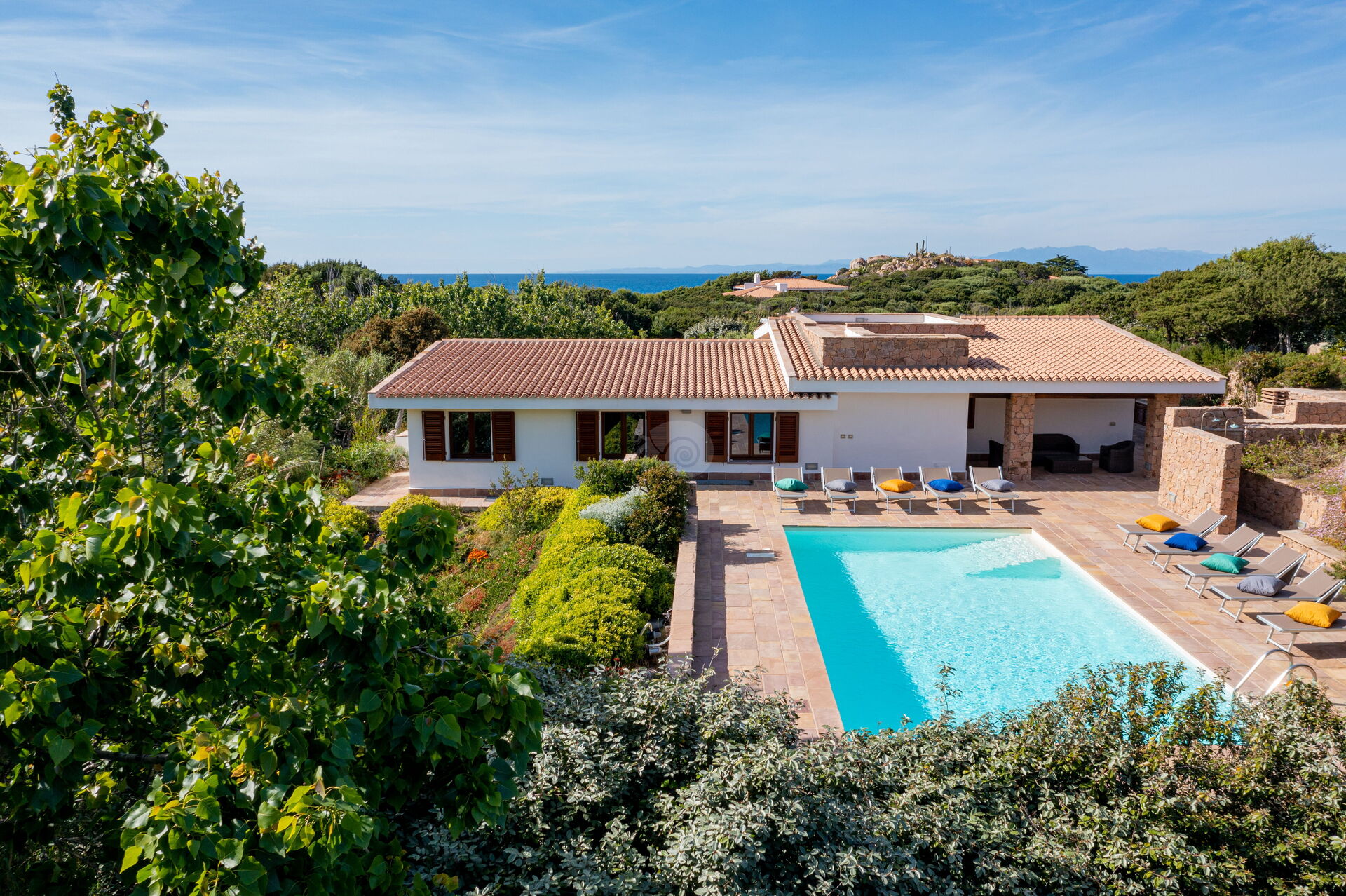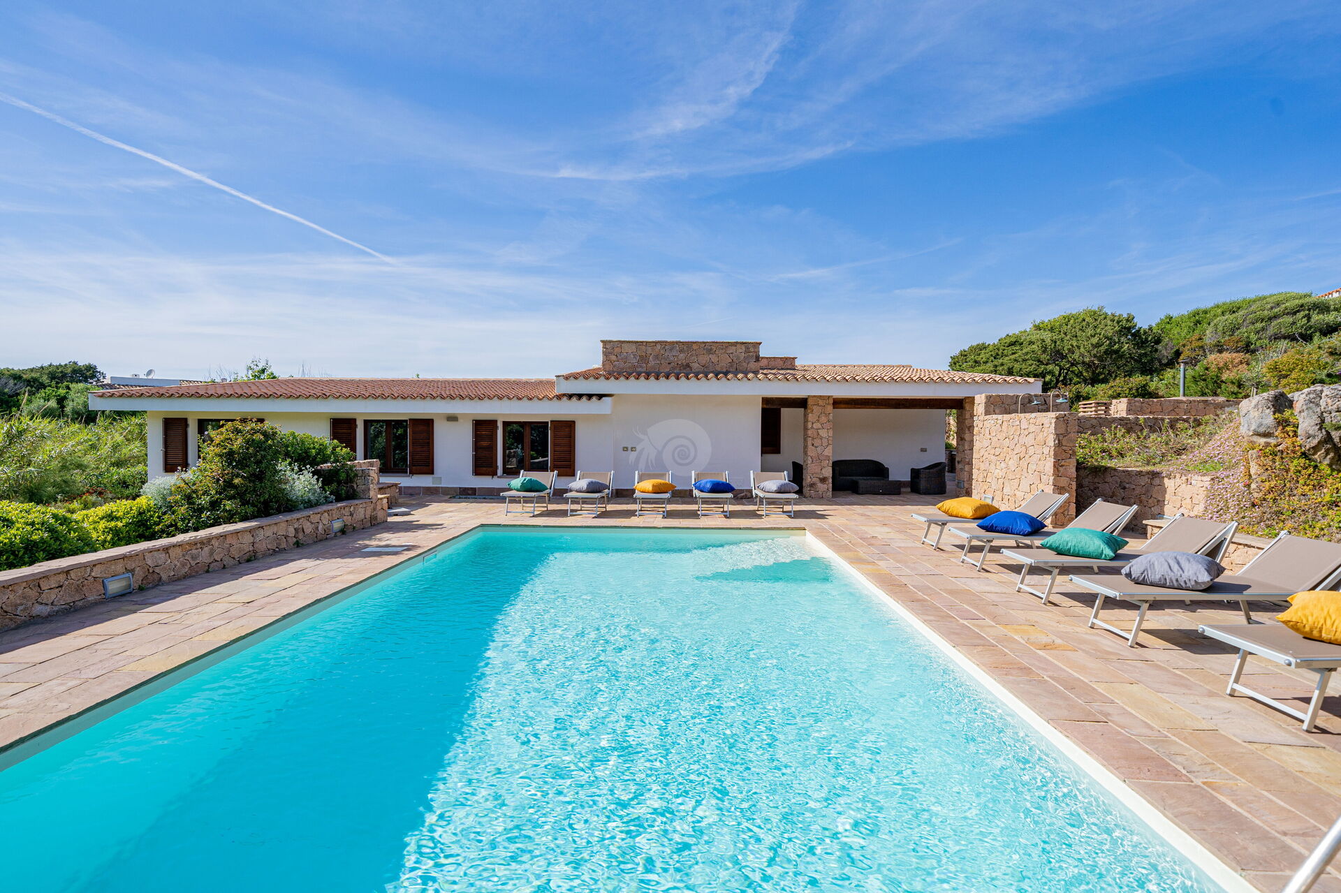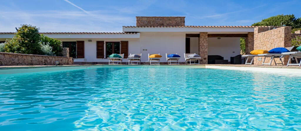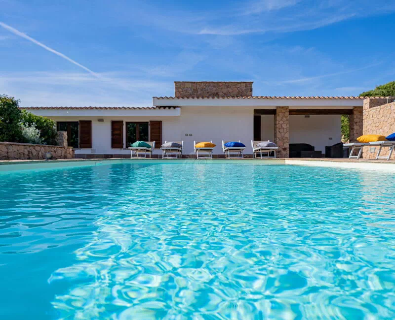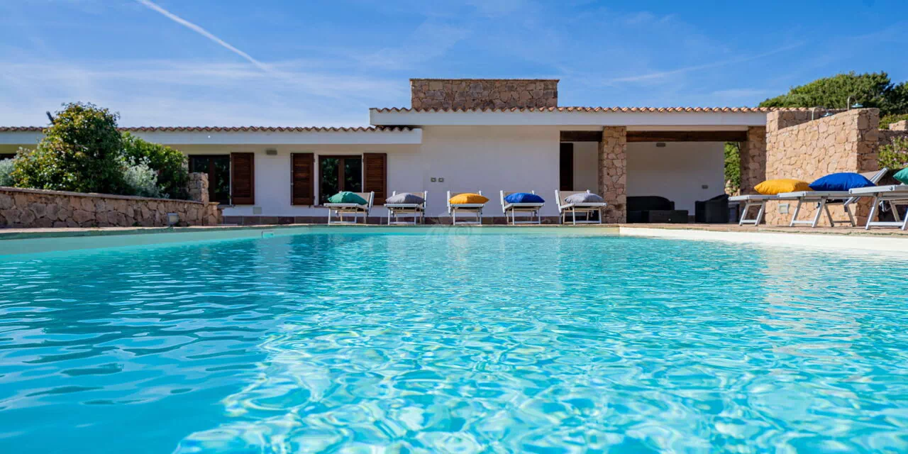 Die Villa Belle befindet sich in ruhiger Lage, nur wenige Schritte vom Meer und einer kleinen Bucht namens Baia dell'Amore entfernt, in einem exklusiven Wohnpark in Portobello di Gallura im Norden Sardiniens.