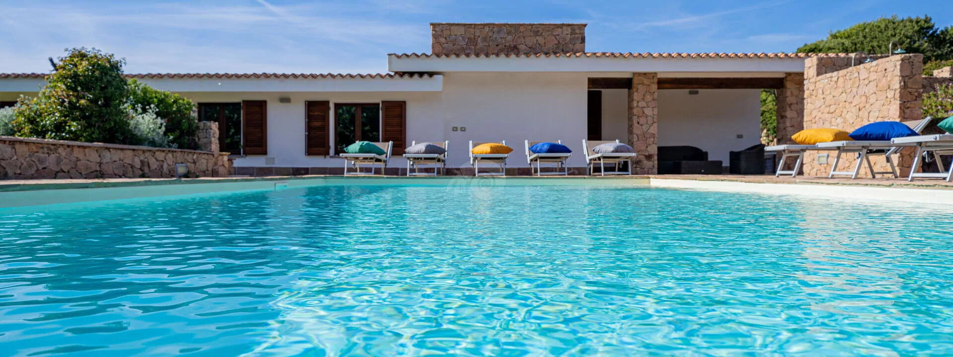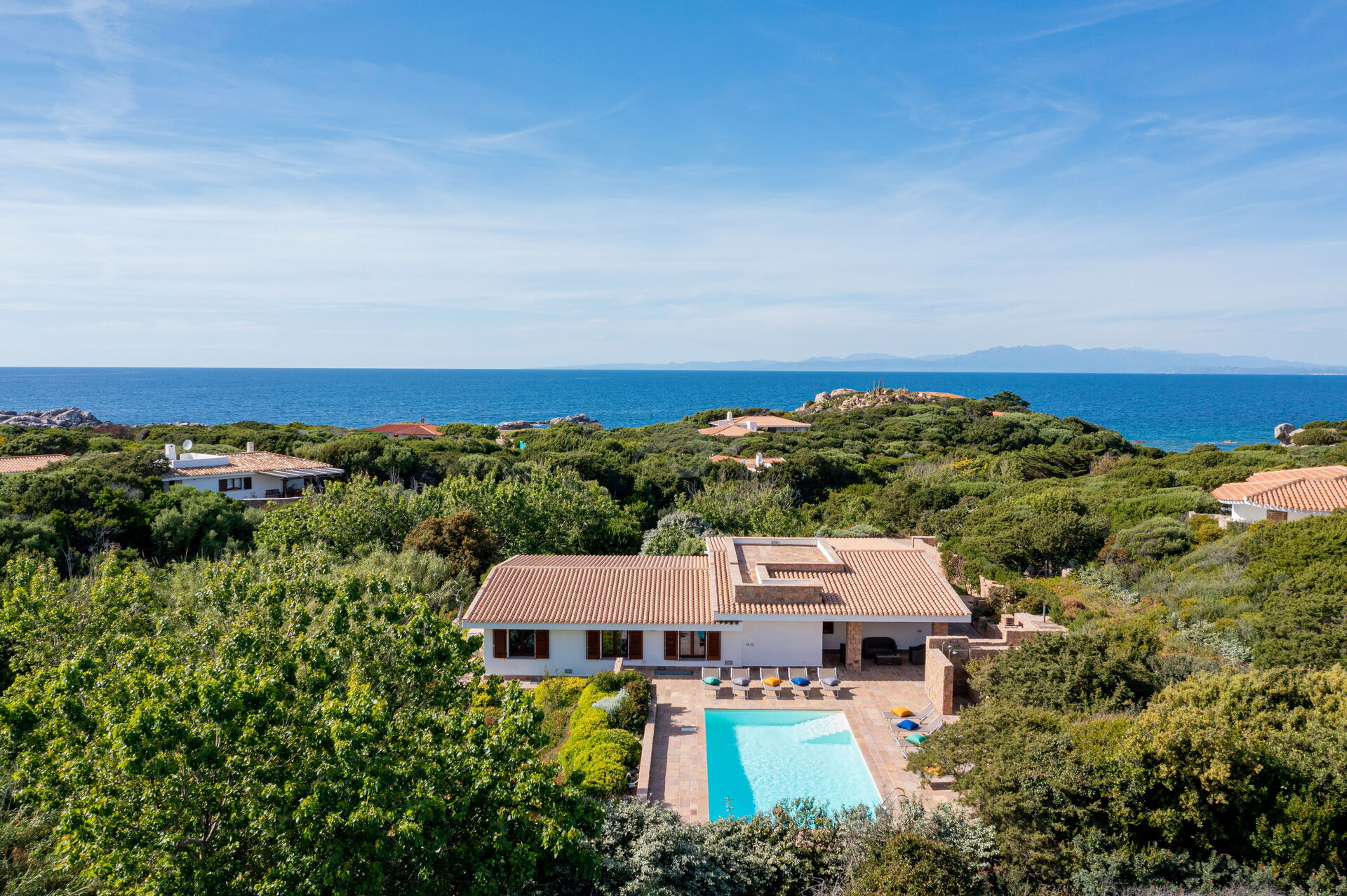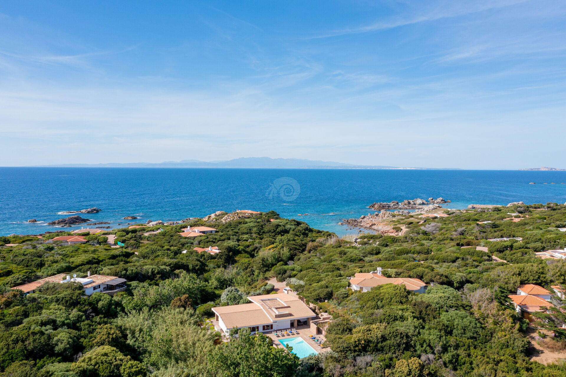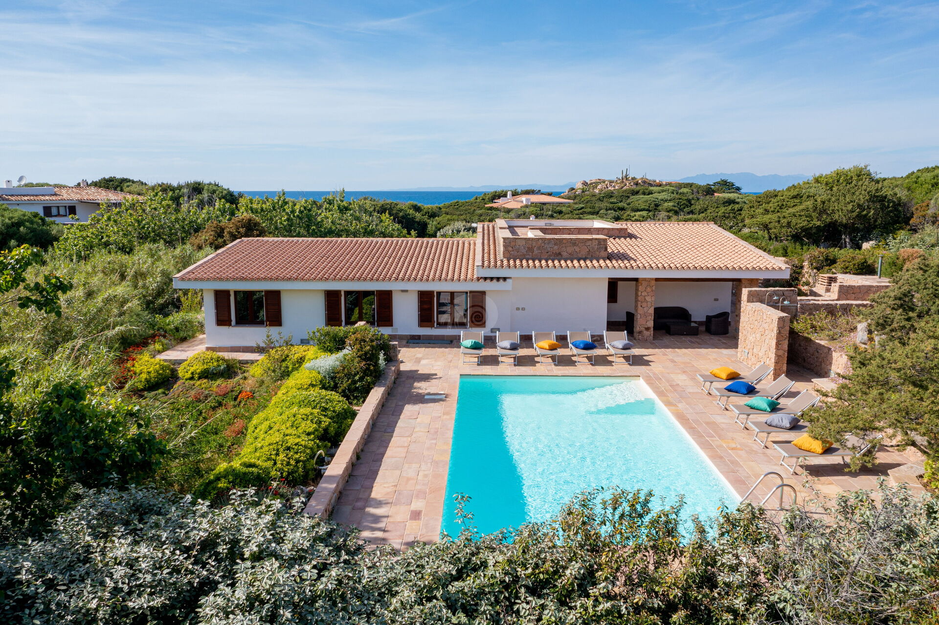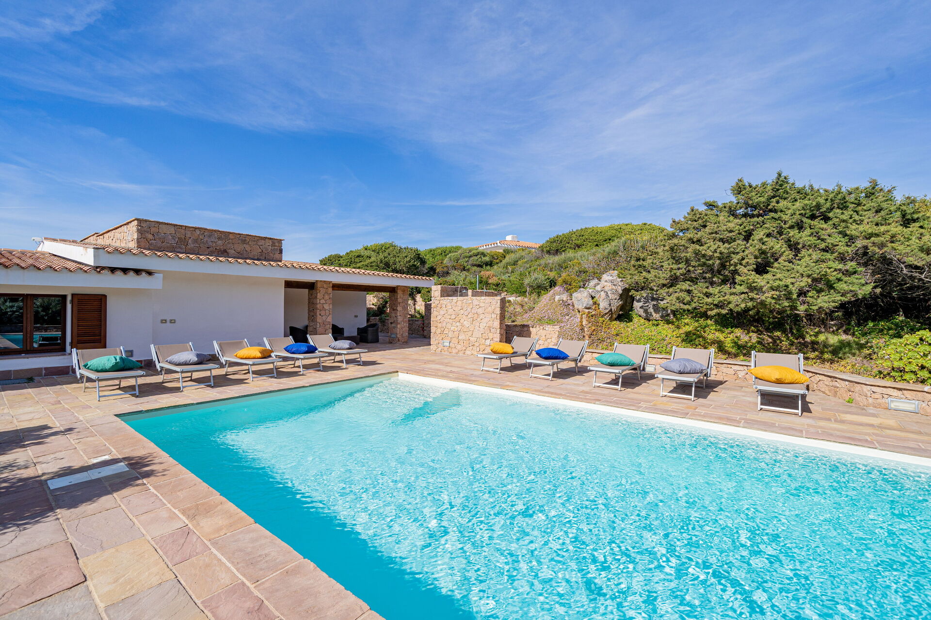 Die Villa Belle befindet sich in ruhiger Lage, nur wenige Schritte vom Meer und einer kleinen Bucht namens Baia dell'Amore entfernt, in einem exklusiven Wohnpark in Portobello di Gallura im Norden Sardiniens.