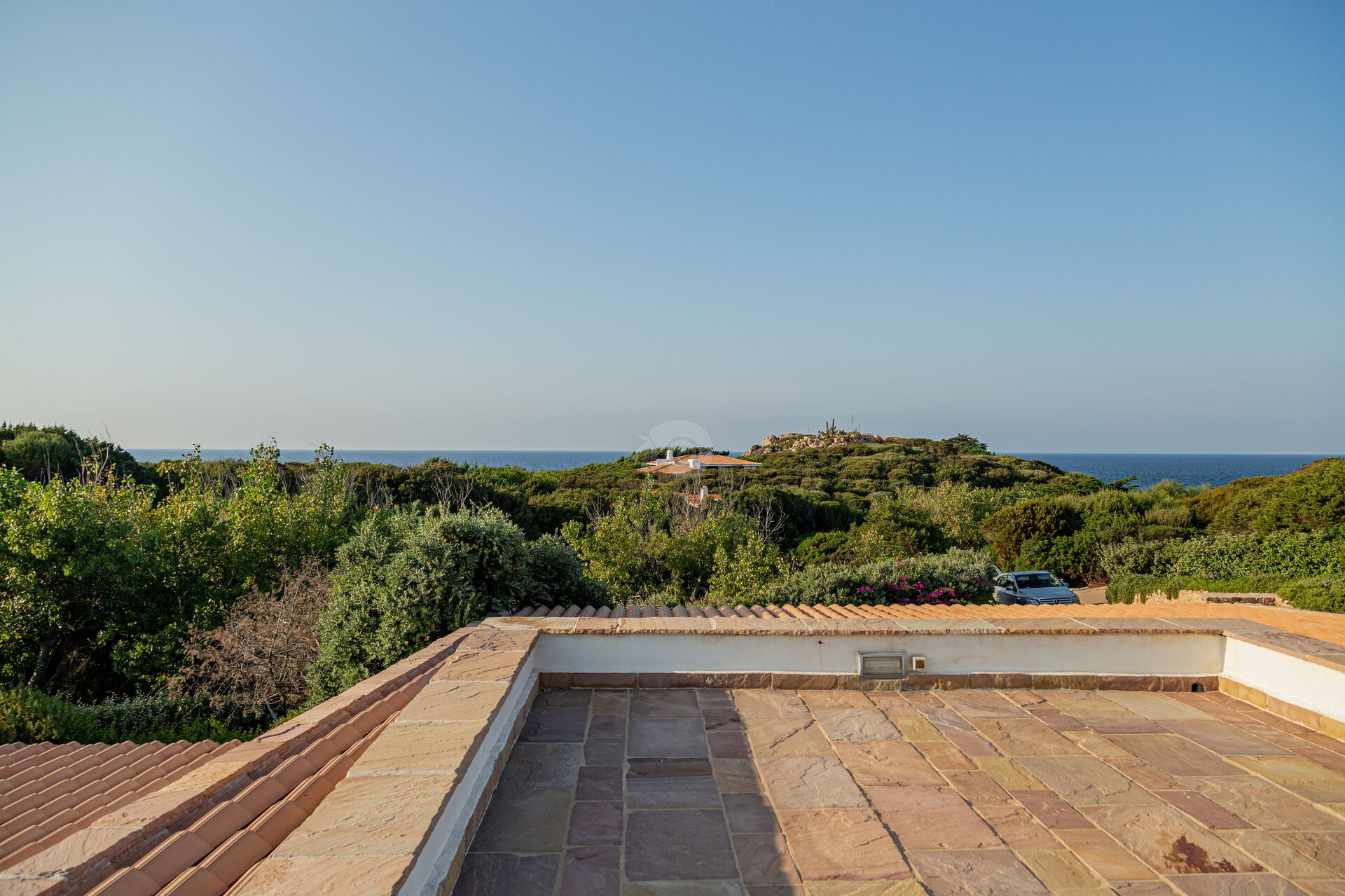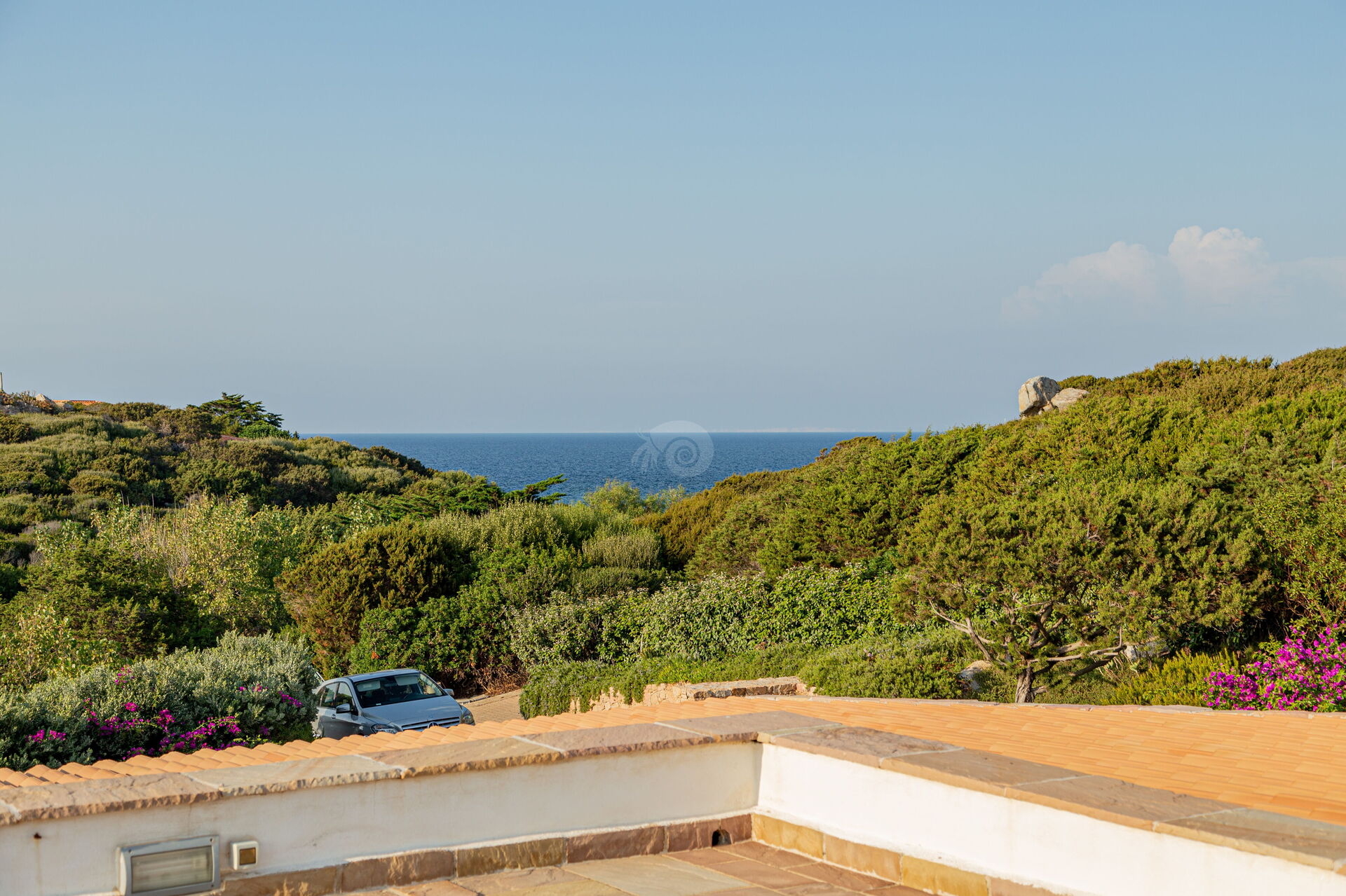 Von seiner Dachterrasse aus kann man die charakteristische Landschaft mit dem Meer und den Klippen bewundern.
