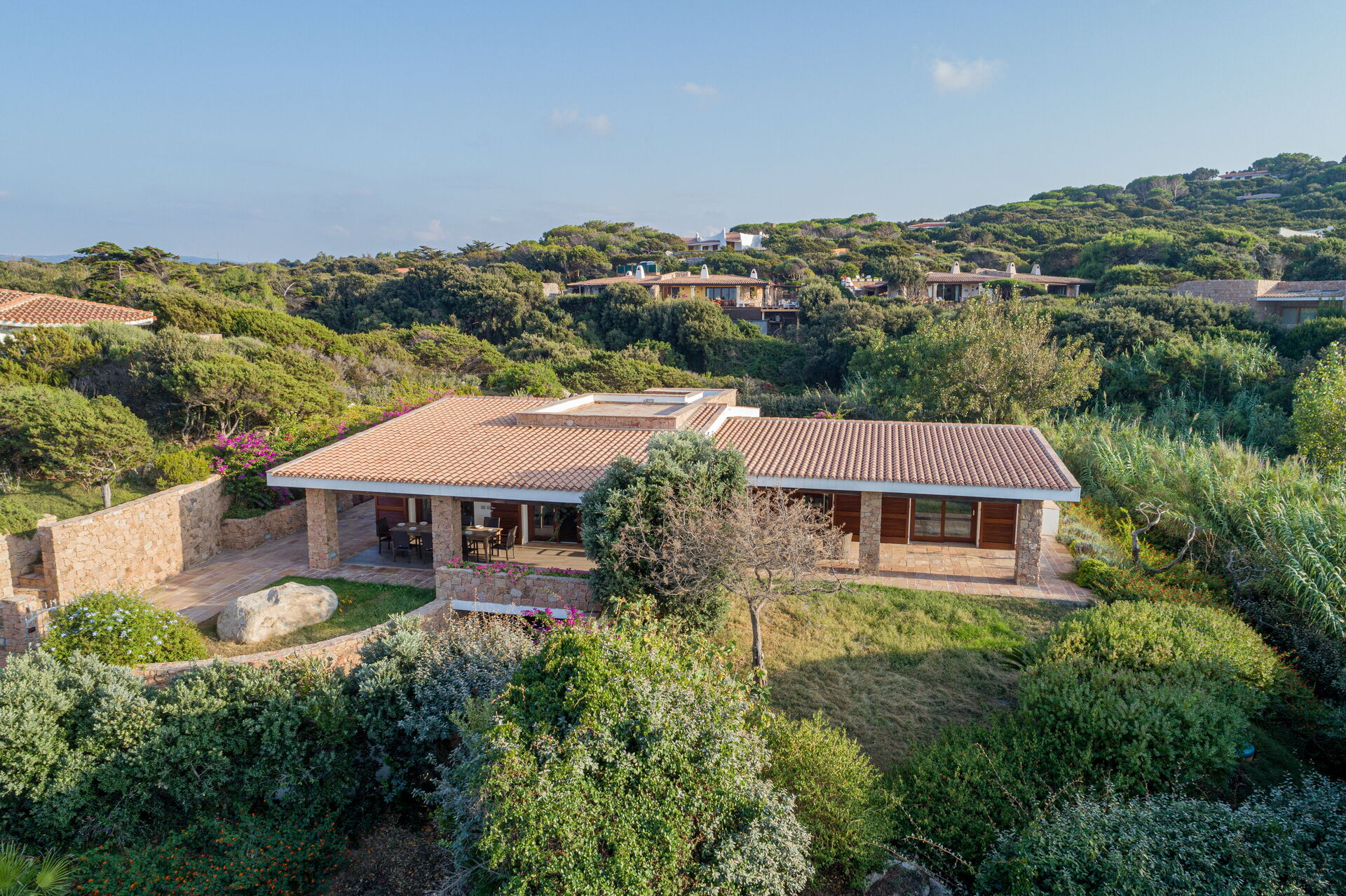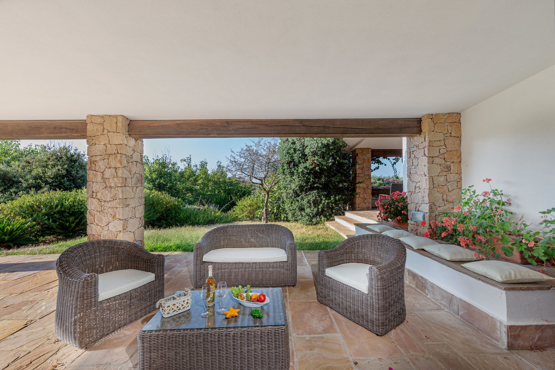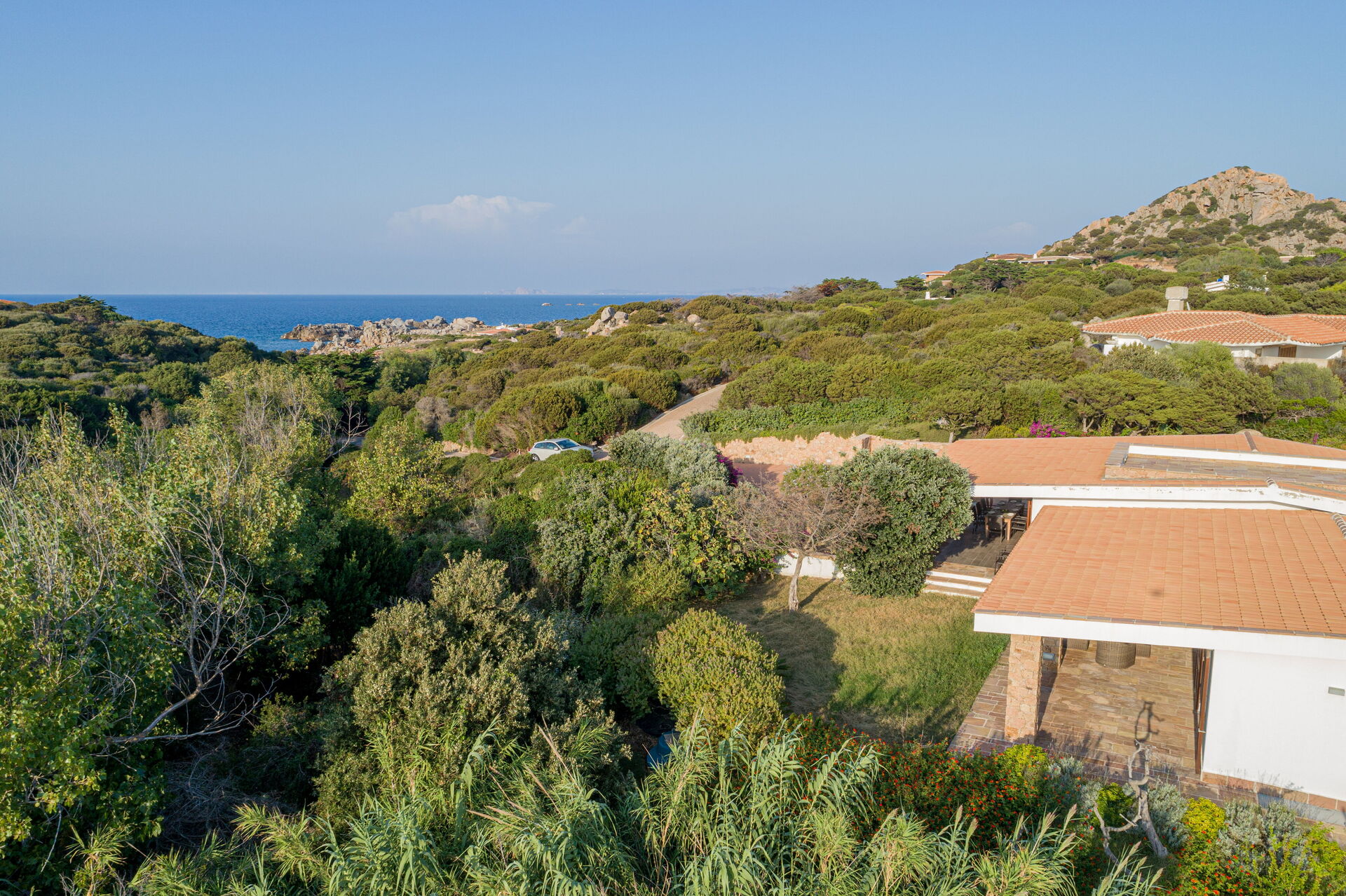 Die Villa ist von einem Garten mit typisch sardischen Pflanzen und mediterranem Gestrüpp umgeben. Ein kurzer Weg führt zur herrlichen Sandbucht.
