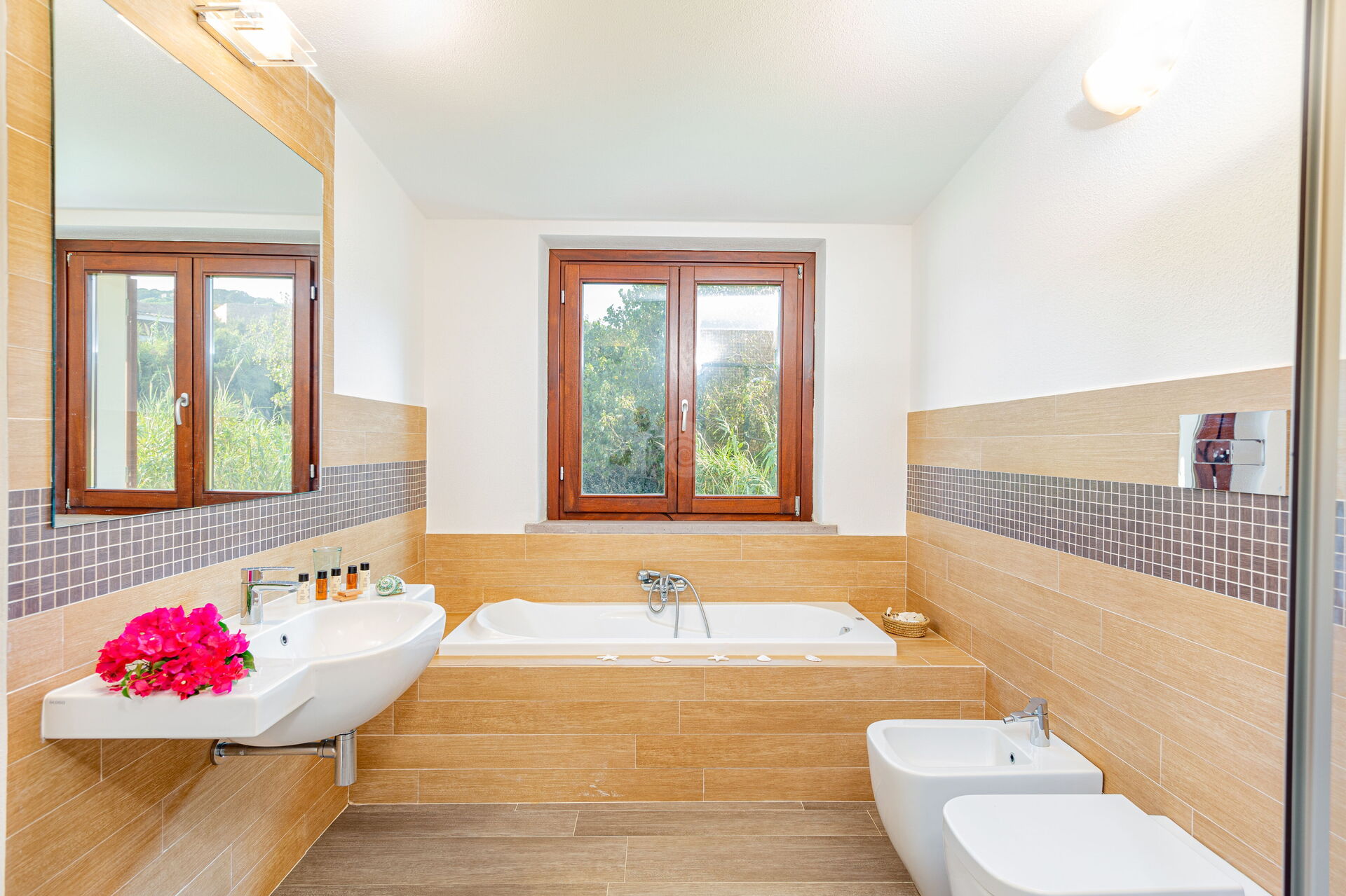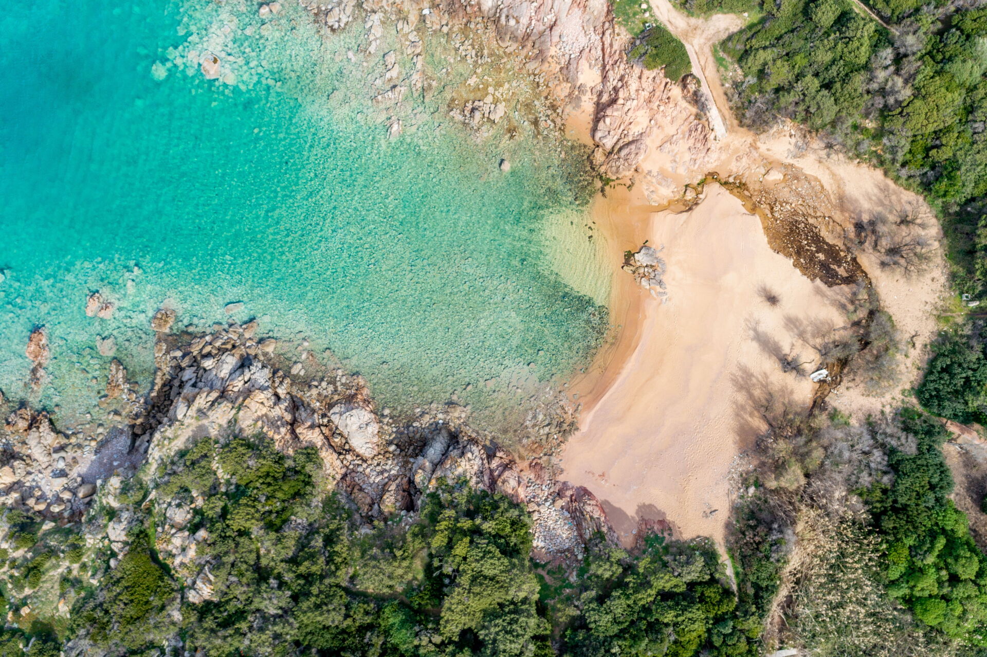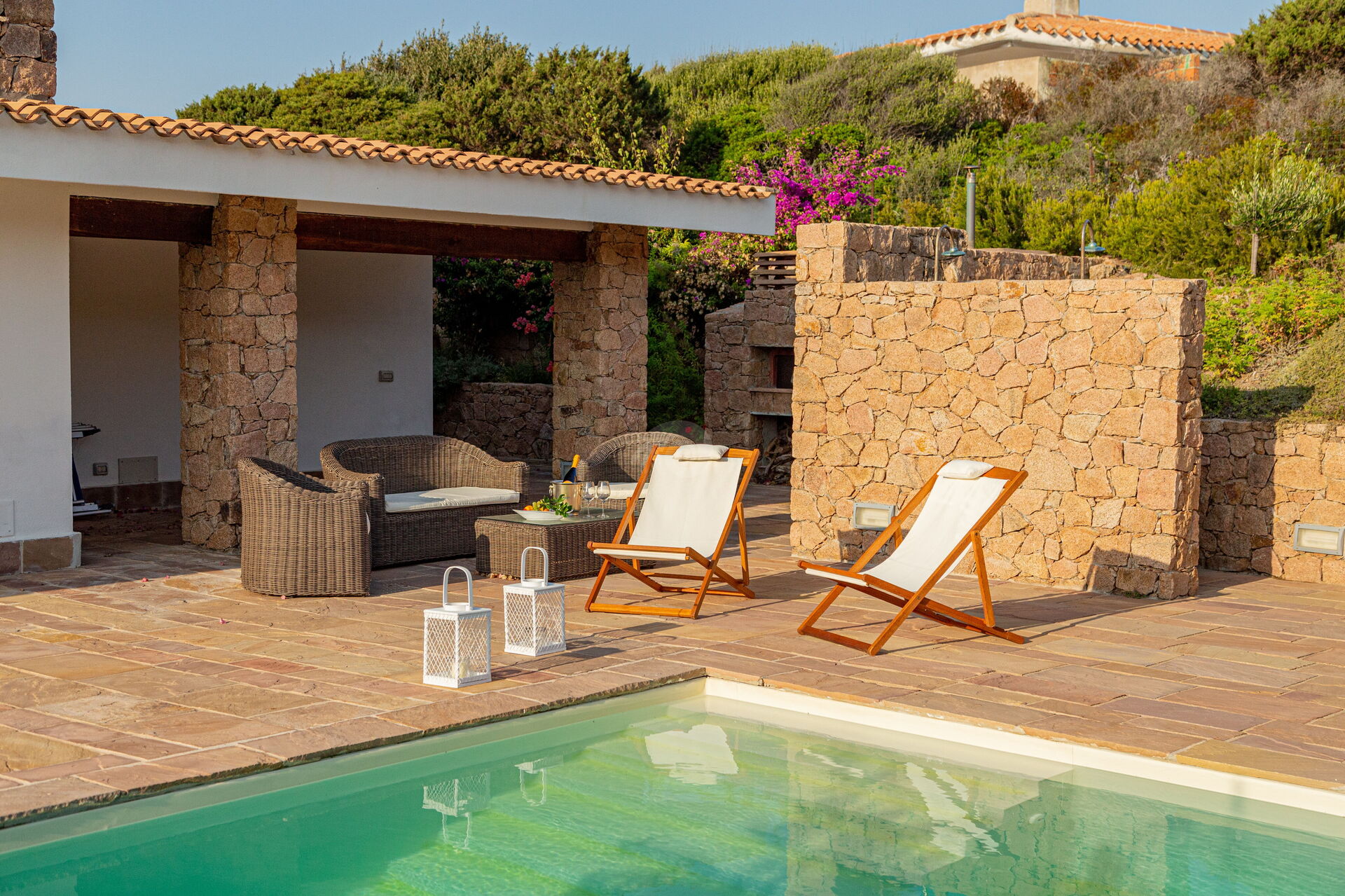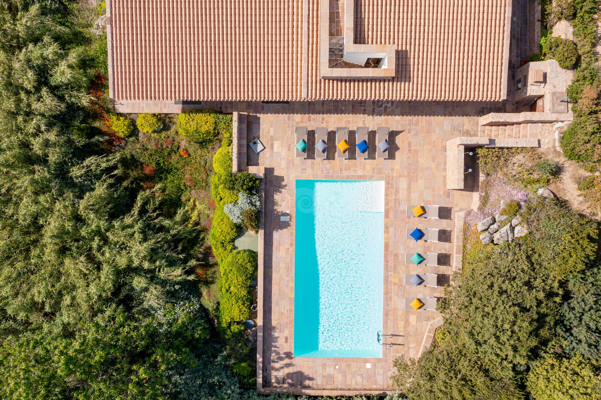 Die Villa ist von einem Garten mit typisch sardischen Pflanzen und mediterranem Gestrüpp umgeben. Ein kurzer Weg führt zur herrlichen Sandbucht.