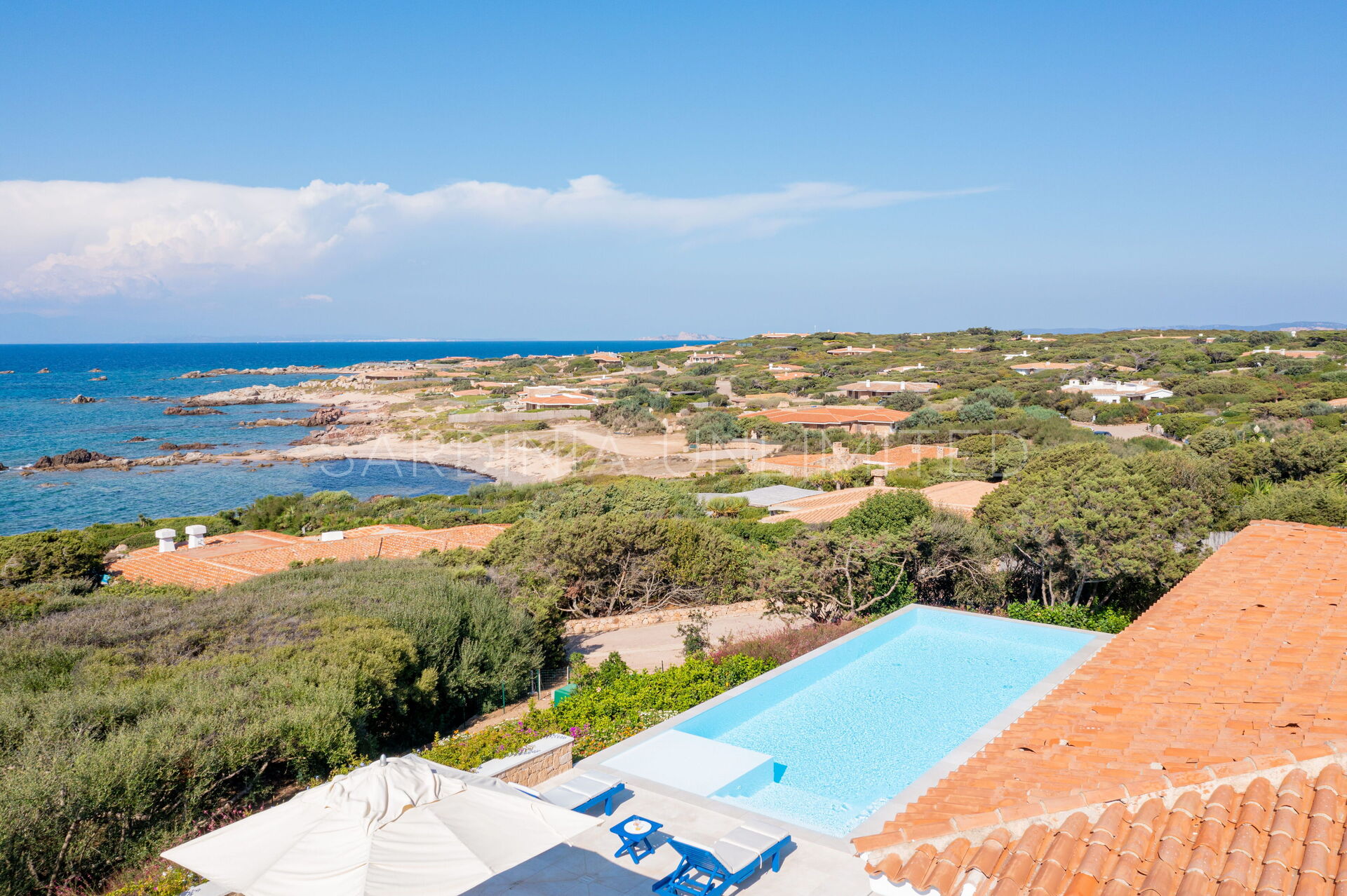 Villa Gloriator, exklusive Villa in Sardinien mit Pool in der ersten Reihe vor dem Meer und ca. 100 Meter vom Strand entfernt.