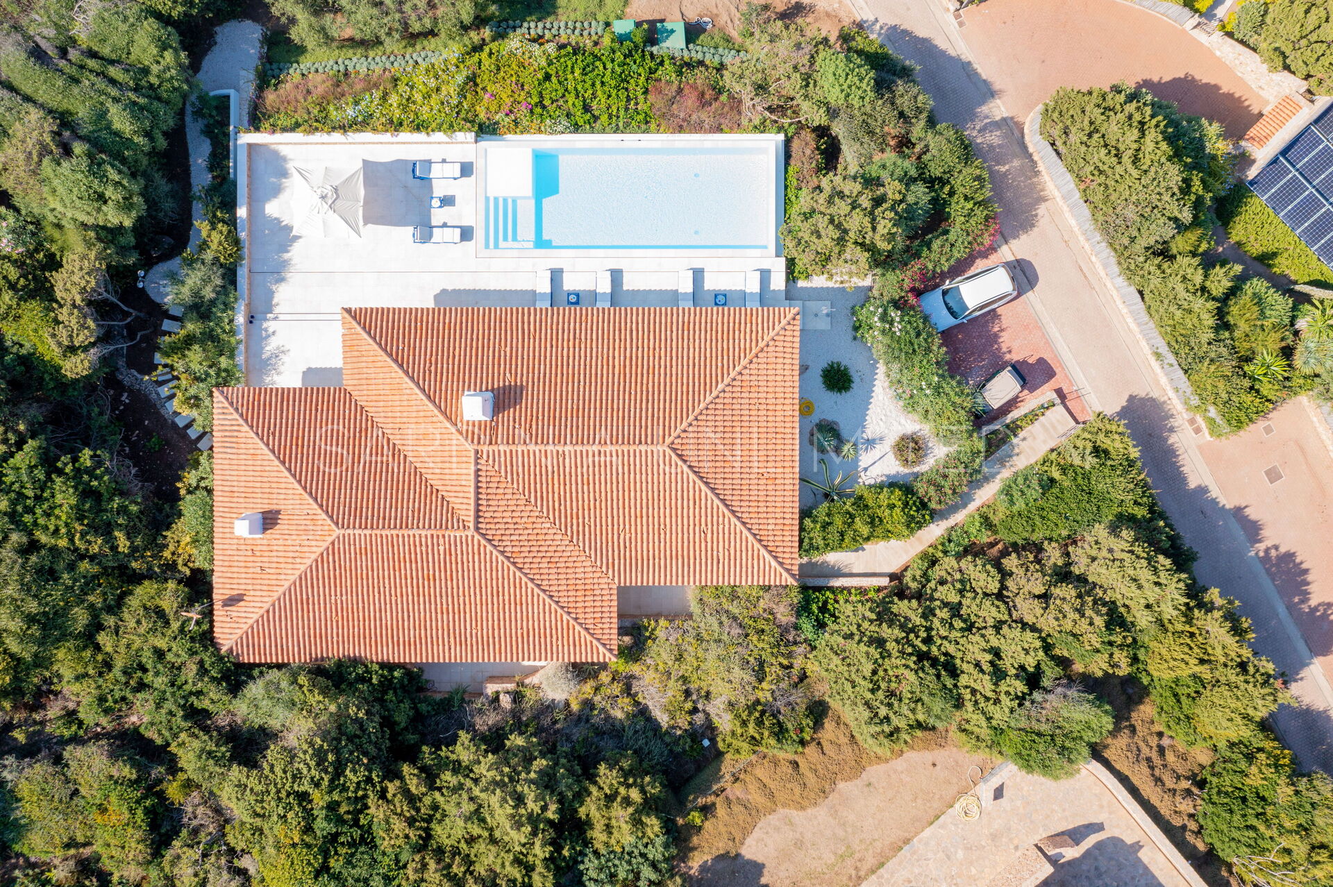 Hervorzuheben ist der luftige Pool-Bereich mit Solarium und Veranda, in dem Sie unbeschwerte Momente im Kreise von Familie und Freunden verbringen können.