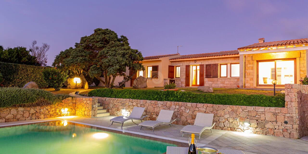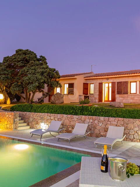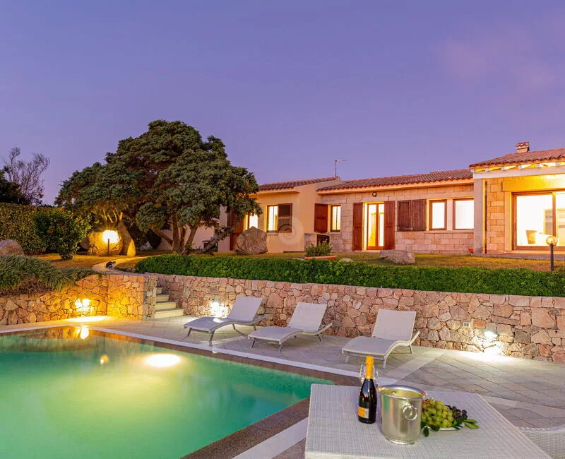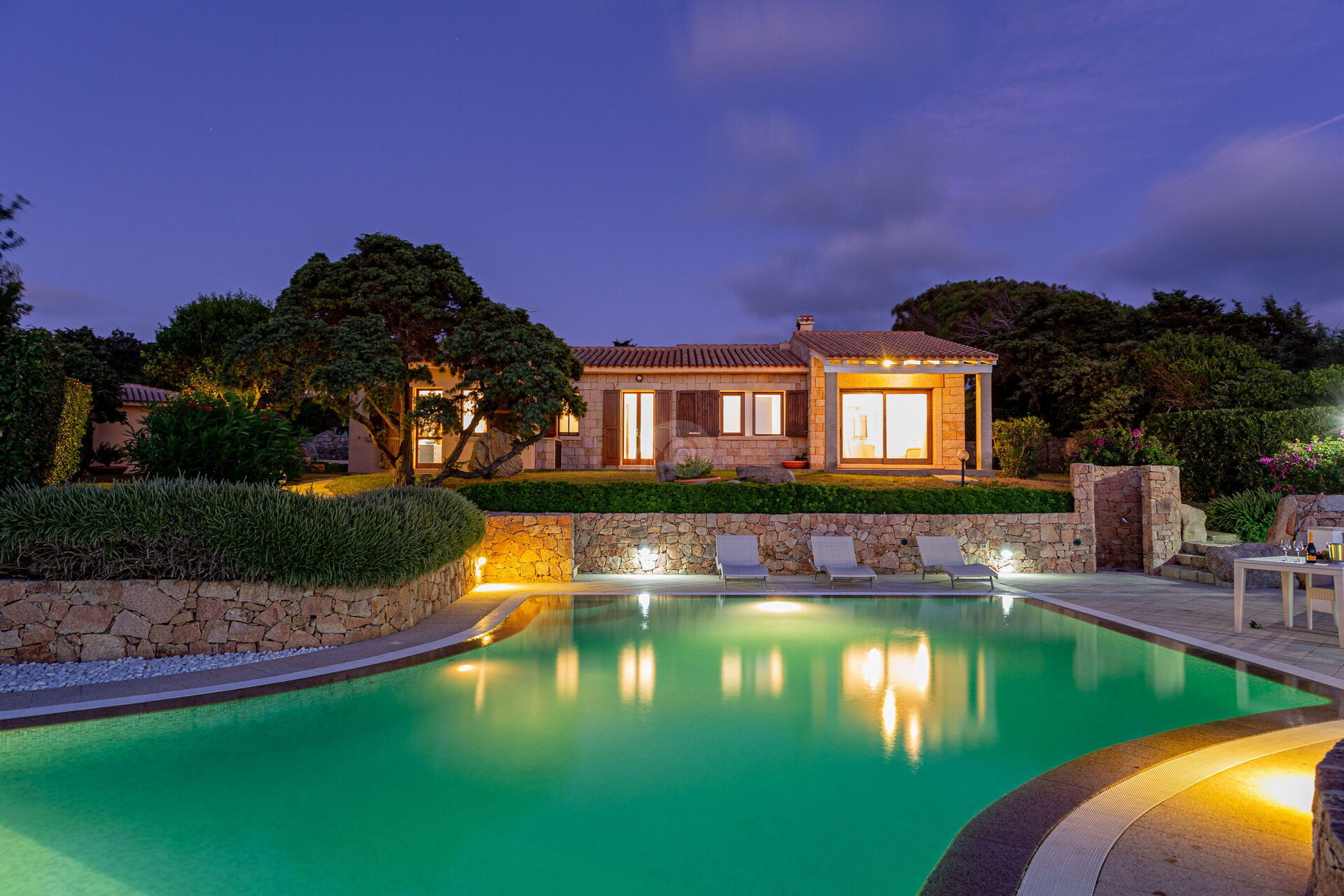 Villa Incanto di Gallura besteht aus 5 Doppelzimmern, 5 Bädern, Wohnzimmer, Küche und 2 Veranden. Es gibt einen großen Privatpool, einen Grill, eine Klimaanlage und allen Komfort.