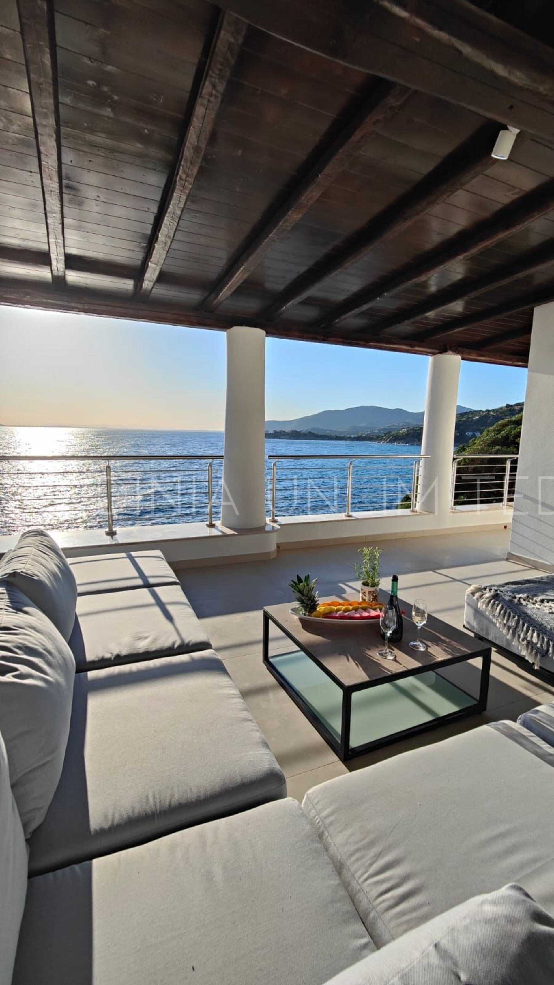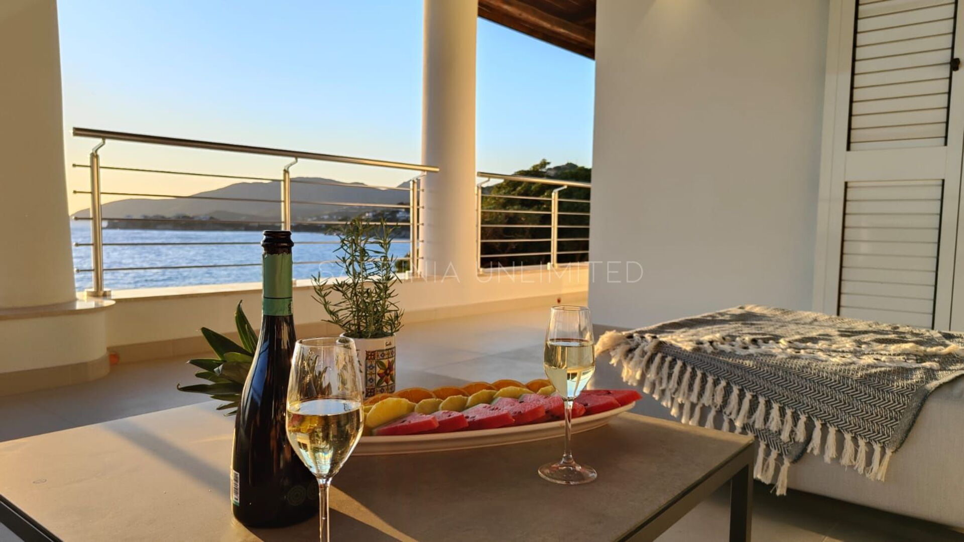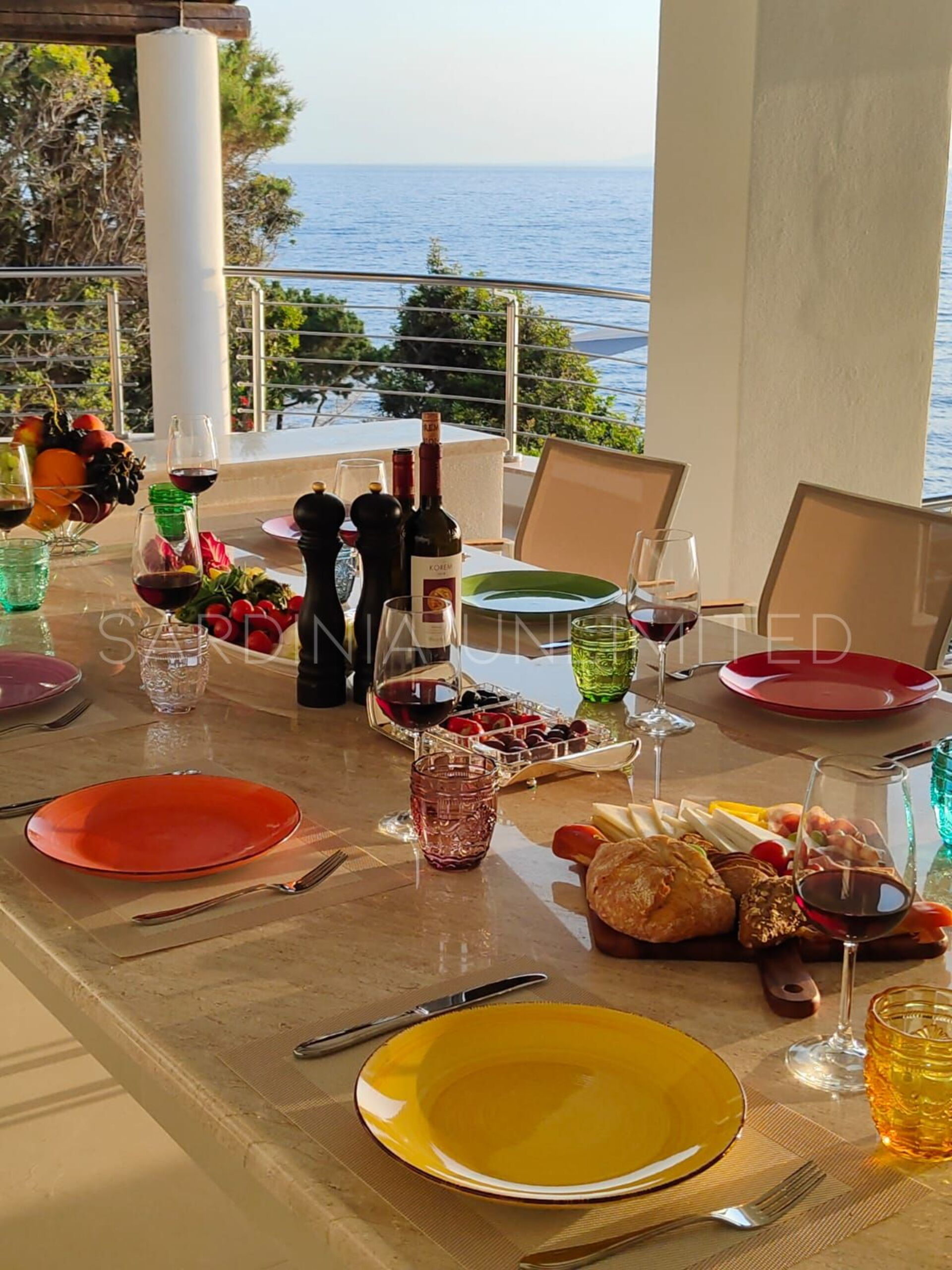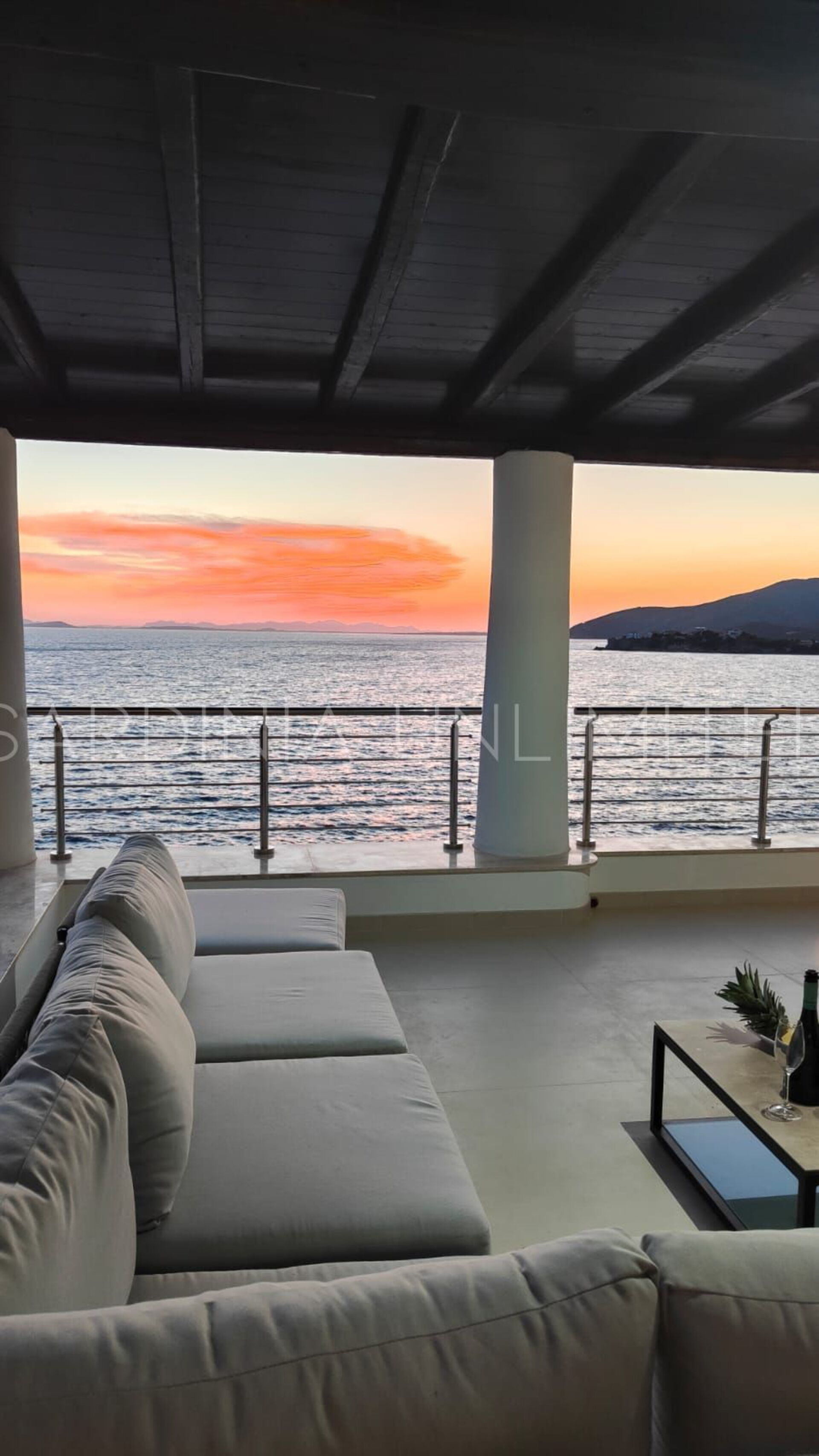 Diese Villa mit direktem Meerzugang auf Sardinien, umgeben von den unendlichen Schattierungen der mediterranen Macchia und den intensiven Farben des Meeres, ist eine luxuriöse Oase der Entspannung. Aus diesem Grund verfügt das Anwesen über zahlreiche und faszinierende Außenbereiche, die sowohl der Freizeit als auch der Geselligkeit gewidmet sind, wie zum Beispiel eine geräumige Veranda mit einem bequemen Tisch mit Blick auf das Meer, flankiert von einem Loungebereich, in dem sich ein geräumiges Ecksofa befindet, um einen herrlichen Aufenthalt zu genießen Aperitif mit Meerblick.