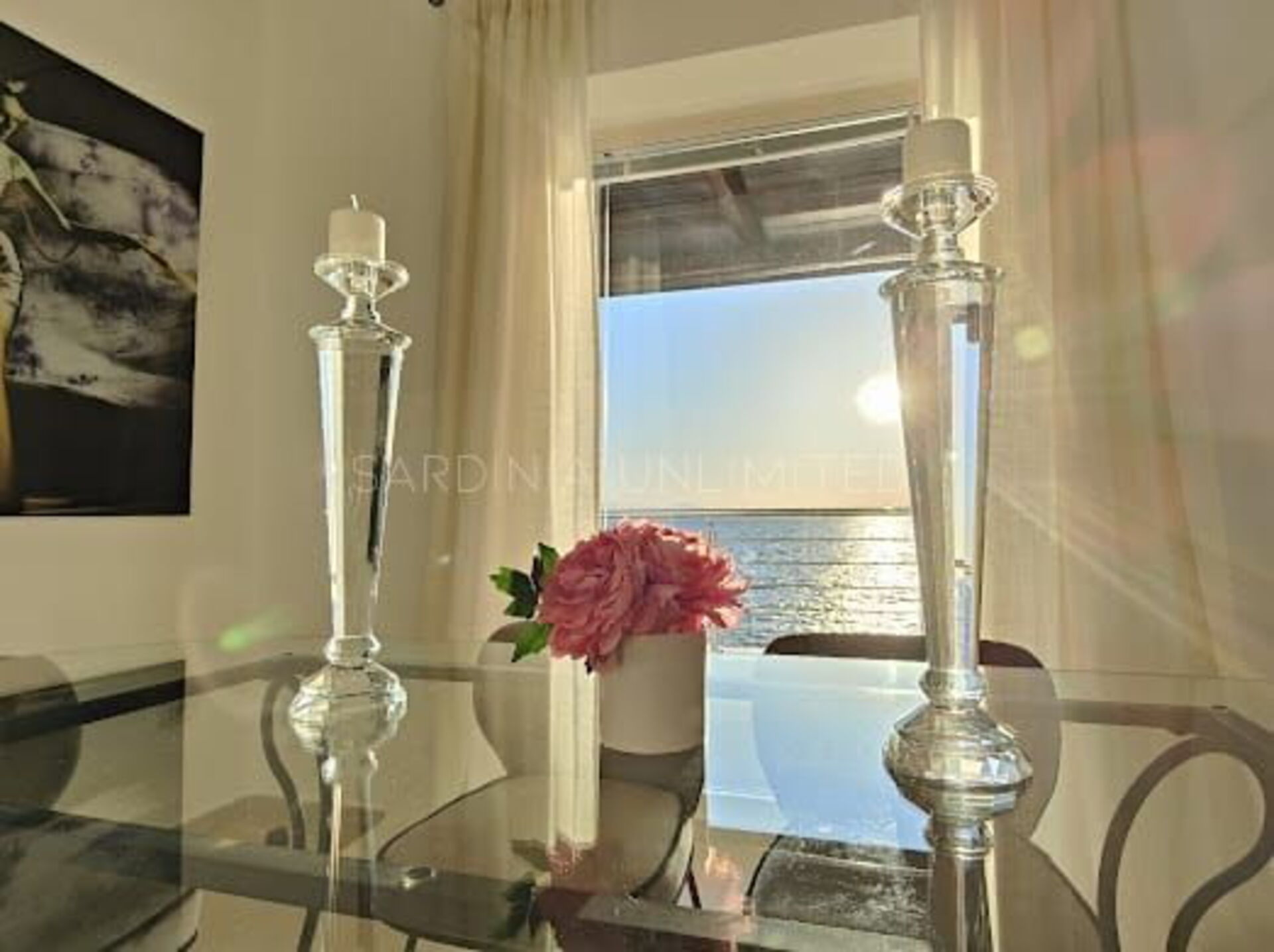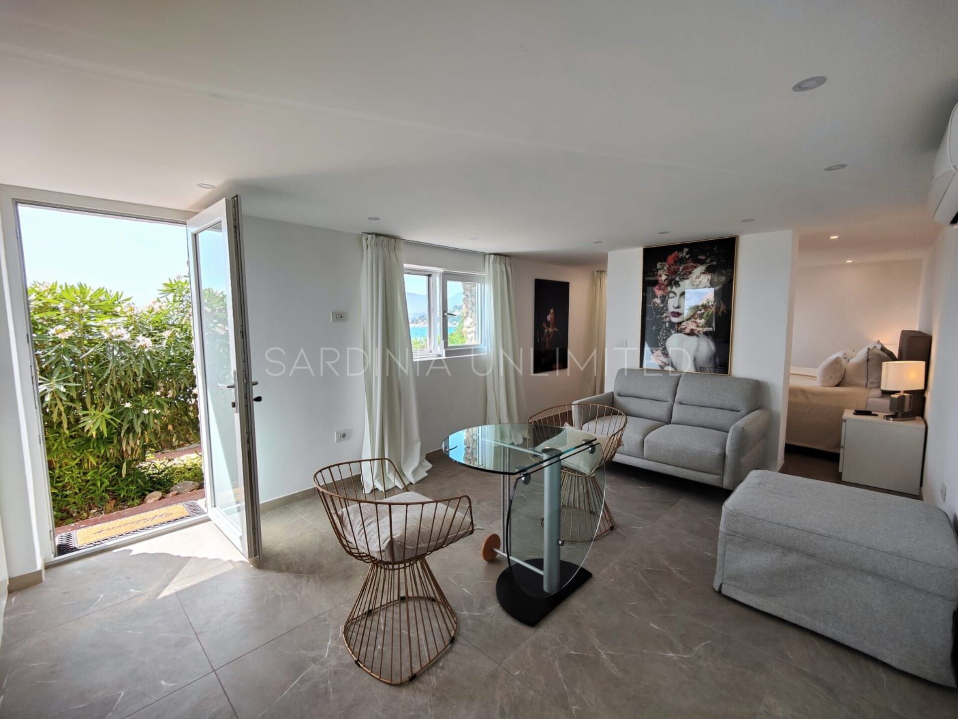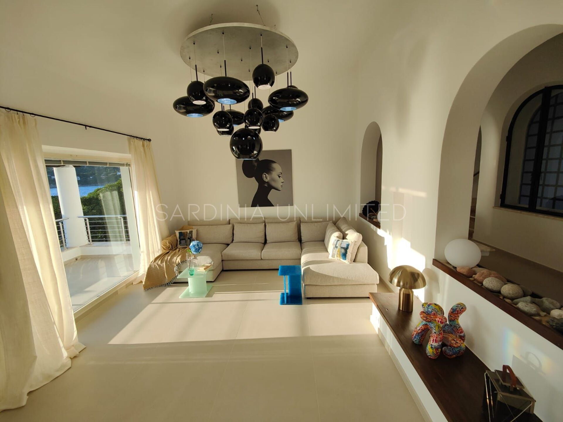 Villa Poesia d'Estate ist eine prächtige Villa auf Sardinien, das in einem entzückenden und raffinierten modernen Stil eingerichtet ist, der ihm eine bezaubernde Note von Eleganz verleiht. Am Eingang befindet sich ein geräumiger Wohnbereich mit einem bequemen Ecksofa und einem edlen Glastisch, in dem dank der Kombination der hellen und sanften Farben der Möbel mit den großen Panoramafenstern viel Licht herrscht. All dies trägt dazu bei, ein Gefühl der Kontinuität zwischen dem Innenraum und der geräumigen Außenveranda zu schaffen.