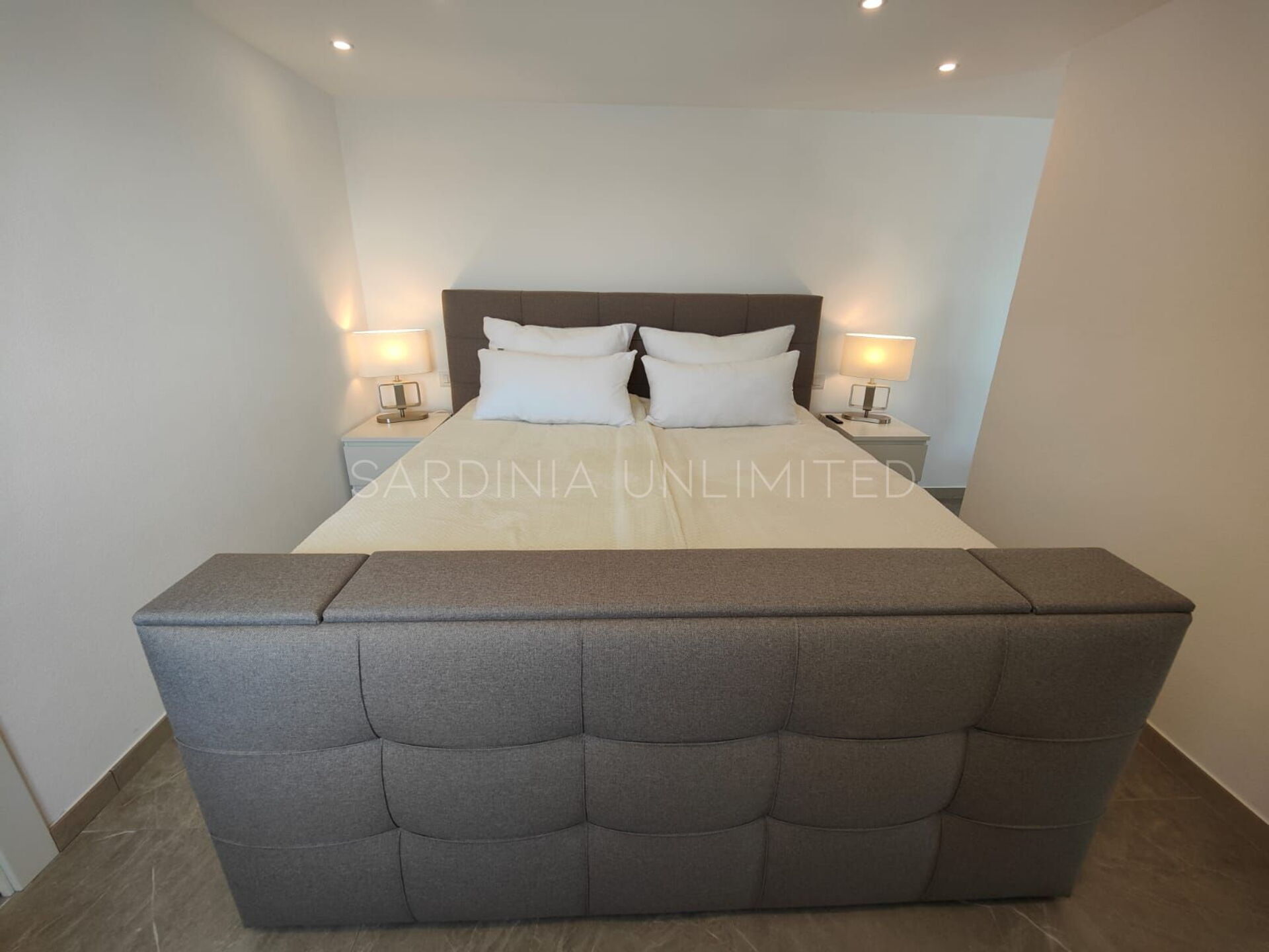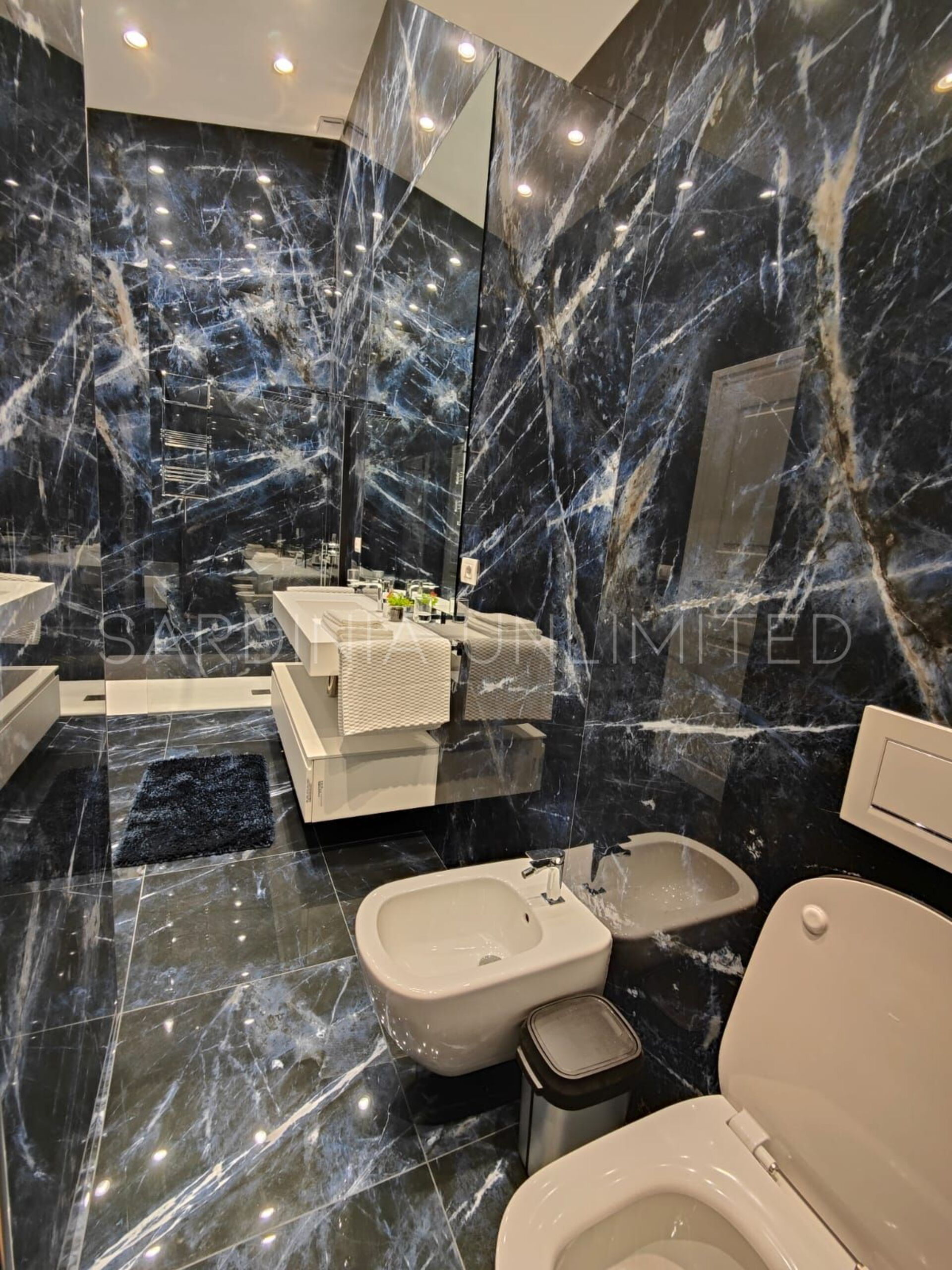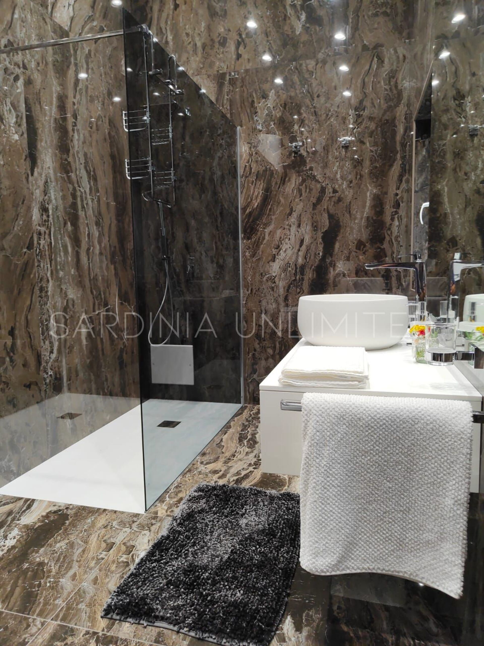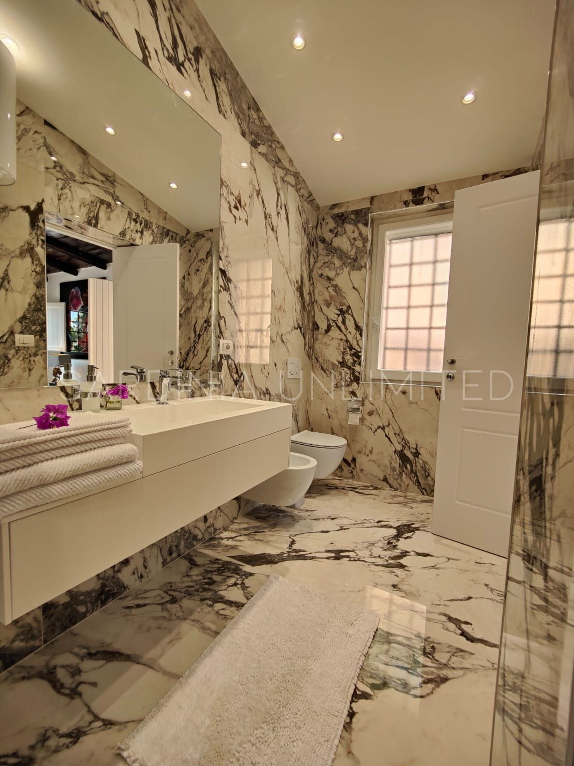 Der Schlafbereich behält den gleichen Charme und die gleiche Eleganz wie der Rest des Hauses. Tatsächlich gibt es in der Villa eine große Master-Suite, die als multifunktionaler Raum konzipiert ist: ein großer offener Raum, in dem die Räume durch Gewölbebögen getrennt sind und der aus einem Doppelbett, einem geräumigen begehbaren Kleiderschrank und einer bezaubernden Leseecke besteht und schließlich ein Hauptbadezimmer aus edlem schwarzem Marmor. In der Villa gibt es zwei weitere Doppelzimmer, beide mit eigenem Bad: Das erste ist mit einem Kinderzimmer kombiniert, in dem sich ein Etagenbett befindet, und das zweite zeichnet sich durch einen separaten Eingang aus.
