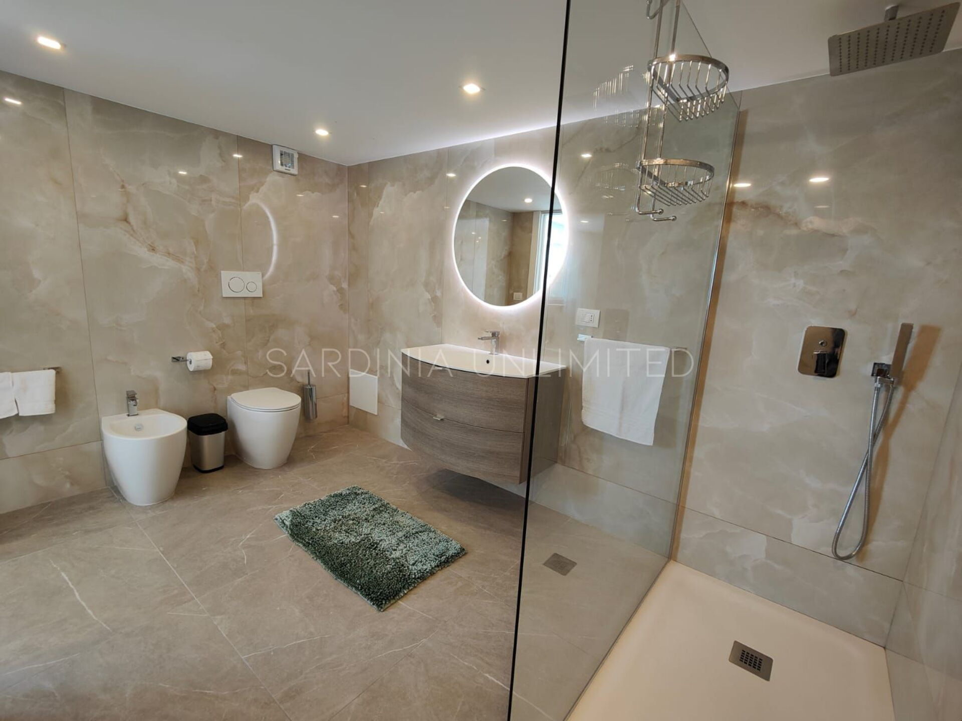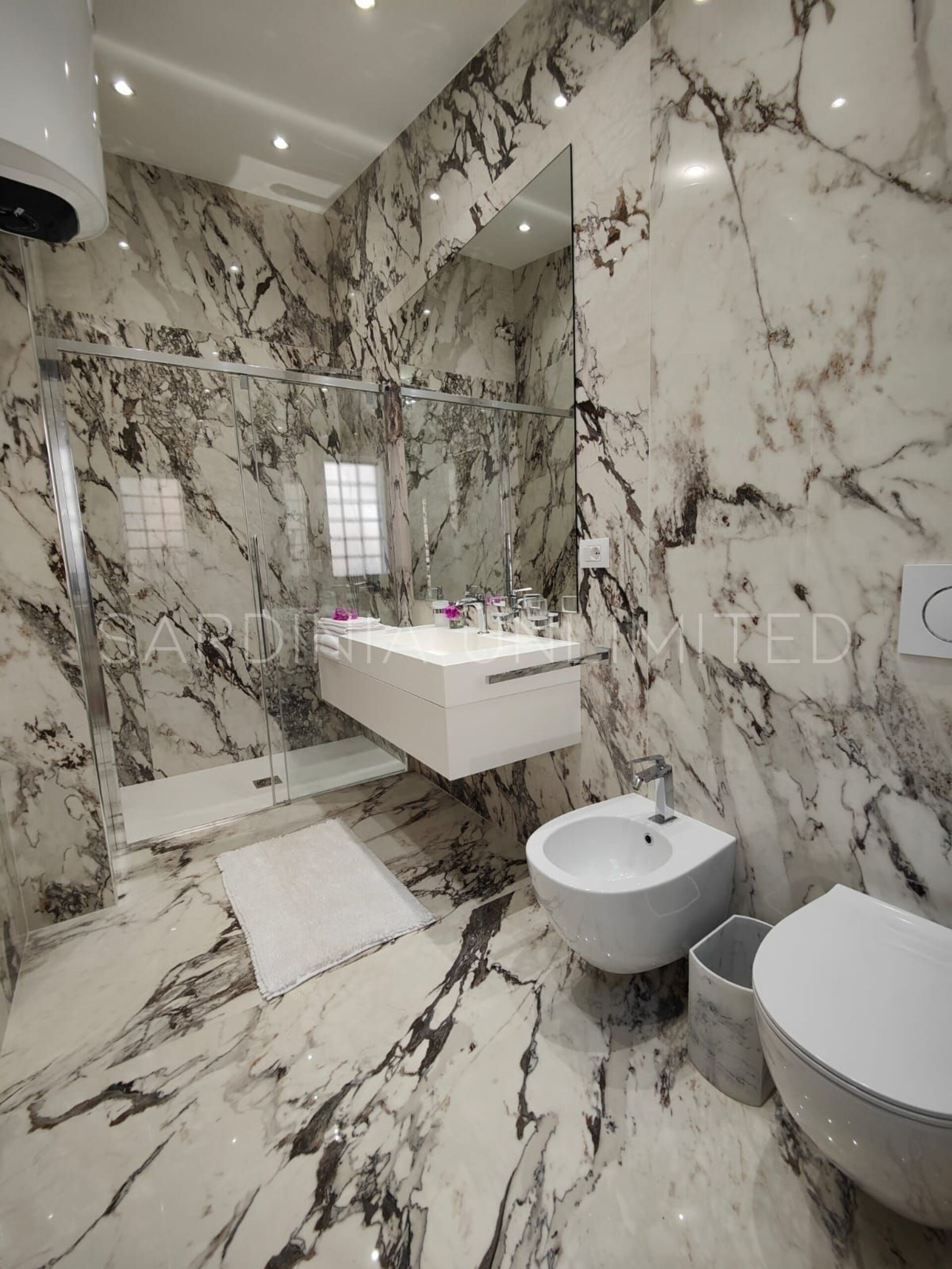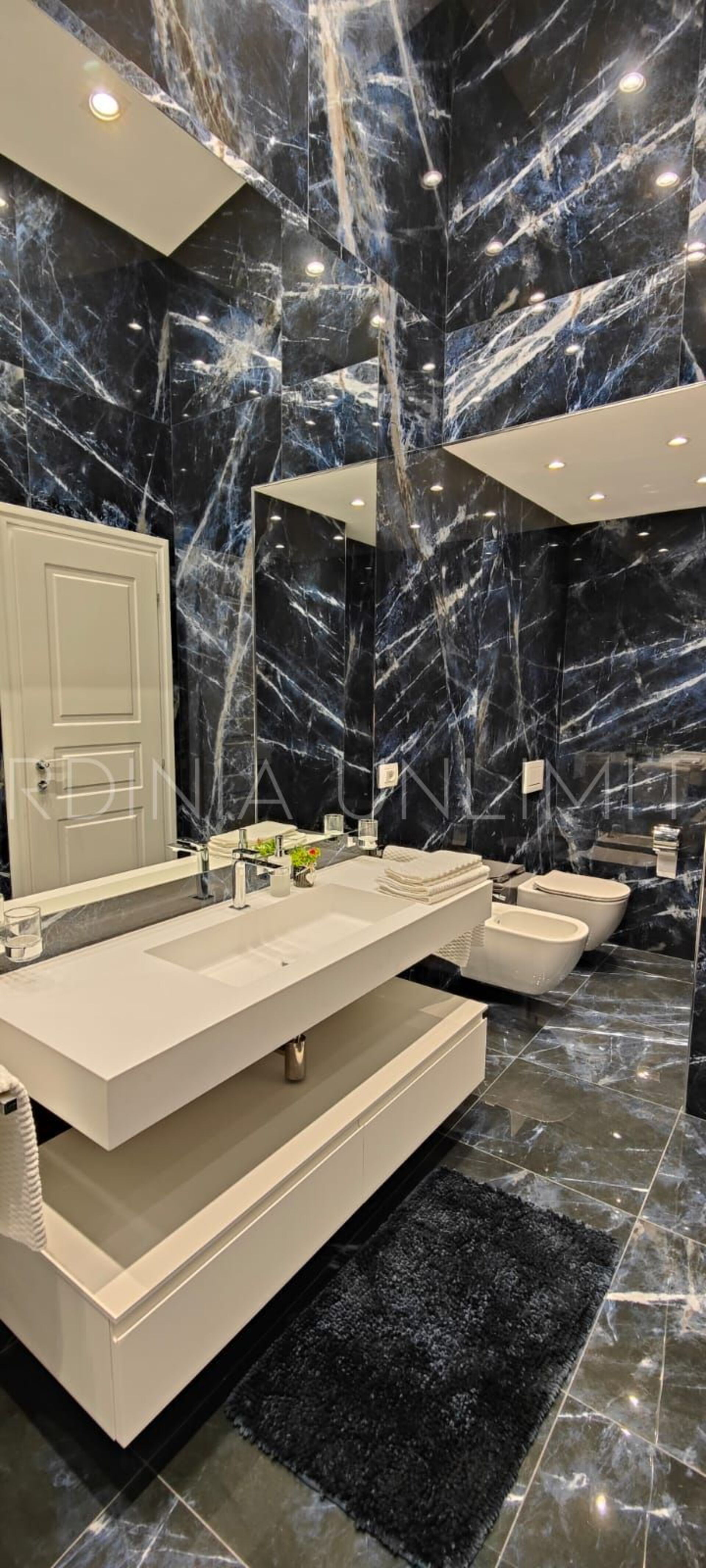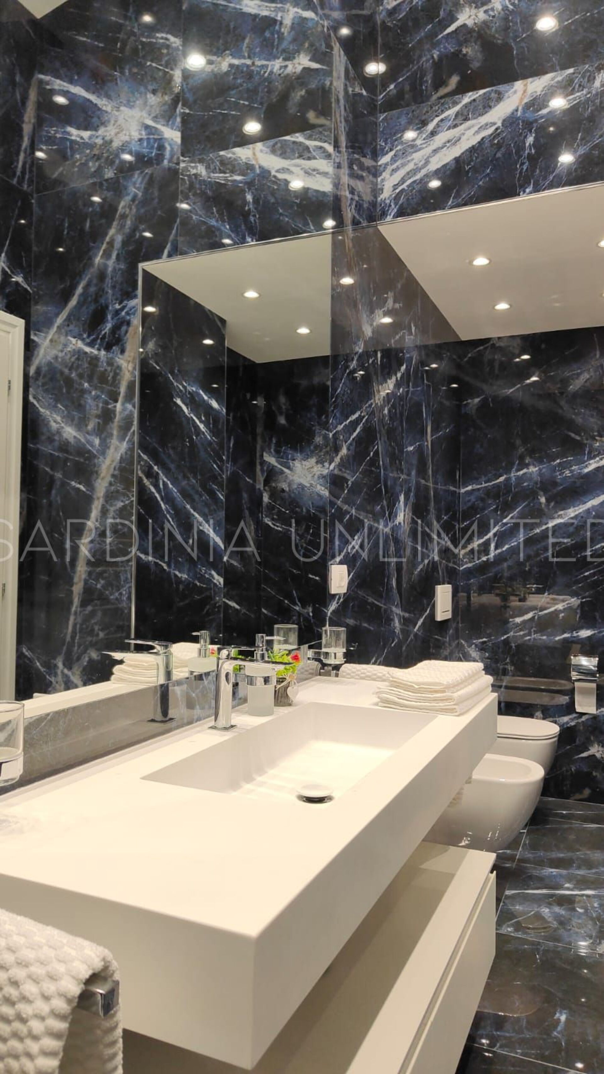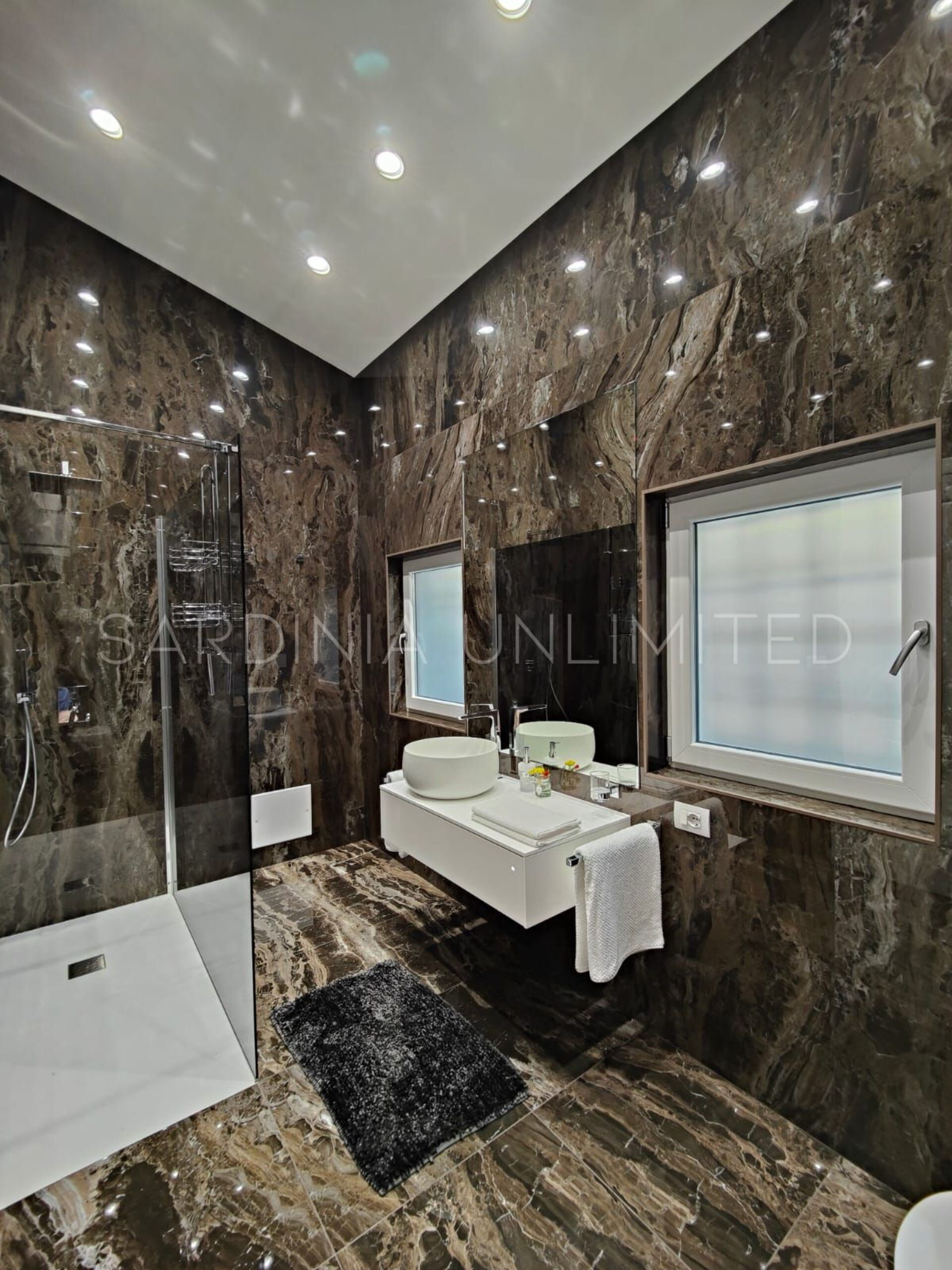 Der Schlafbereich behält den gleichen Charme und die gleiche Eleganz wie der Rest des Hauses. Tatsächlich gibt es in der Villa eine große Master-Suite, die als multifunktionaler Raum konzipiert ist: ein großer offener Raum, in dem die Räume durch Gewölbebögen getrennt sind und der aus einem Doppelbett, einem geräumigen begehbaren Kleiderschrank und einer bezaubernden Leseecke besteht und schließlich ein Hauptbadezimmer aus edlem schwarzem Marmor. In der Villa gibt es zwei weitere Doppelzimmer, beide mit eigenem Bad: Das erste ist mit einem Kinderzimmer kombiniert, in dem sich ein Etagenbett befindet, und das zweite zeichnet sich durch einen separaten Eingang aus.