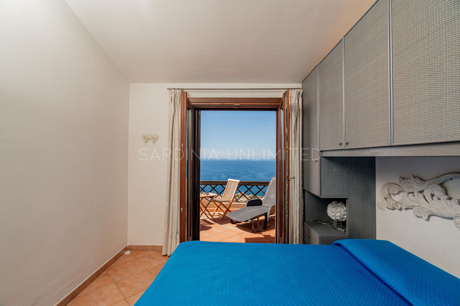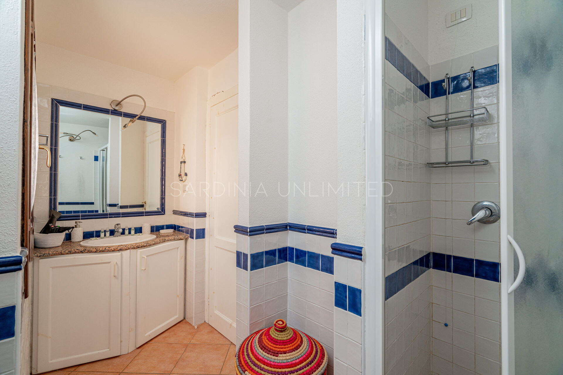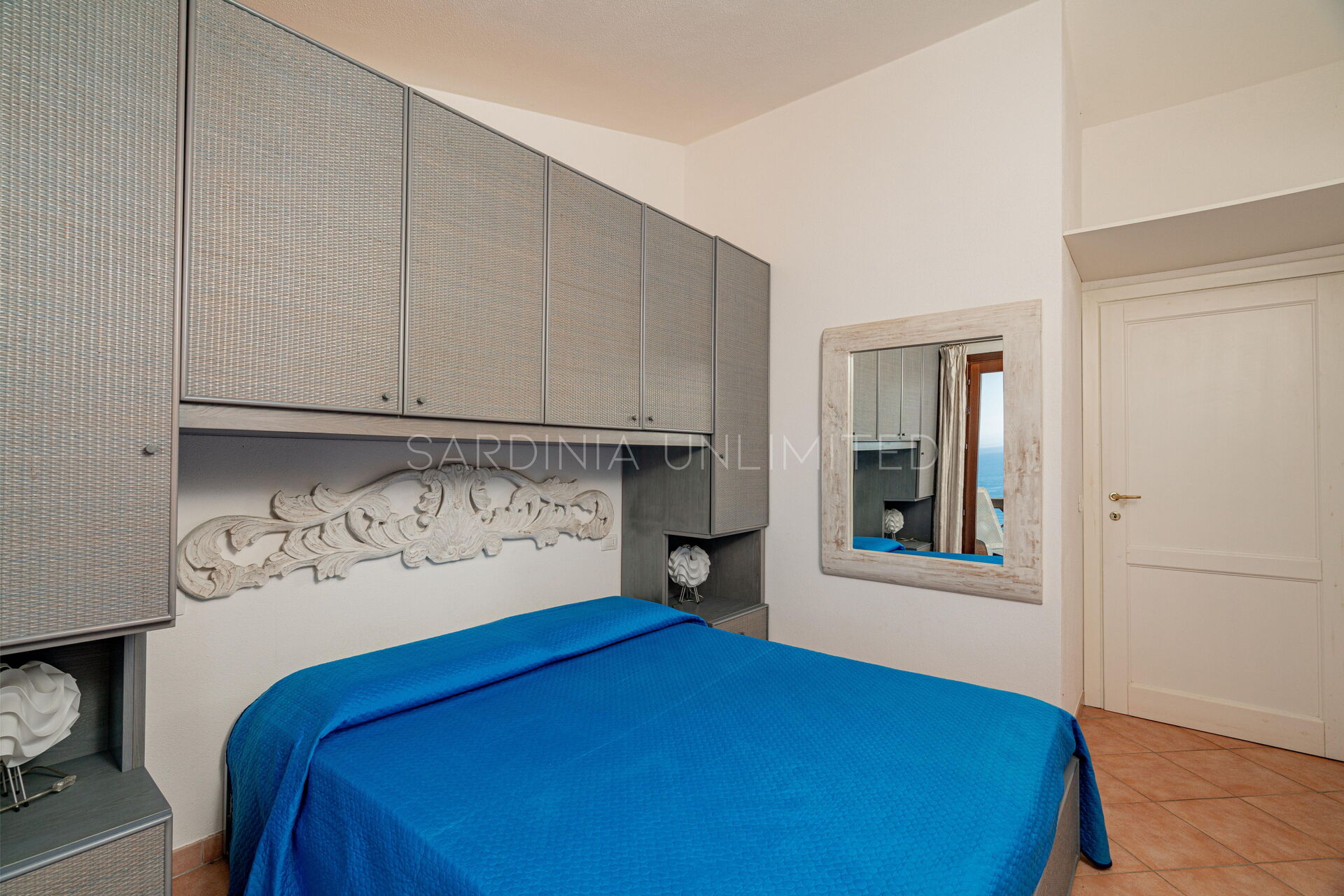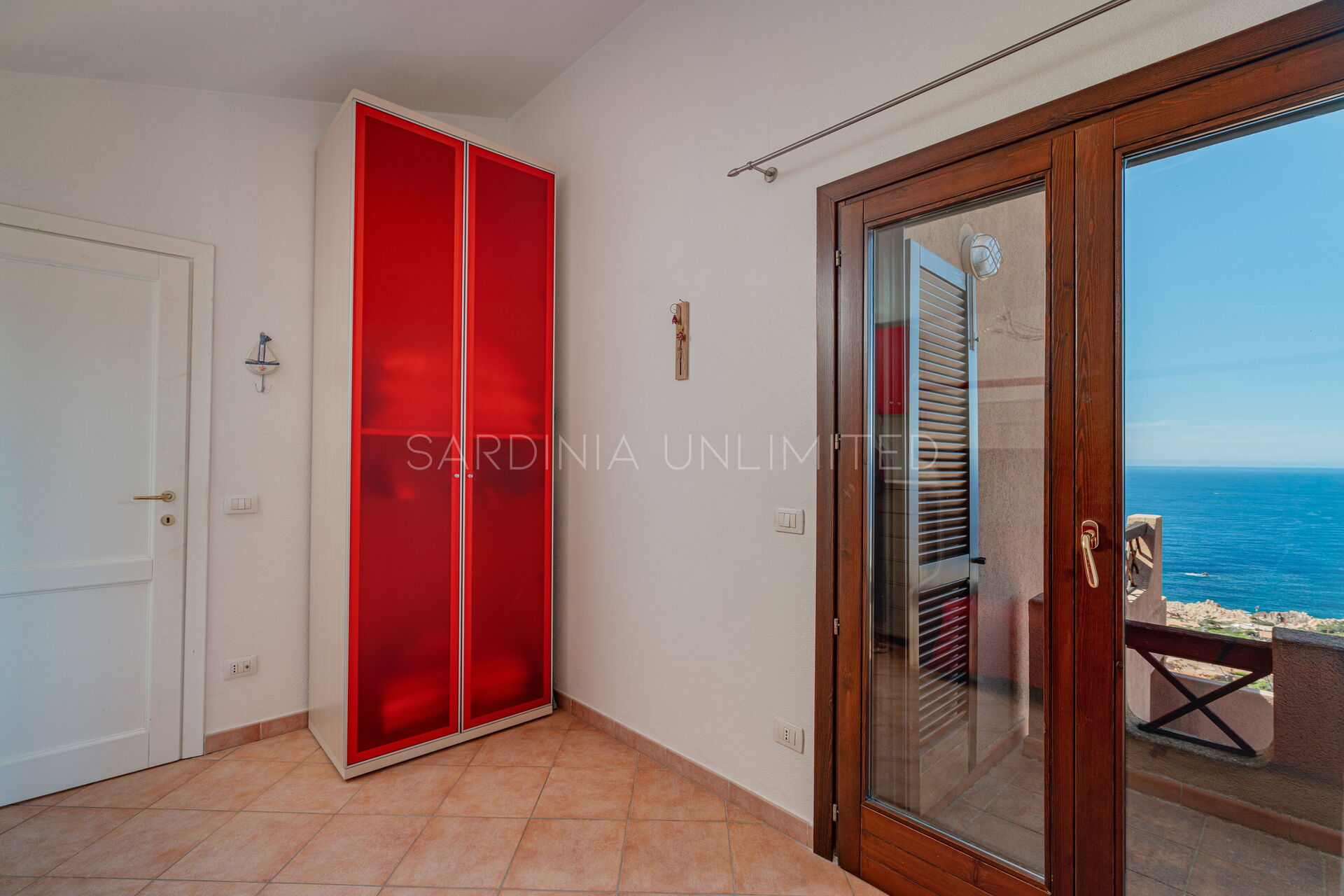 La véranda panoramique est le cœur de la maison : un lieu privilégié pour admirer le contraste entre la mer bleue, les collines verdoyantes et les rochers aux reflets rosés qui caractérisent cette portion de côte. Parfaite pour déjeuner en plein air ou pour profiter de moments de détente à l’ombre, elle offre une atmosphère paisible et silencieuse, immergée dans la nature sauvage et parfumée de la végétation locale. Juste à côté, un coin solarium confortable avec des chaises longues te permet de profiter pleinement de la lumière et de la chaleur méditerranéennes.