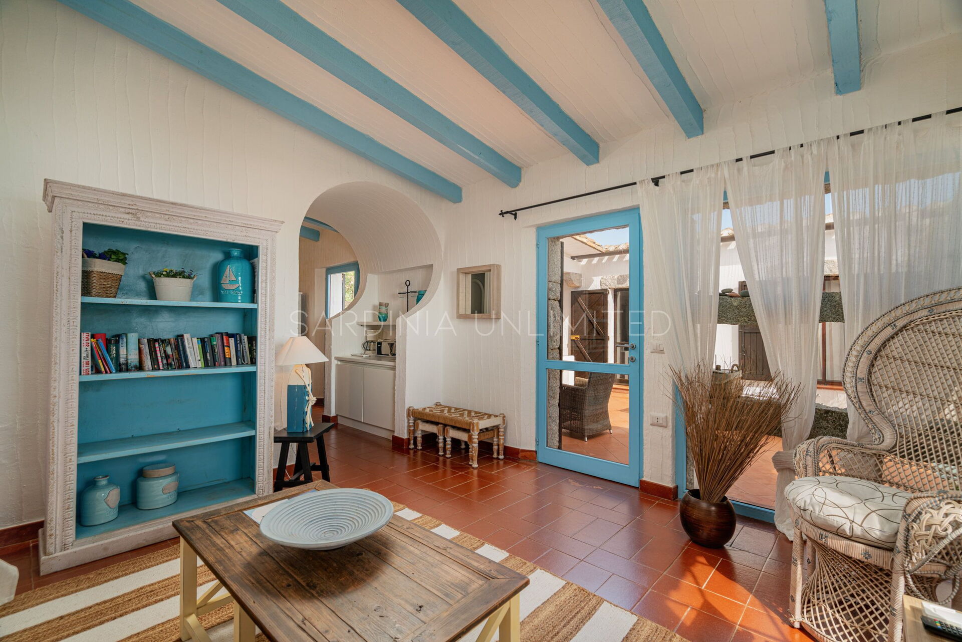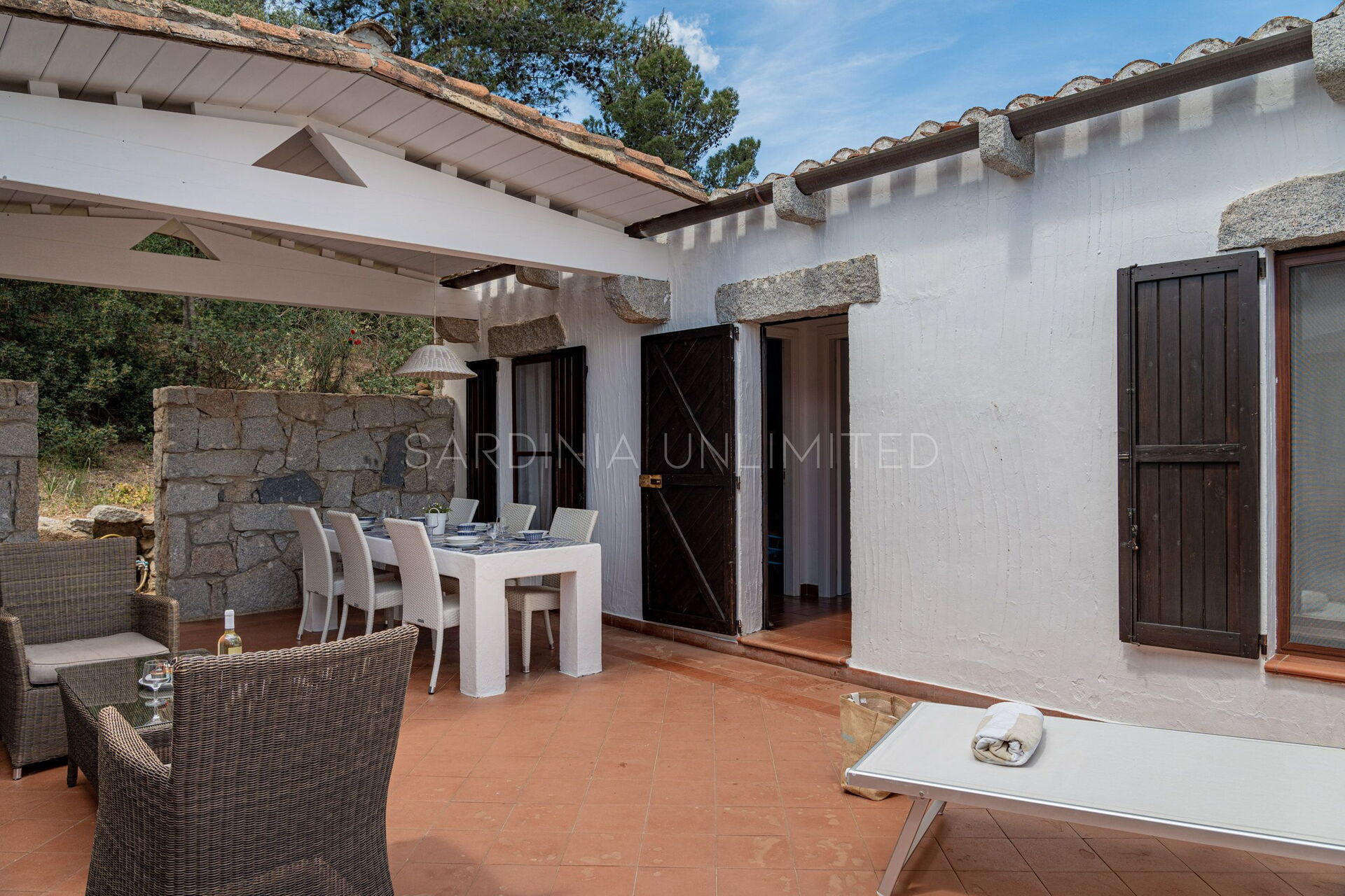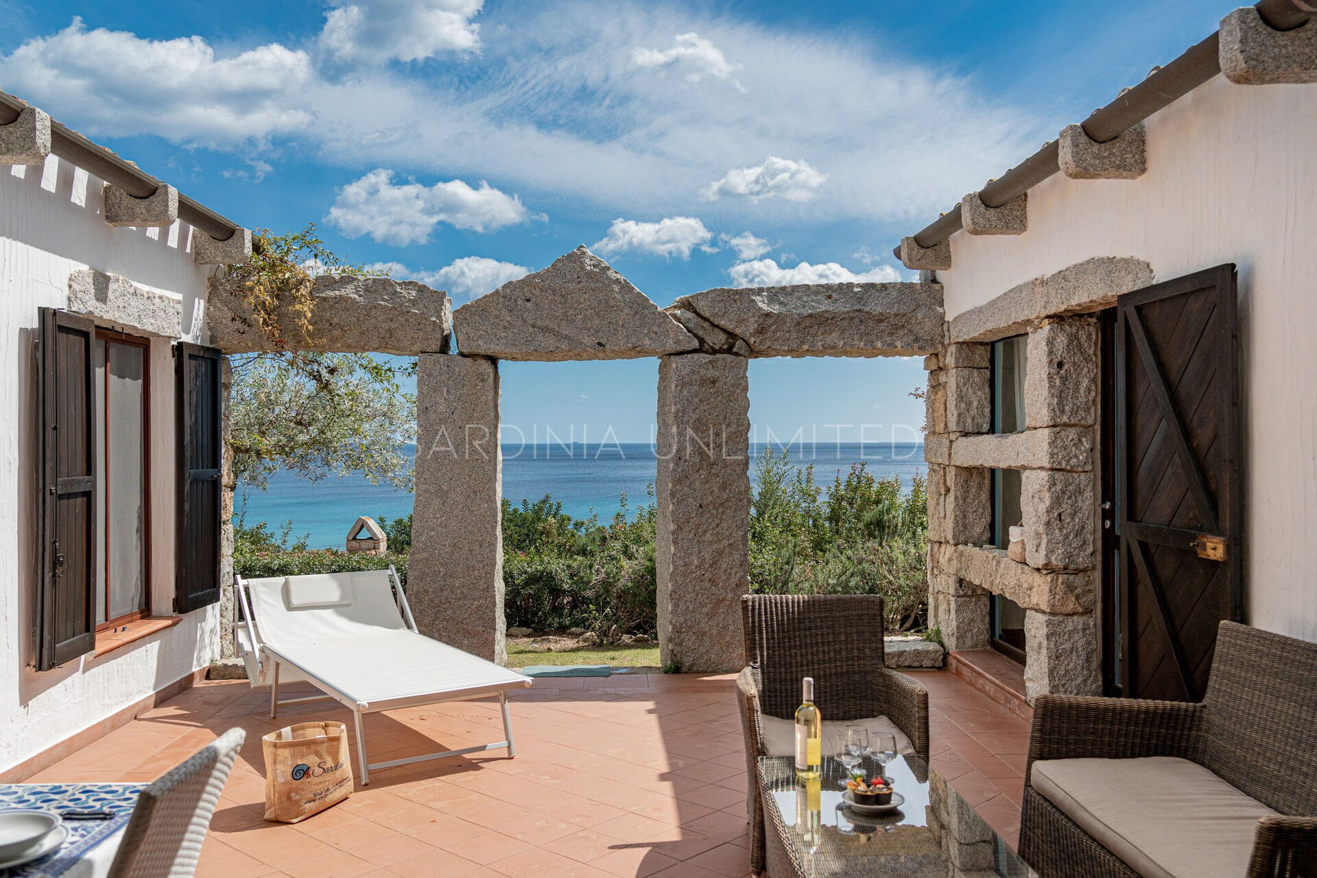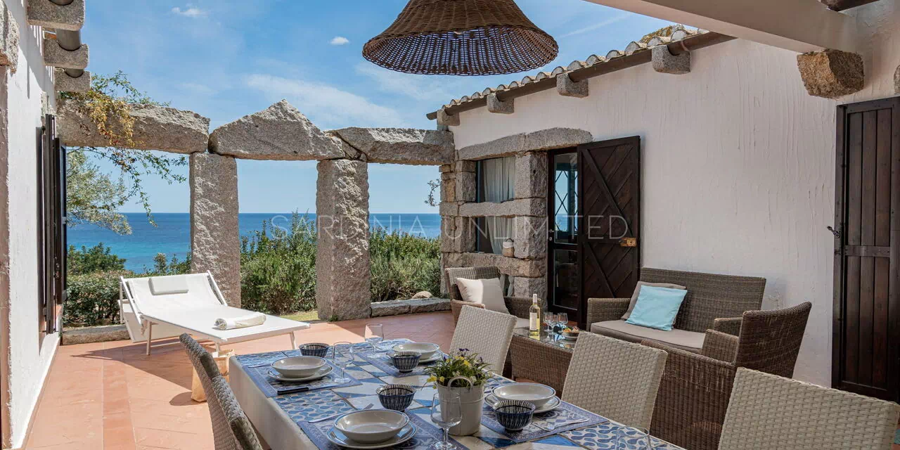 Villa Autumn Amber is a charming Sardinia holiday rental located within the enchanting residence of Sant'Elmo, a few kilometers from the village of Costa Rei. The village stands out for the architectural simplicity of its houses based on the balance between the abundant use of exposed stone and the iridescent white of the interiors. At the basis of this refined simplicity is the desire to integrate the buildings into the surrounding nature, giving them a semblance of spontaneity thanks to the use of granite which is the main material of Sardinia. The total fusion with the landscape is accompanied by an attempt to recover the historical dimension: in fact, majestic trilithons dot the entire village, giving it a wonderful ancestral atmosphere.