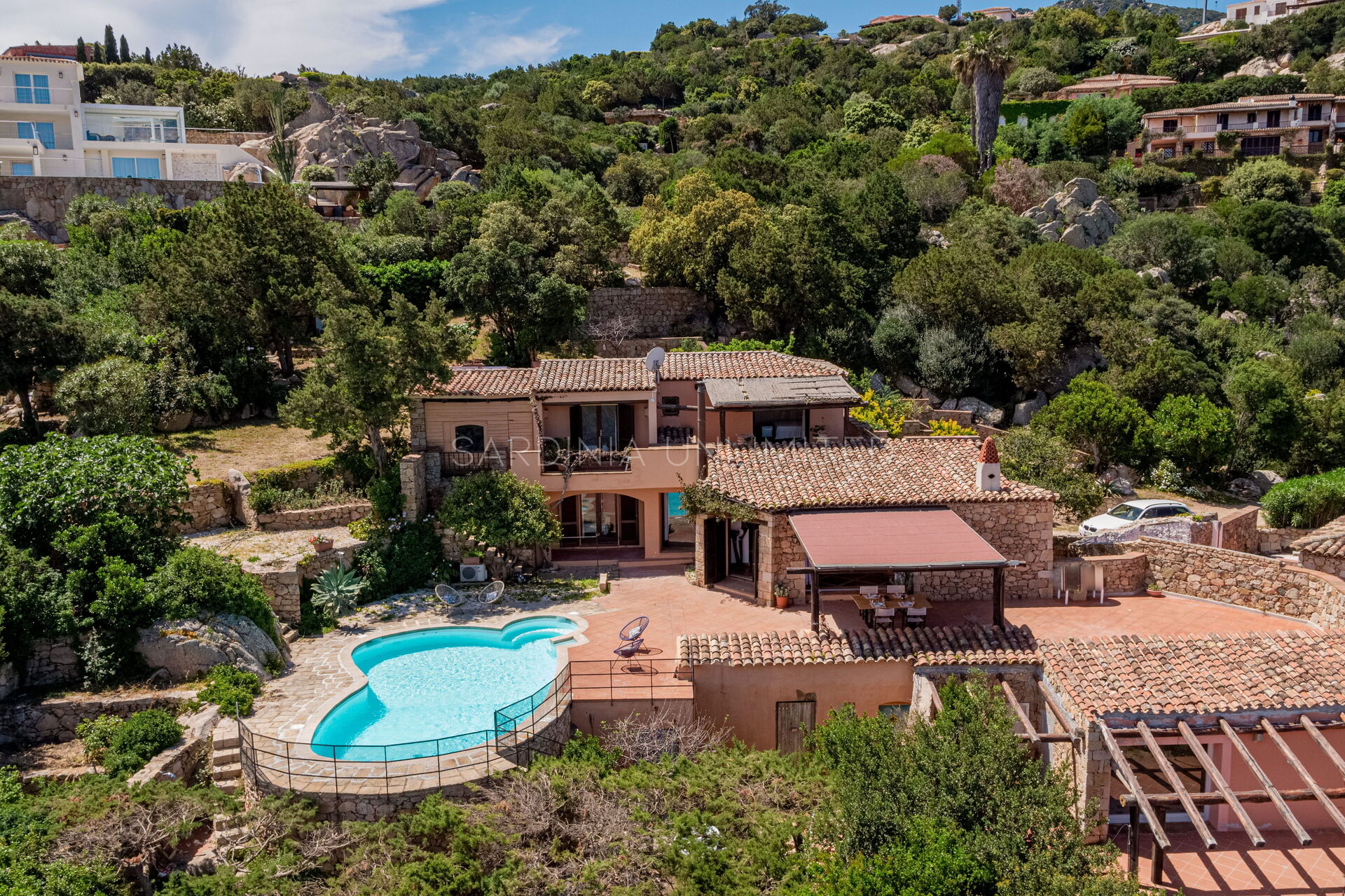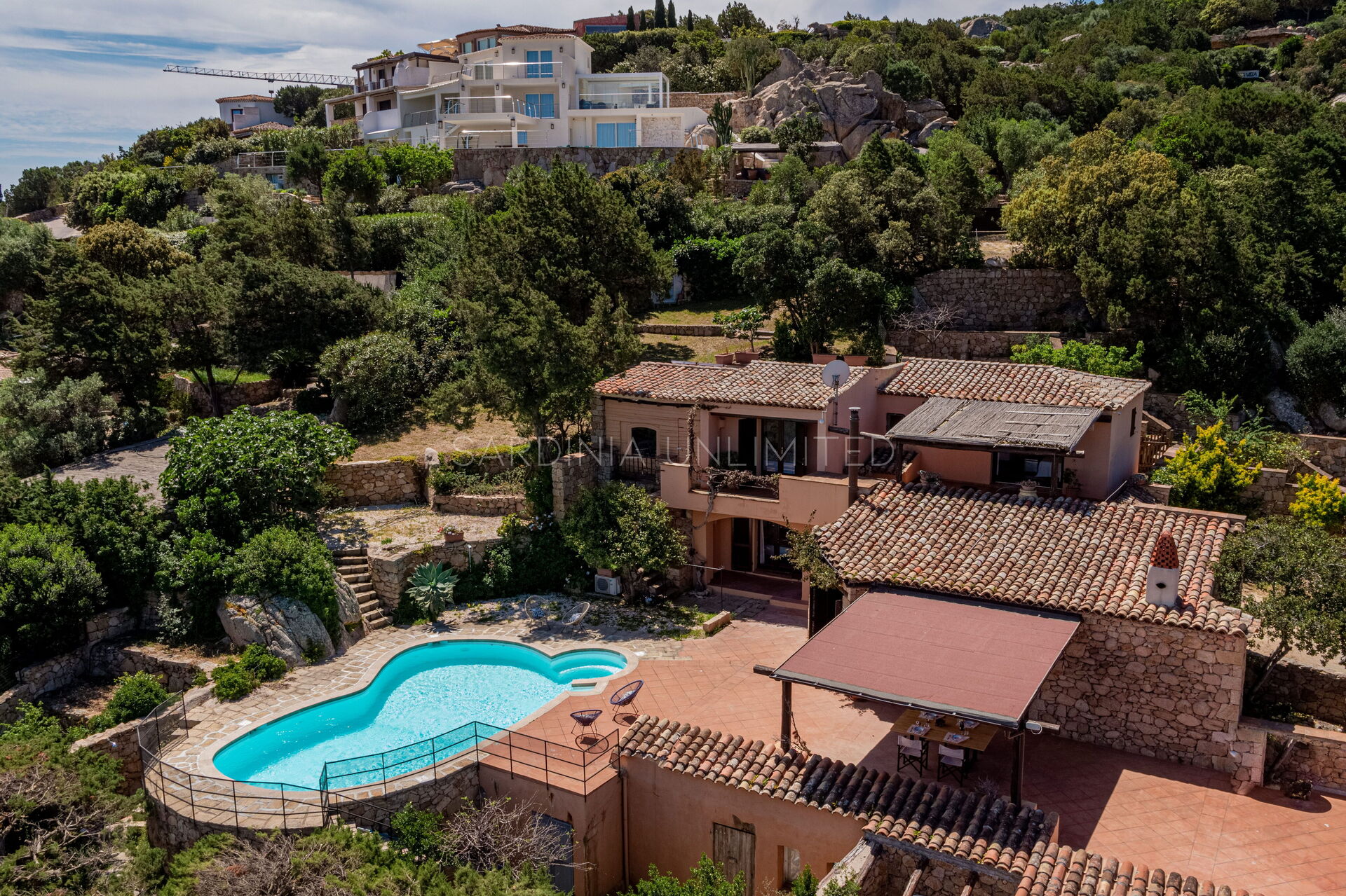 La Villa Cercueil bénéficie d'une situation privilégiée, nichée dans un environnement naturel à couper le souffle et à quelques pas seulement du faste qui caractérise le célèbre village de Porto Cervo, emblème et apogée du style architectural émeraude.