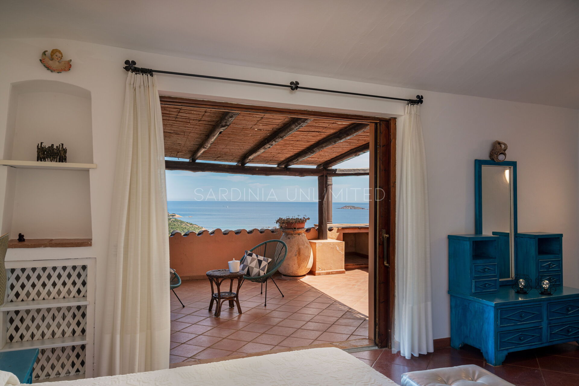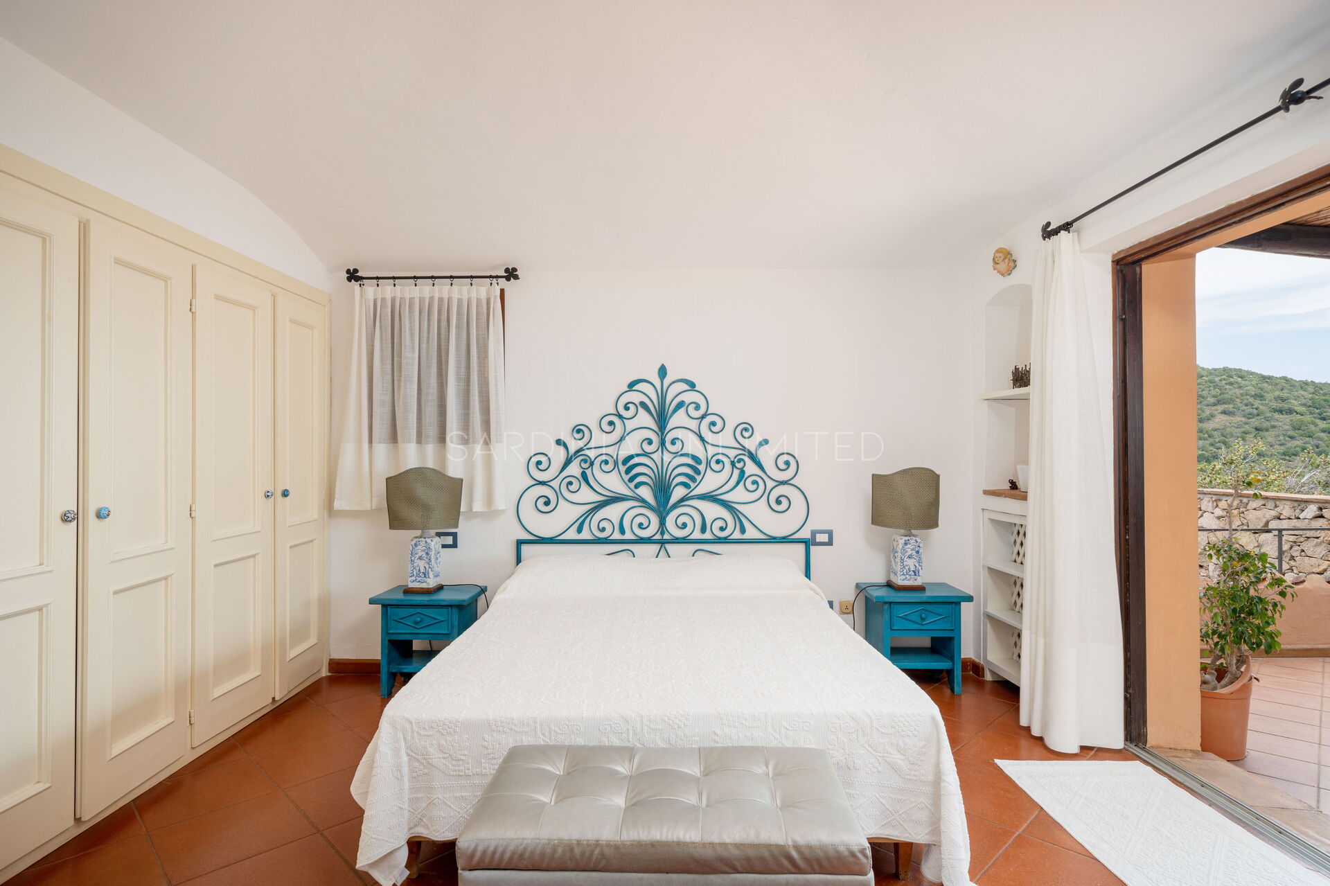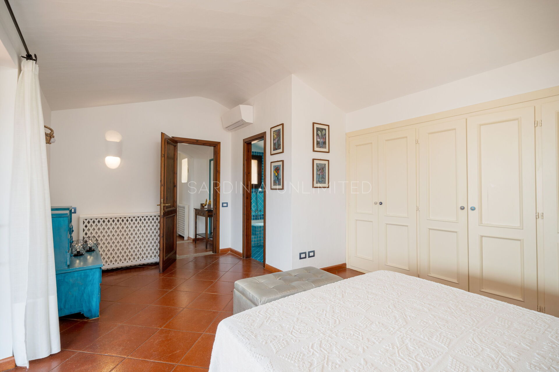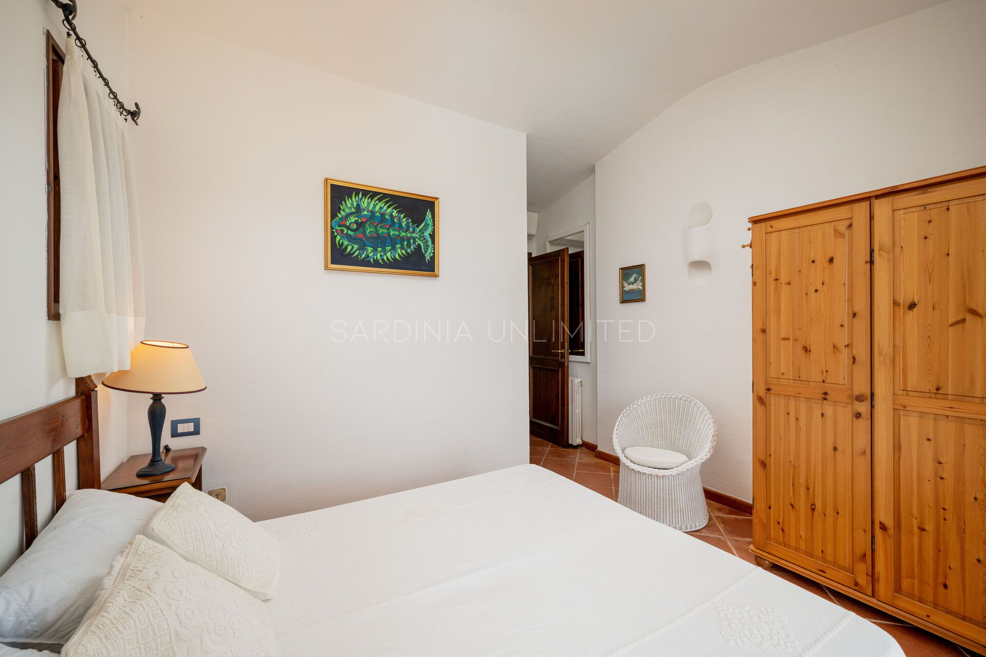 Cette villa avec piscine en Sardaigne abrite à l'étage supérieur deux grandes et lumineuses chambres doubles avec salle de bain privée :