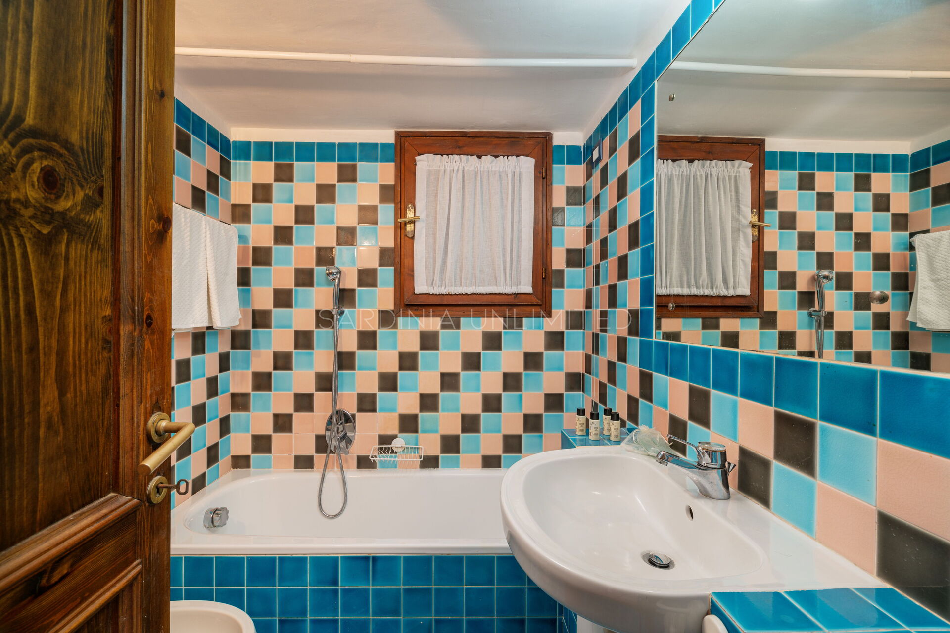 La première dispose d'une spacieuse véranda extérieure et, dans le style, la teinte affirmée du turquoise a été ajoutée pour créer une forte synergie avec le paysage environnant.