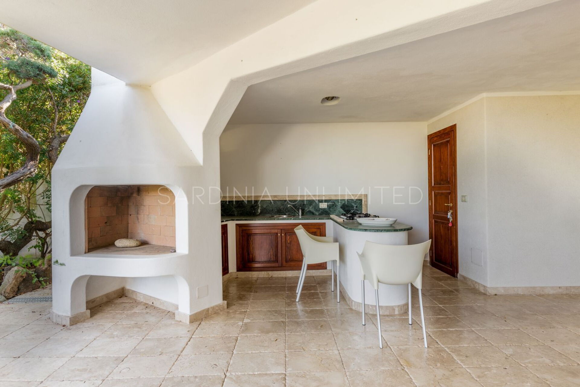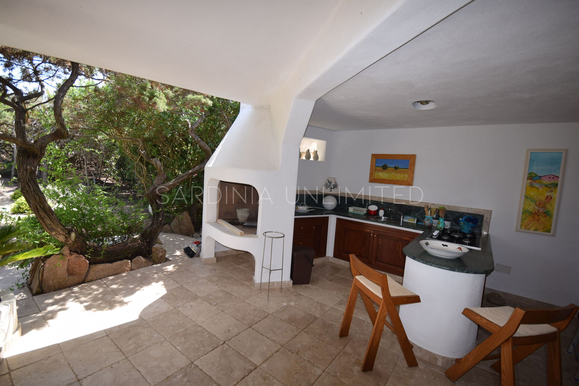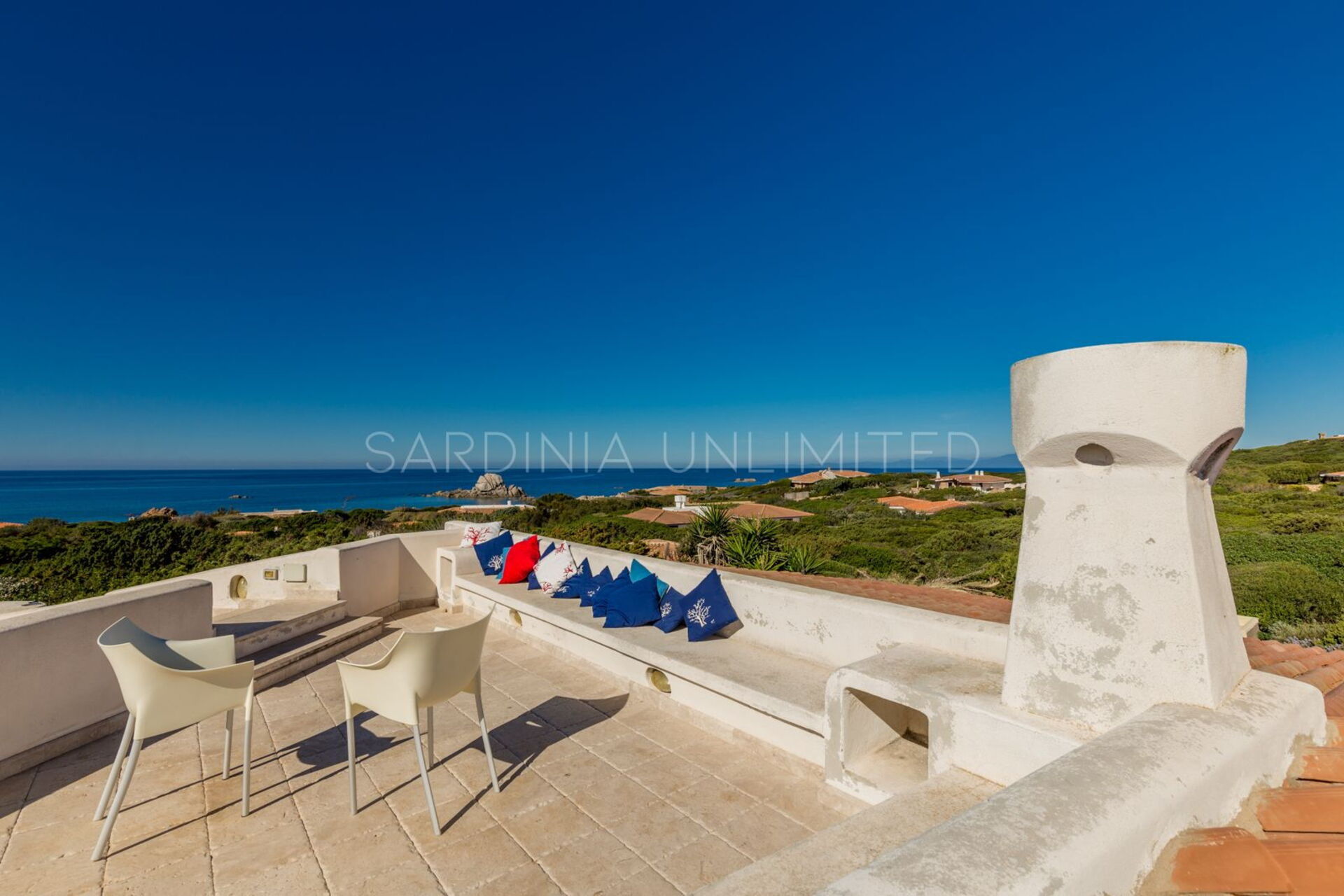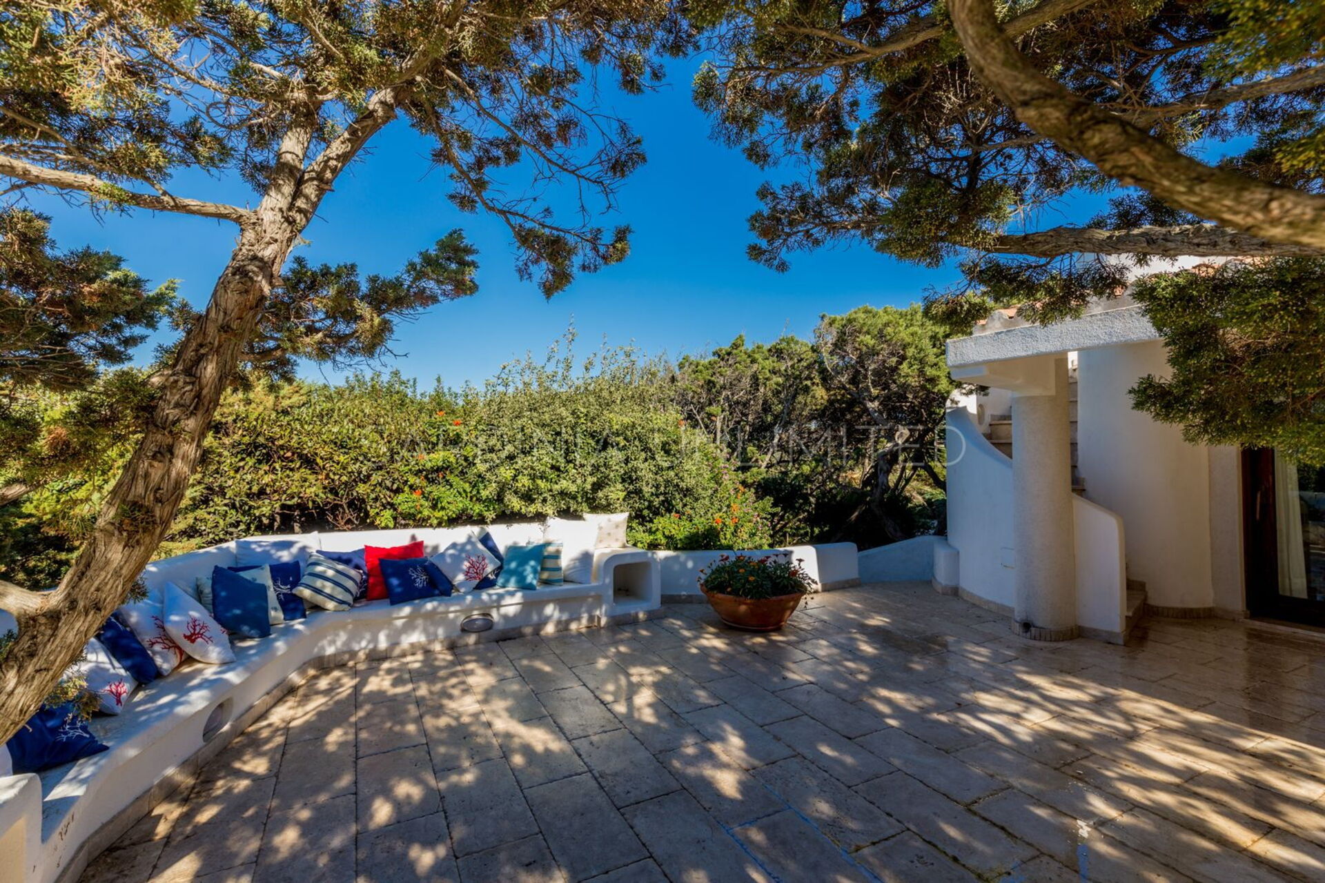 Cette villa représente le choix idéal pour vos vacances car elle bénéficie d'une magnifique vue sur la mer depuis chaque coin de la maison. En effet, à l'extérieur, la propriété dispose d'une spacieuse véranda avec de confortables canapés maçonnés ombragés par de grands arbres feuillus qui permettent de profiter de la fraîcheur des journées d'été. De là, on peut également accéder, par un escalier en colimaçon, à la terrasse solarium, l'endroit parfait pour un apéritif entre amis et pour admirer les sensations nuances du coucher de soleil. Les grands espaces extérieurs de la maison comprennent également un vaste patio situé à l'arrière et composé d'une cuisine d'angle intégrée en maçonnerie avec un îlot confortable attenant. L'ensemble est fini avec du bois précieux et du marbre de qualité, dont les couleurs sombres et profondes représentent la seule touche de contraste sur le blanc immaculé qui caractérise toute la propriété.