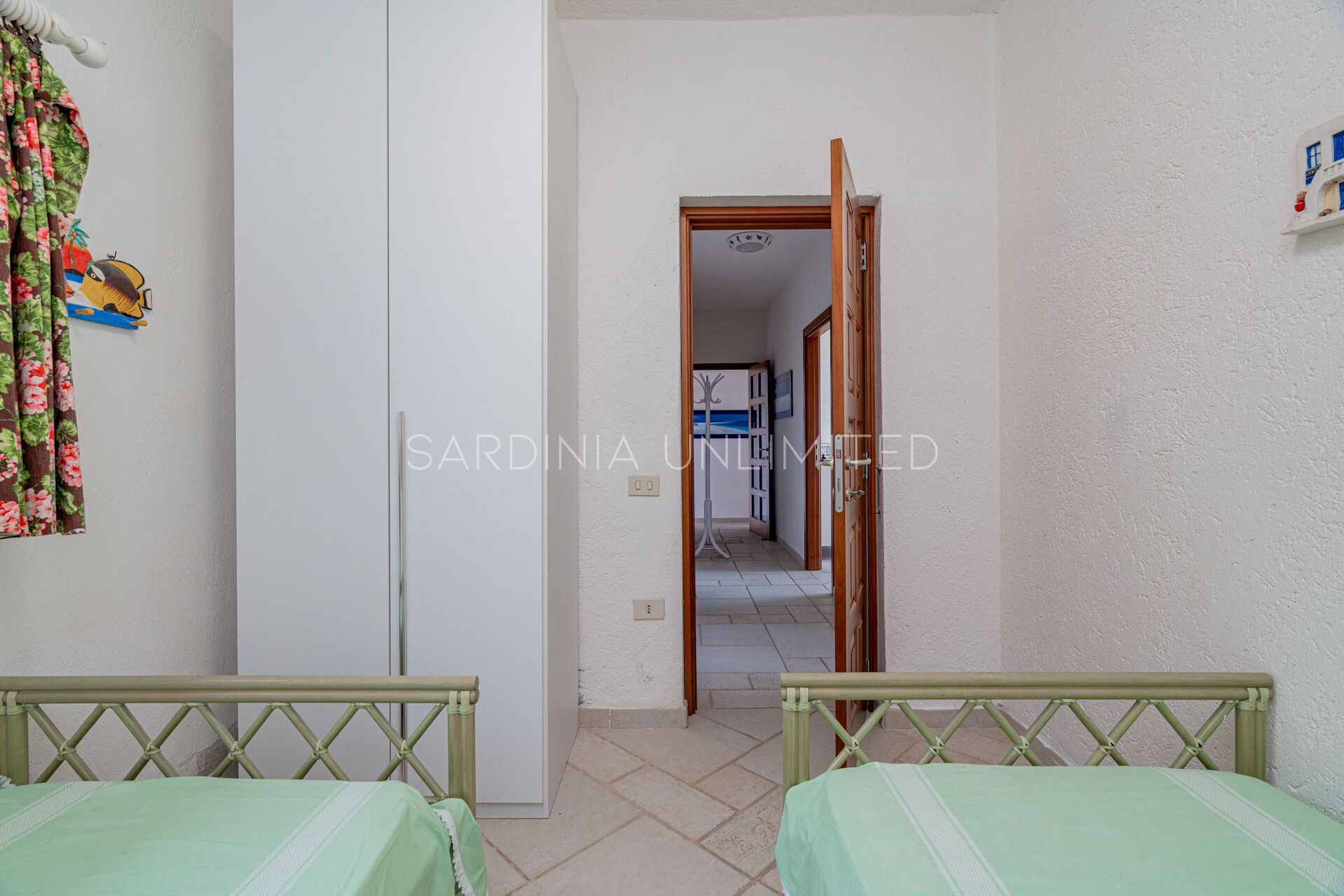 This beachfront villa in Sardinia has a main building with 3 bedrooms and 3 bathrooms, a separate kitchen, a spacious living room and a furnished veranda. The villa also has an annexe with a bedroom and a bathroom. The villa is surrounded by a large garden of 2560 sqm, two covered parking spaces and direct beach access.