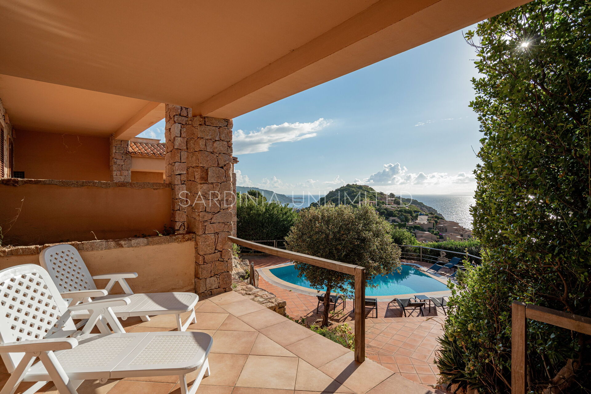 Le camere da letto si affacciano sulla grande e meravigliosa piscina dotata di sedie a sdraio per un relax unico.