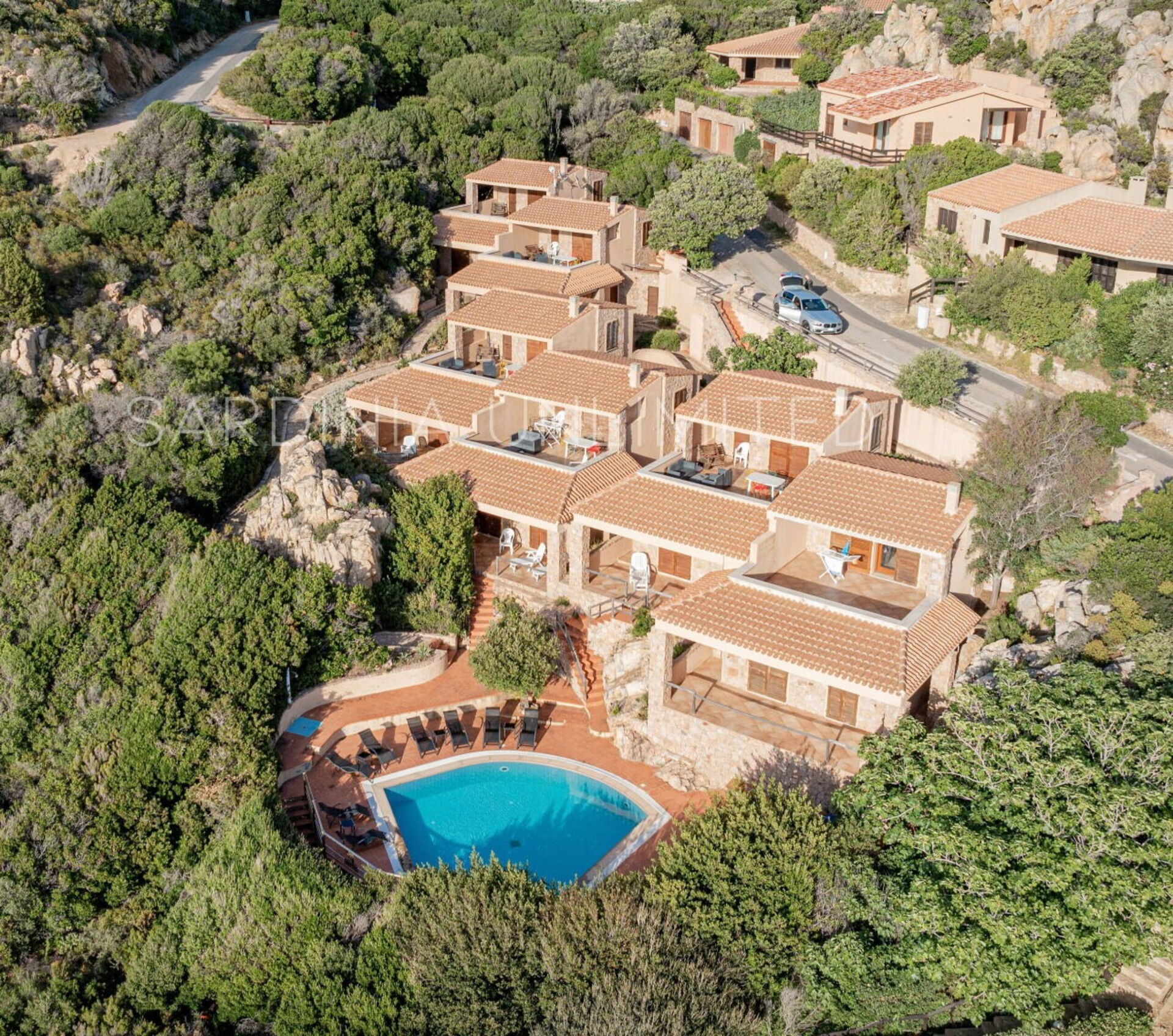 Questa casa fa parte di un complesso di sei ville costruite in tipico stile sardo, composto da altre 5 case vacanze in affitto con le quali Casa Rosa Blu condivide la piscina.
