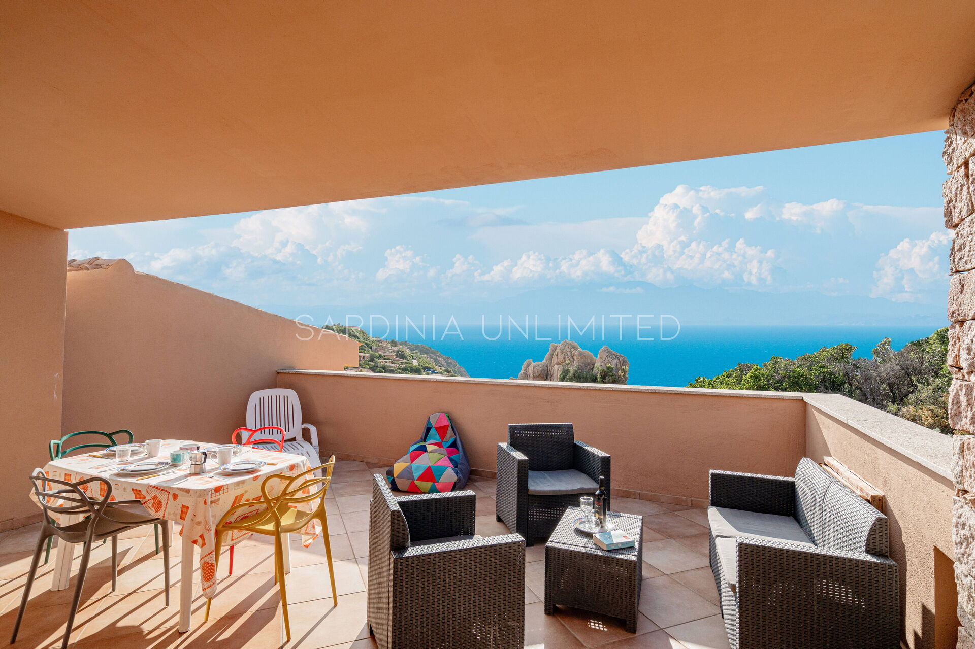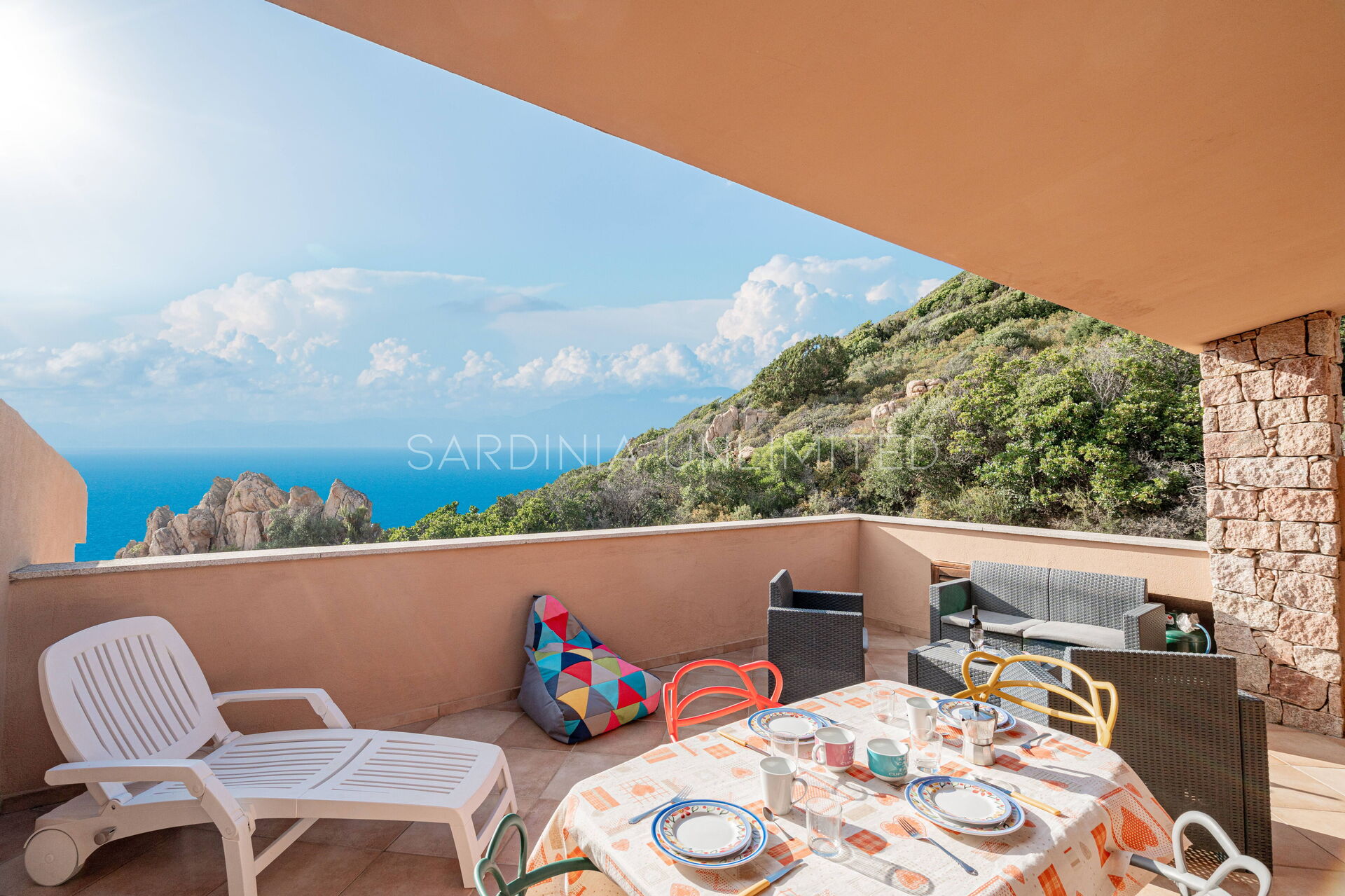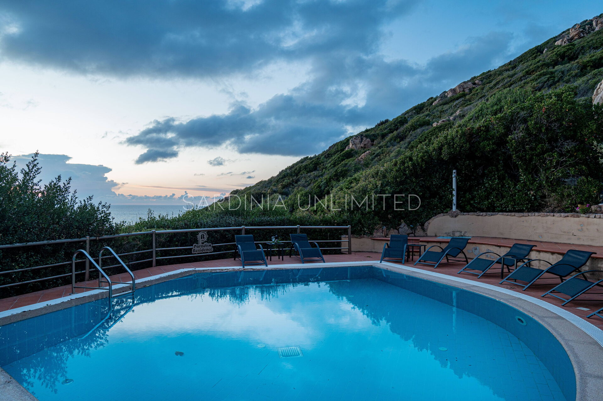 Questa casa vacanza in Sardegna fa parte di sei appartamenti con piscina condivisa costruite in tipico stile sardo, situate in posizione unica sul mare.