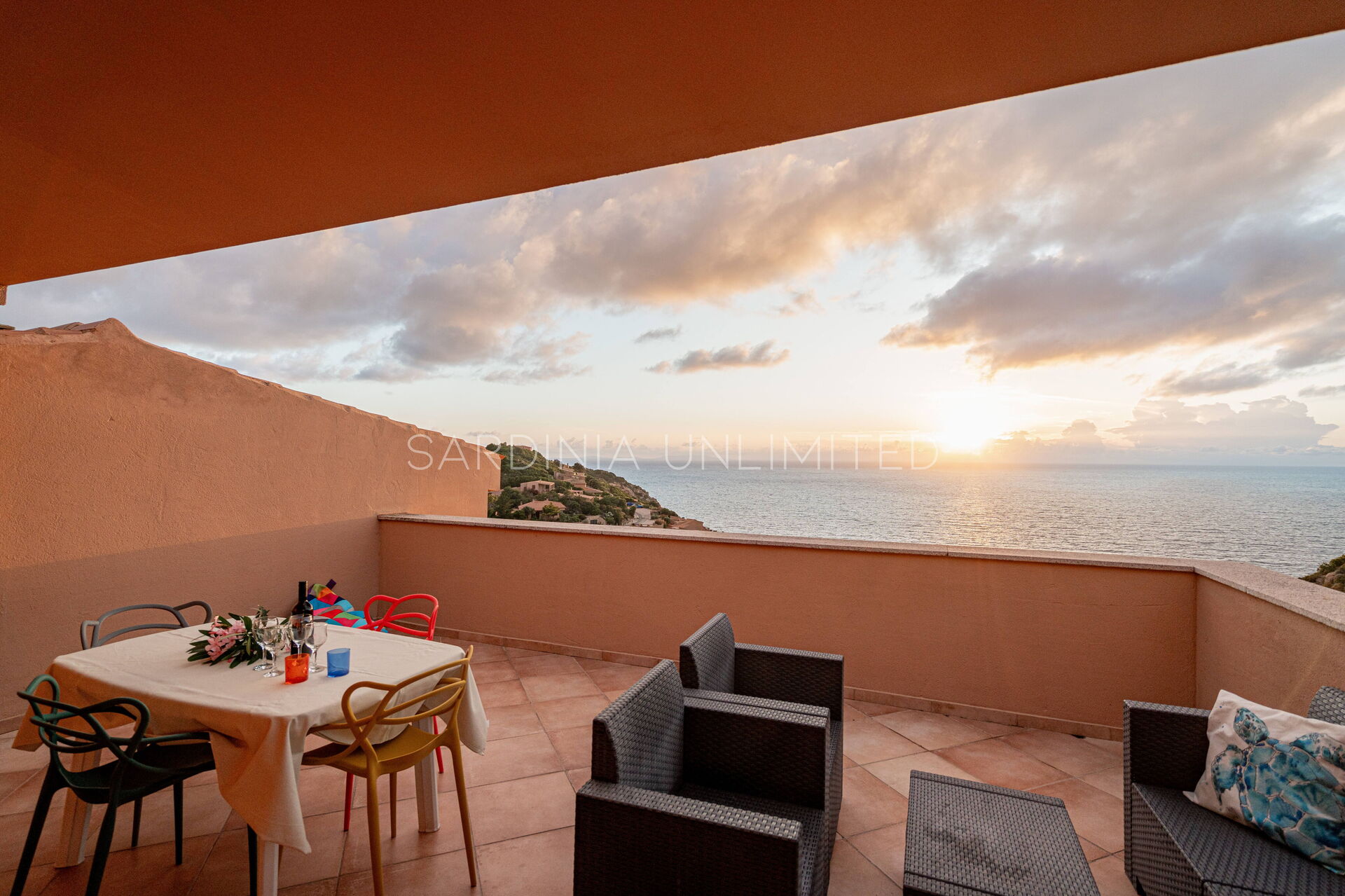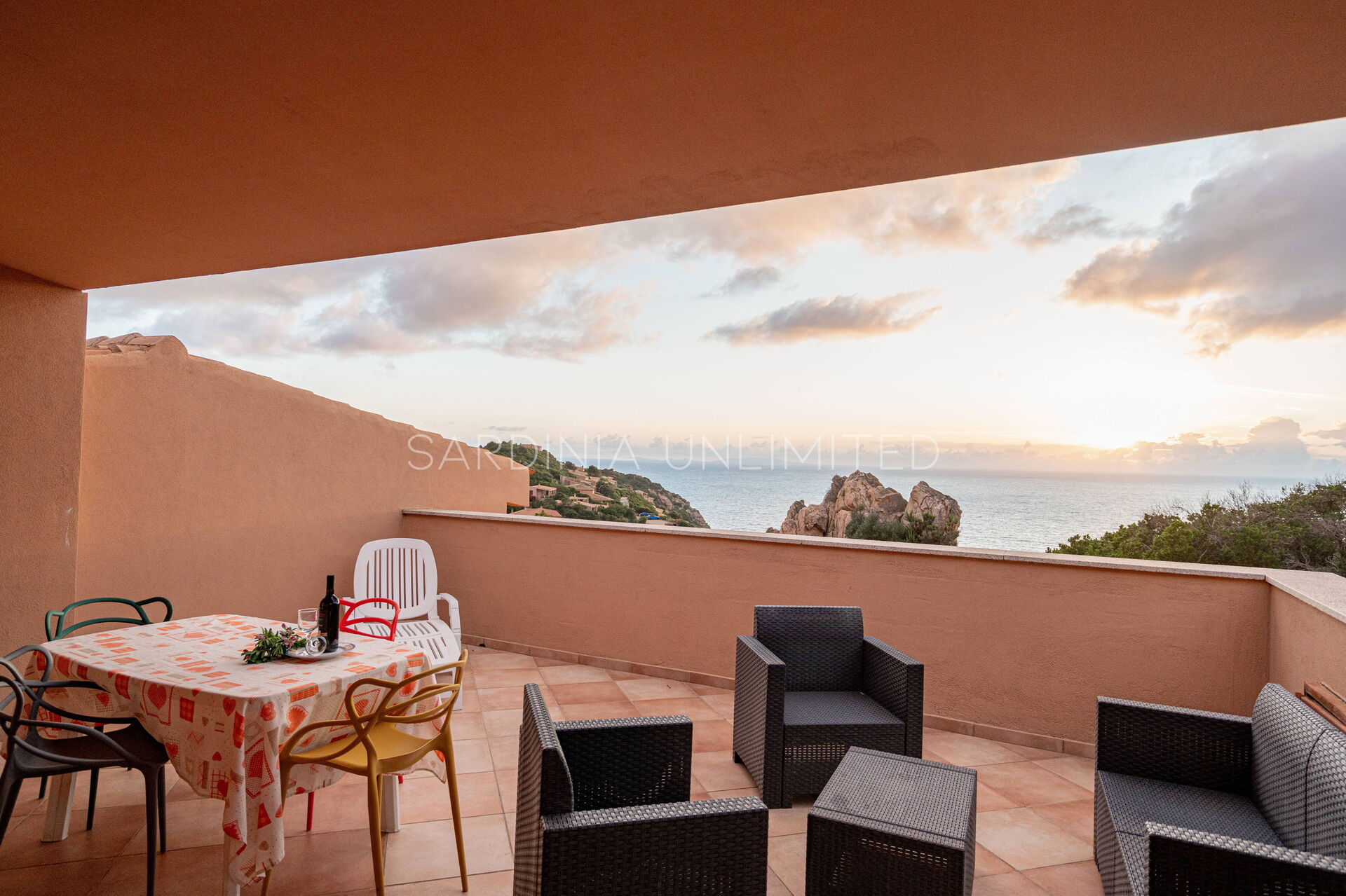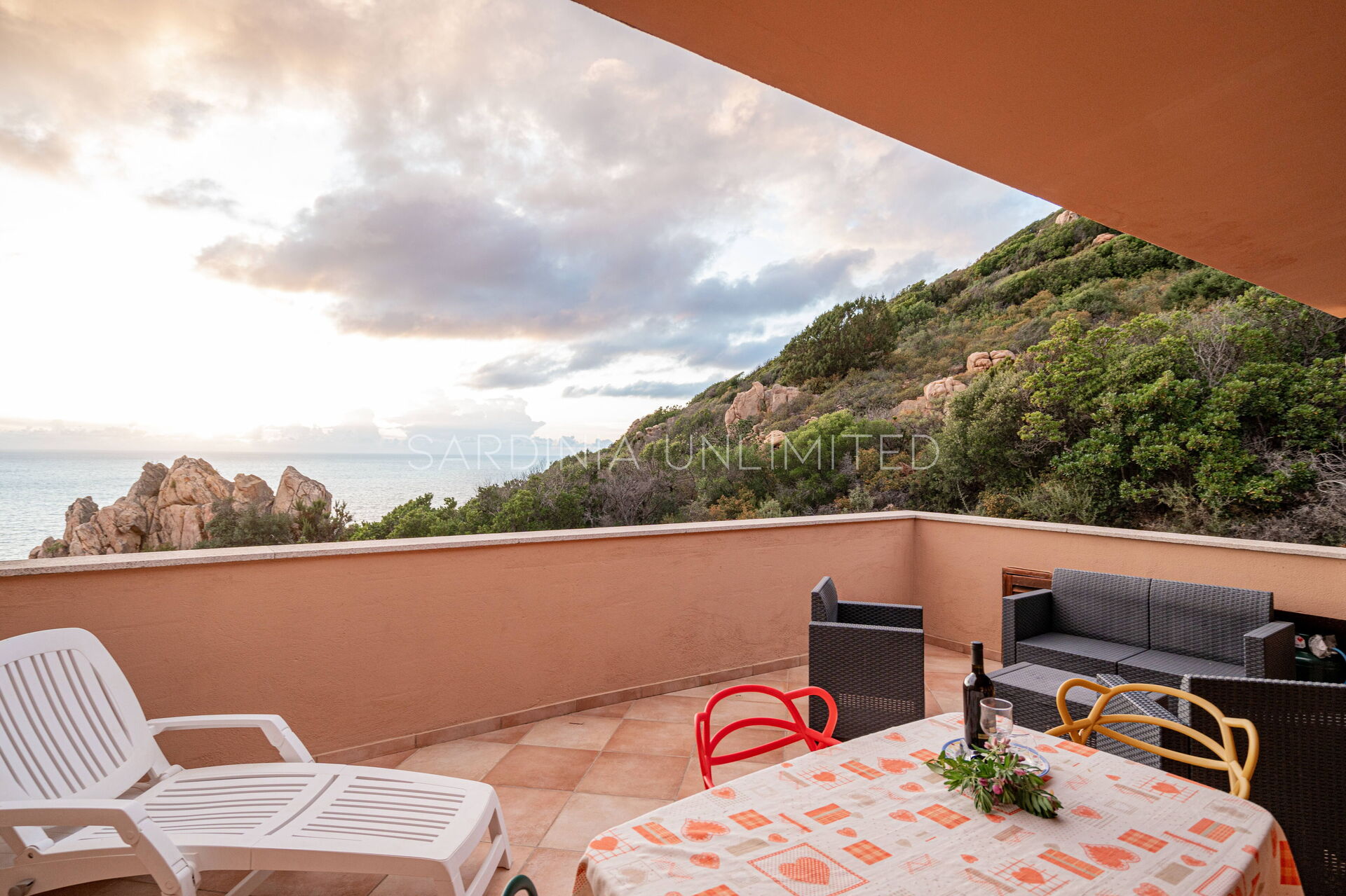 Questa casa vacanza in Sardegna fa parte di sei appartamenti con piscina condivisa costruite in tipico stile sardo, situate in posizione unica sul mare.