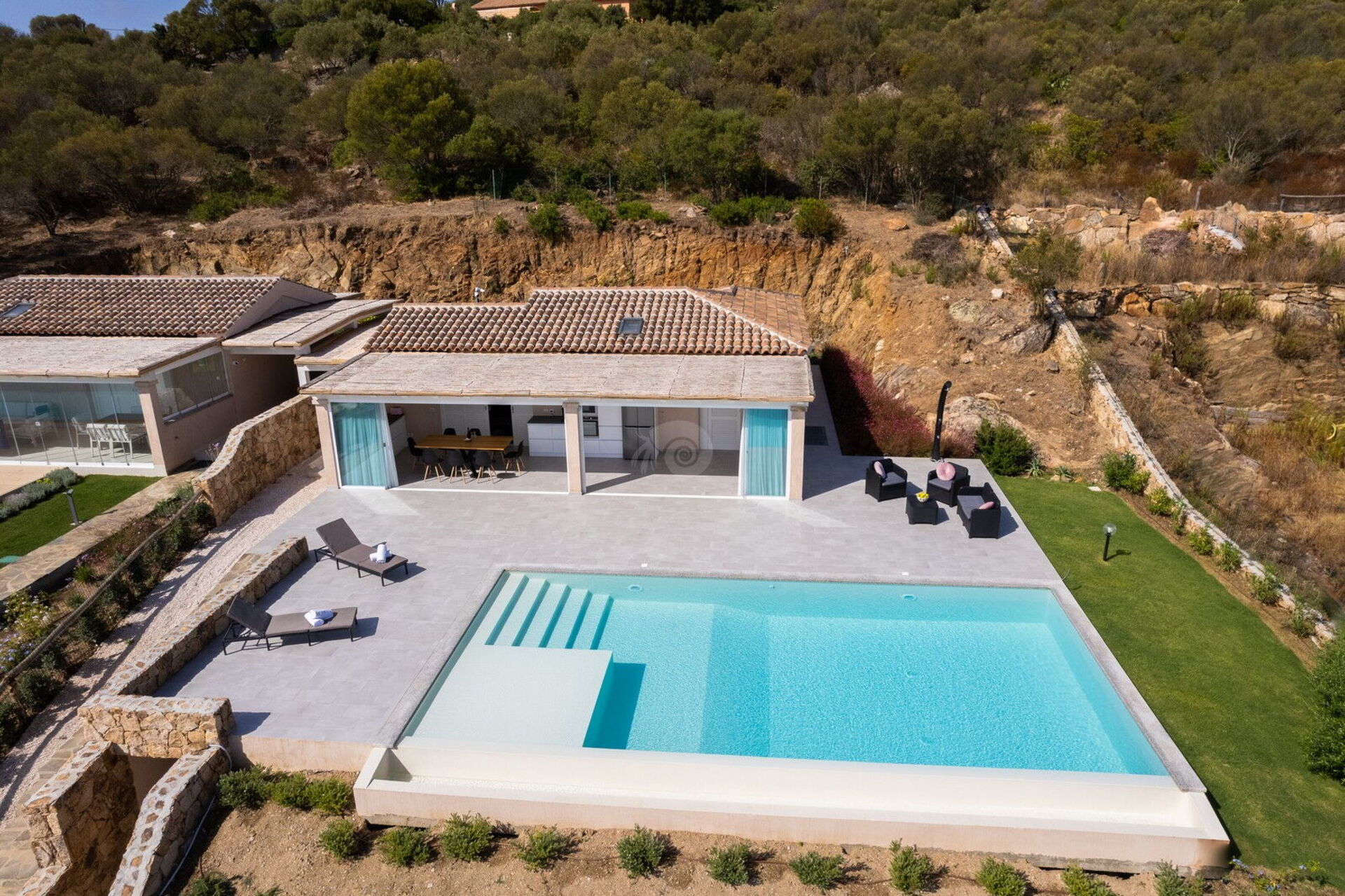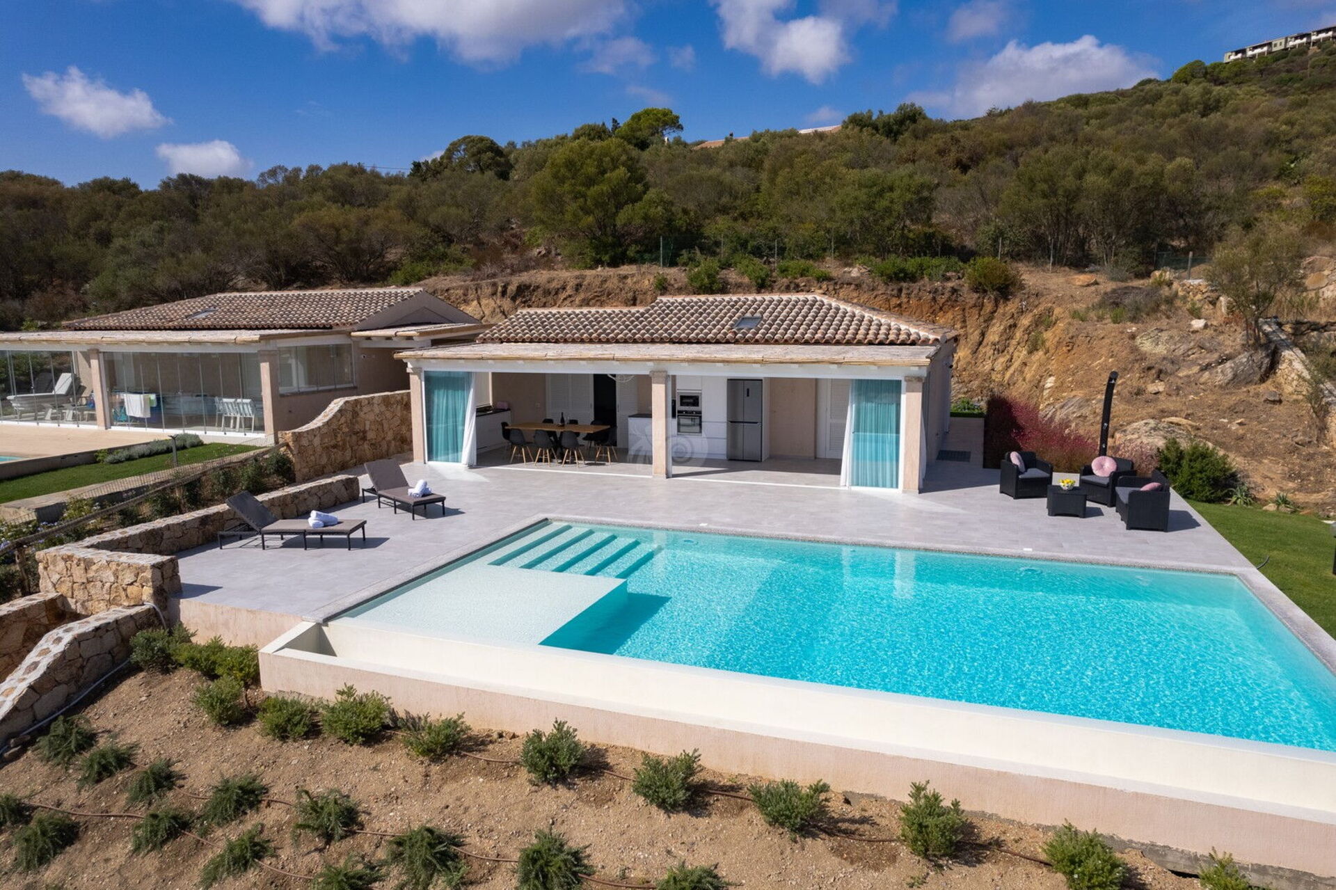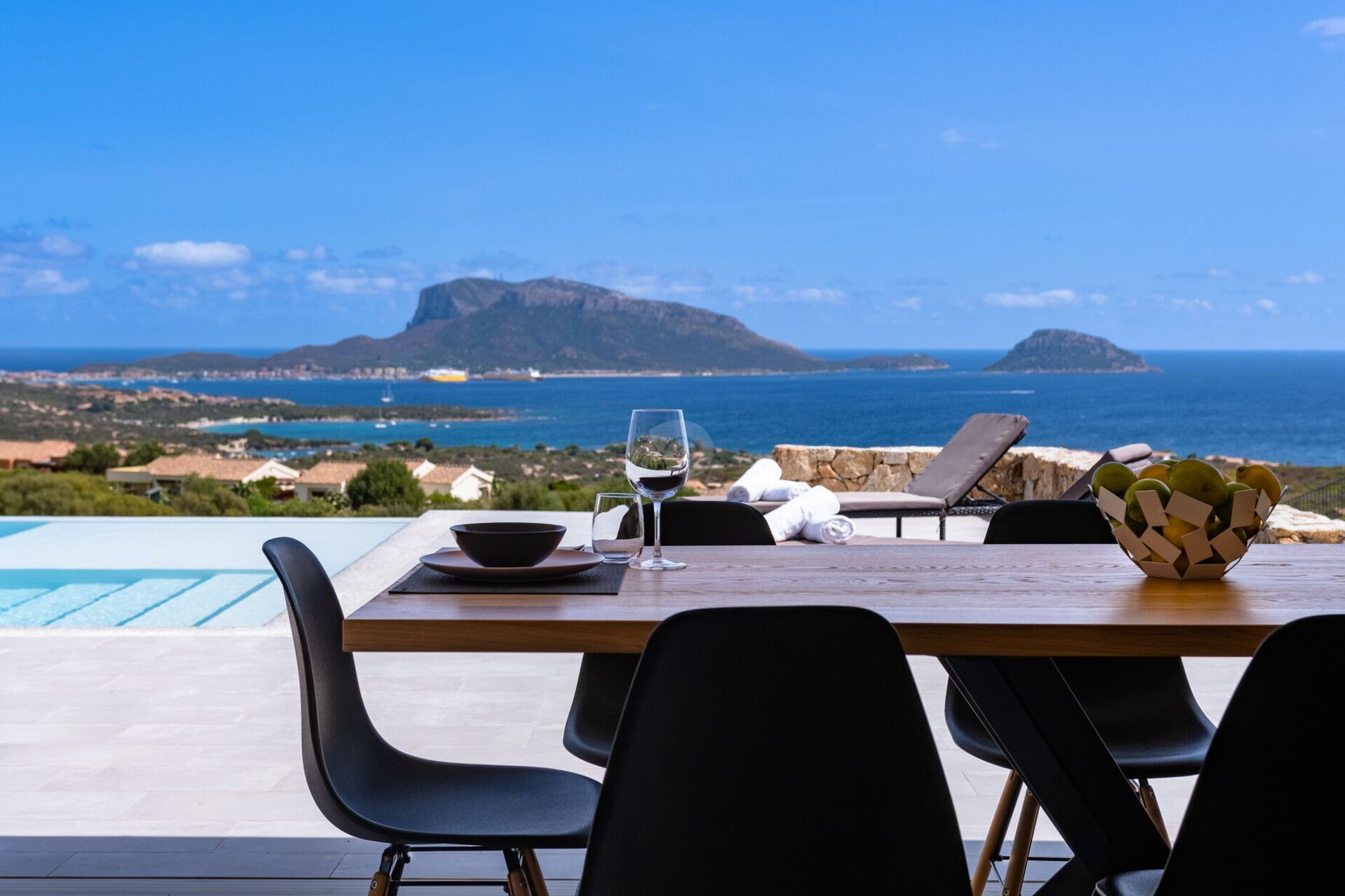 Without a doubt the most beautiful Villa I have seen so far. Perfect for 5 or 6 people, we were 4 but it is very spacious. Being able to wake up, open the door and jump into the pool looking at the beautiful view in front of the island of Tavolara is something I have always wanted.