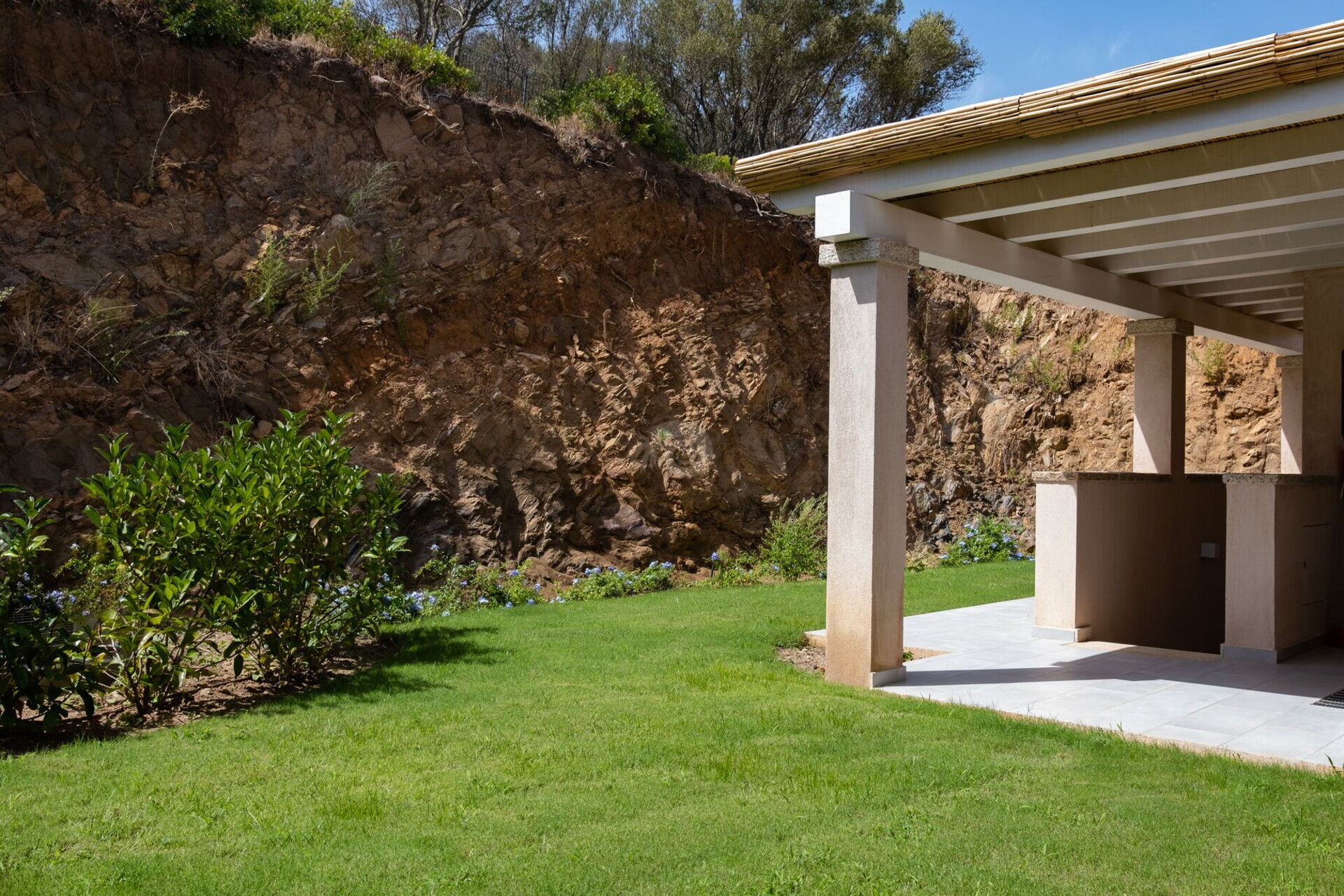 Ciò che caratterizza Villa Kalli Bloom è però il connubio perfetto tra la tranquillità, la panoramica vista mozzafiato e i colori tipici della natura sarda che caratterizzano il territorio. Per godere di questo incanto naturale c’è una comoda area lounge adiacente alla casa che permette di ammirare il binomio cromatico dell’indaco del mare dal quale emerge imponente la sagoma del promontorio di Capo Figari.