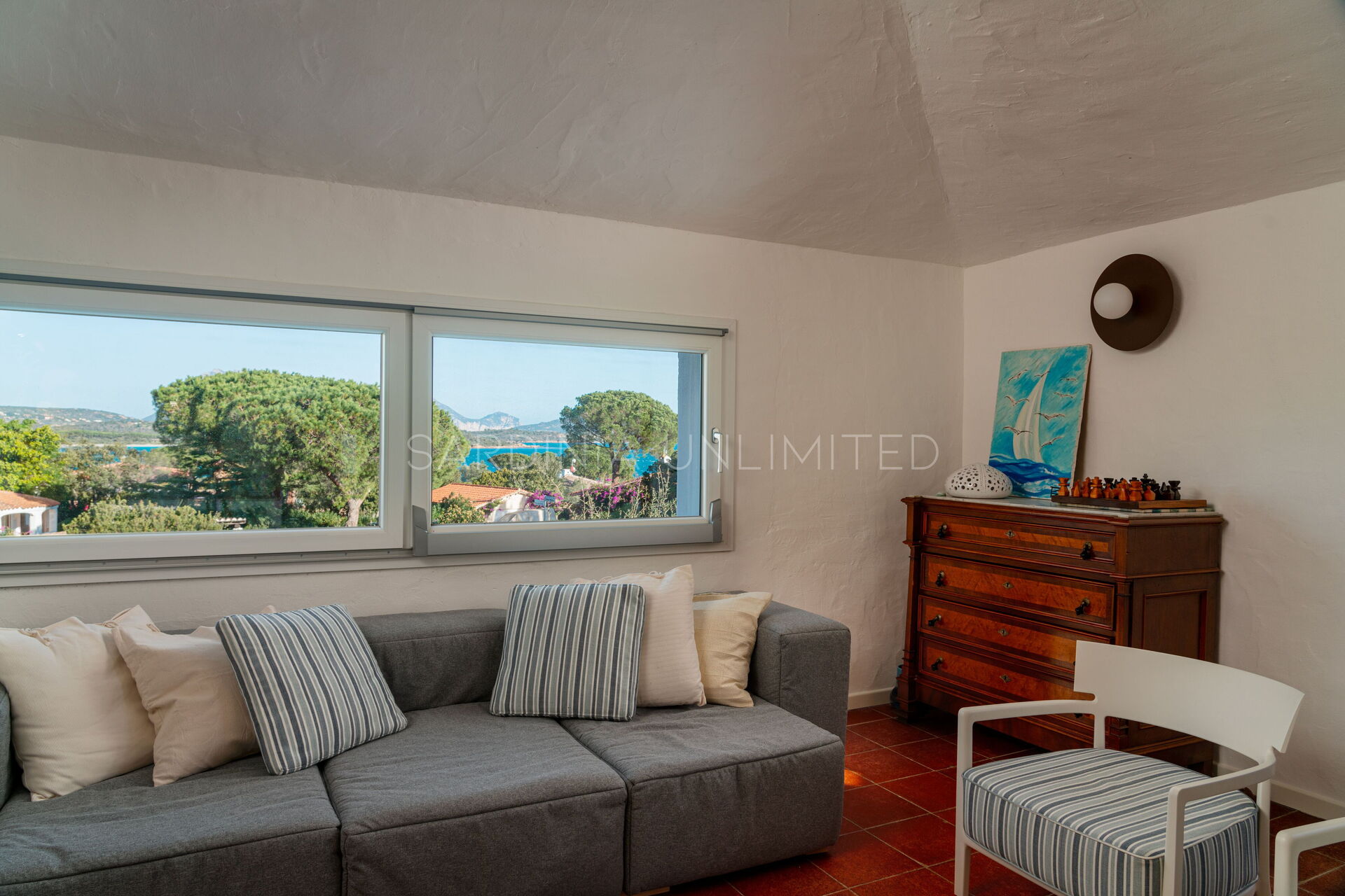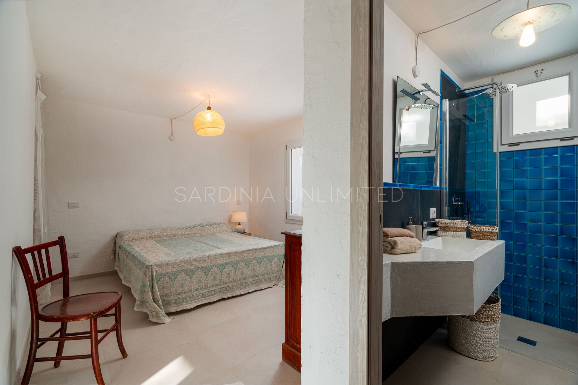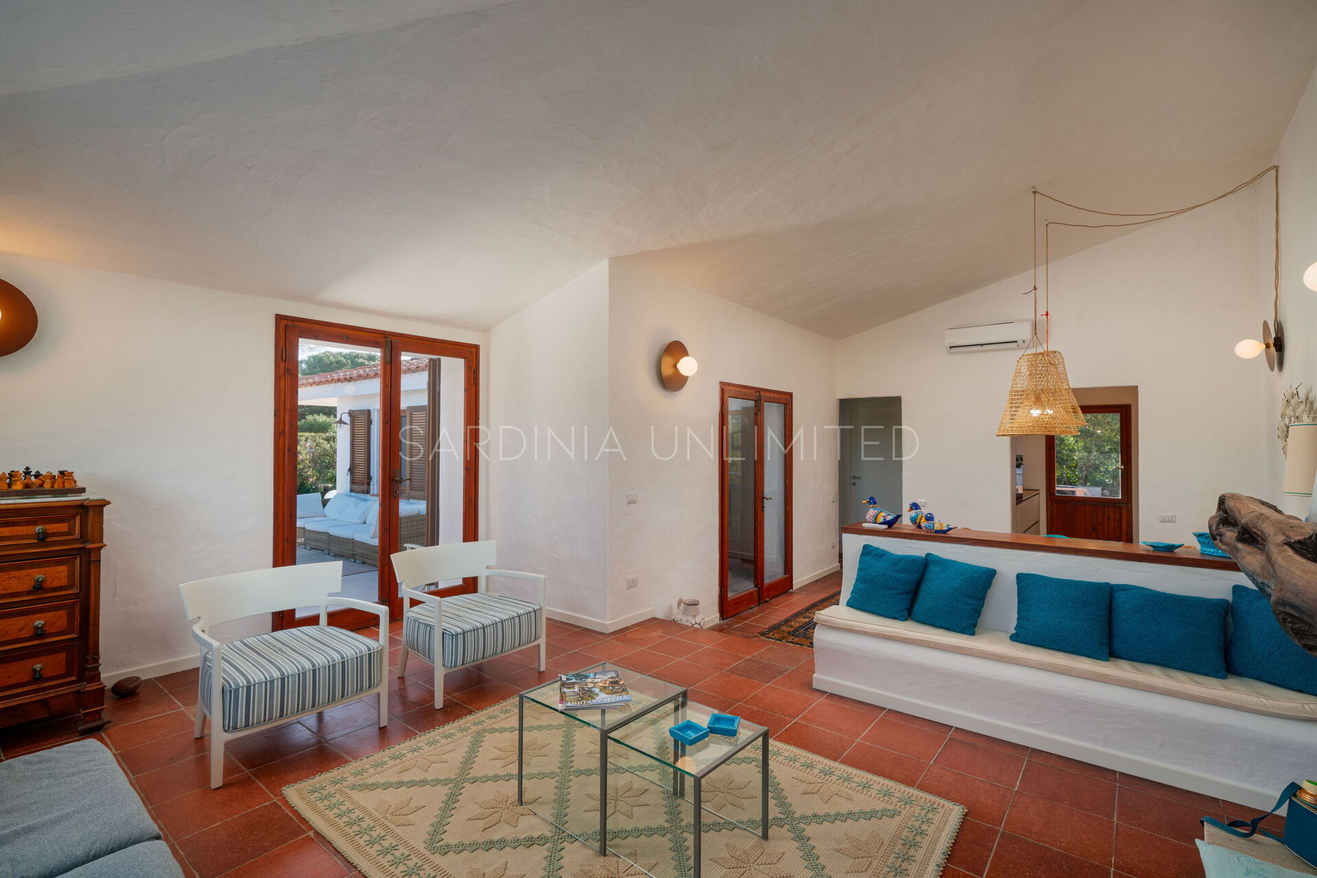 Al suo interno, inoltre, la villa ospita stanze arricchite da elementi che richiamano il tipico stile gallurese e che rimandano ai colori del mare turchese di questa costa.