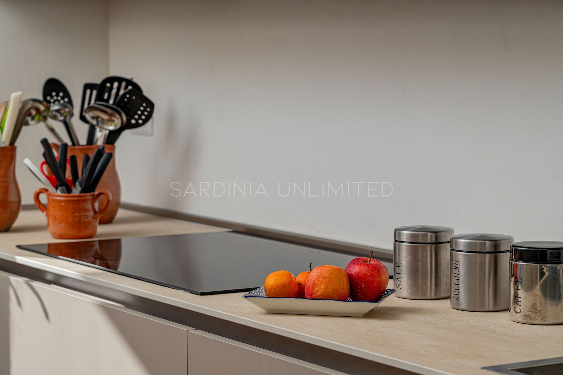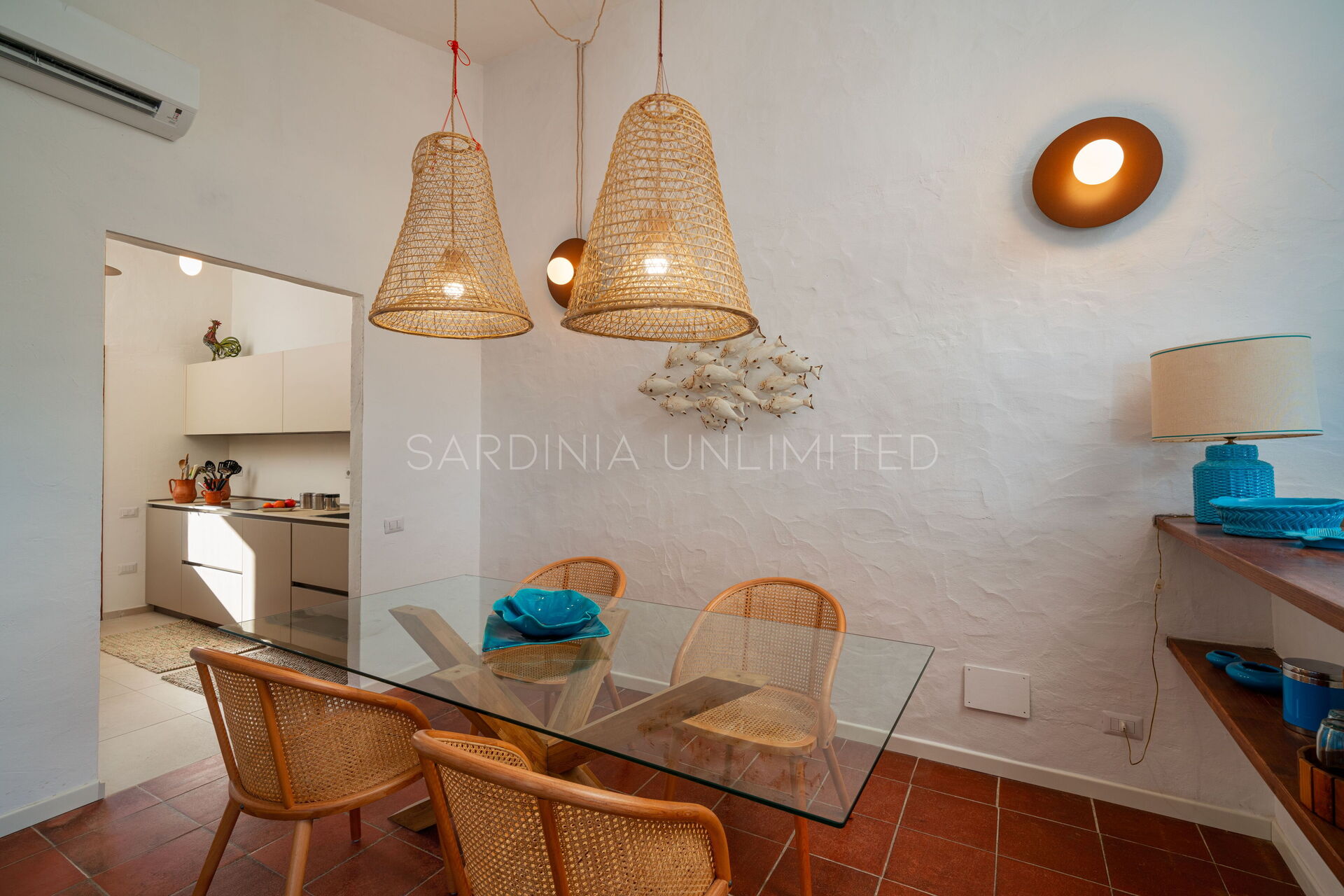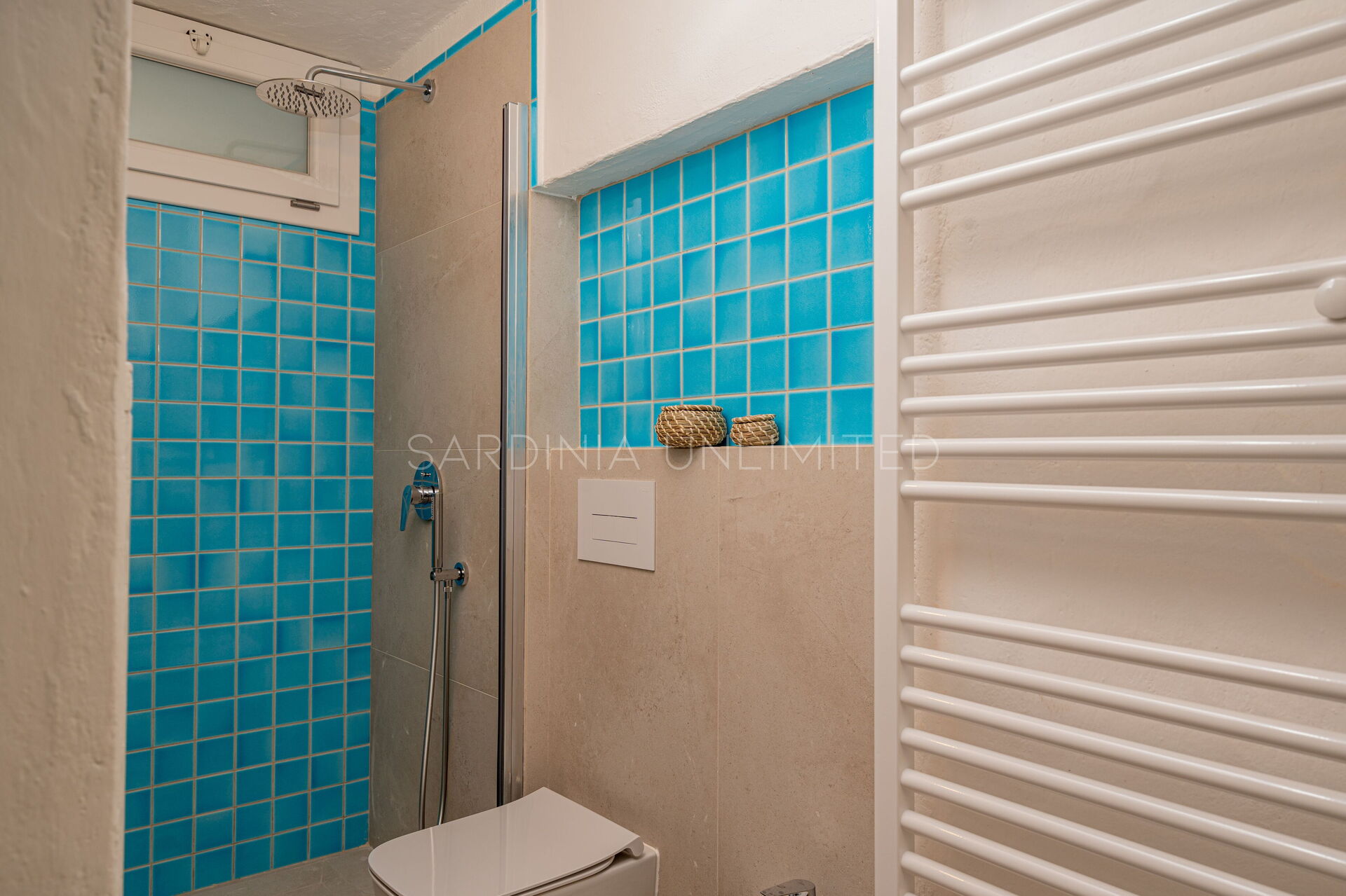 Al suo interno, inoltre, la villa ospita stanze arricchite da elementi che richiamano il tipico stile gallurese e che rimandano ai colori del mare turchese di questa costa.