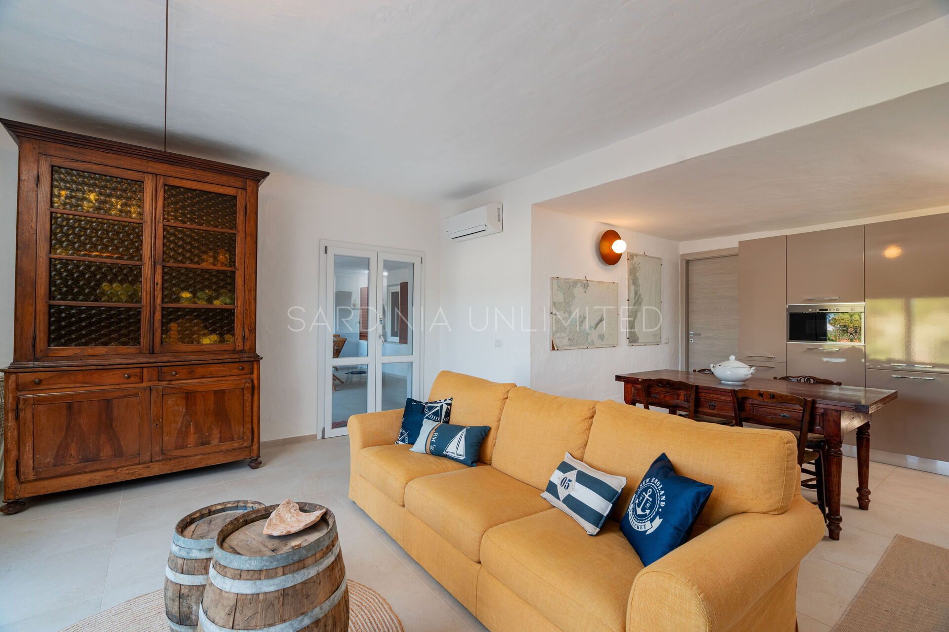 Questa villa a San Teodoro, organizzata su due livelli, collegati esternamente, dispone di due punti di accesso e di ambienti completamente autonomi.
