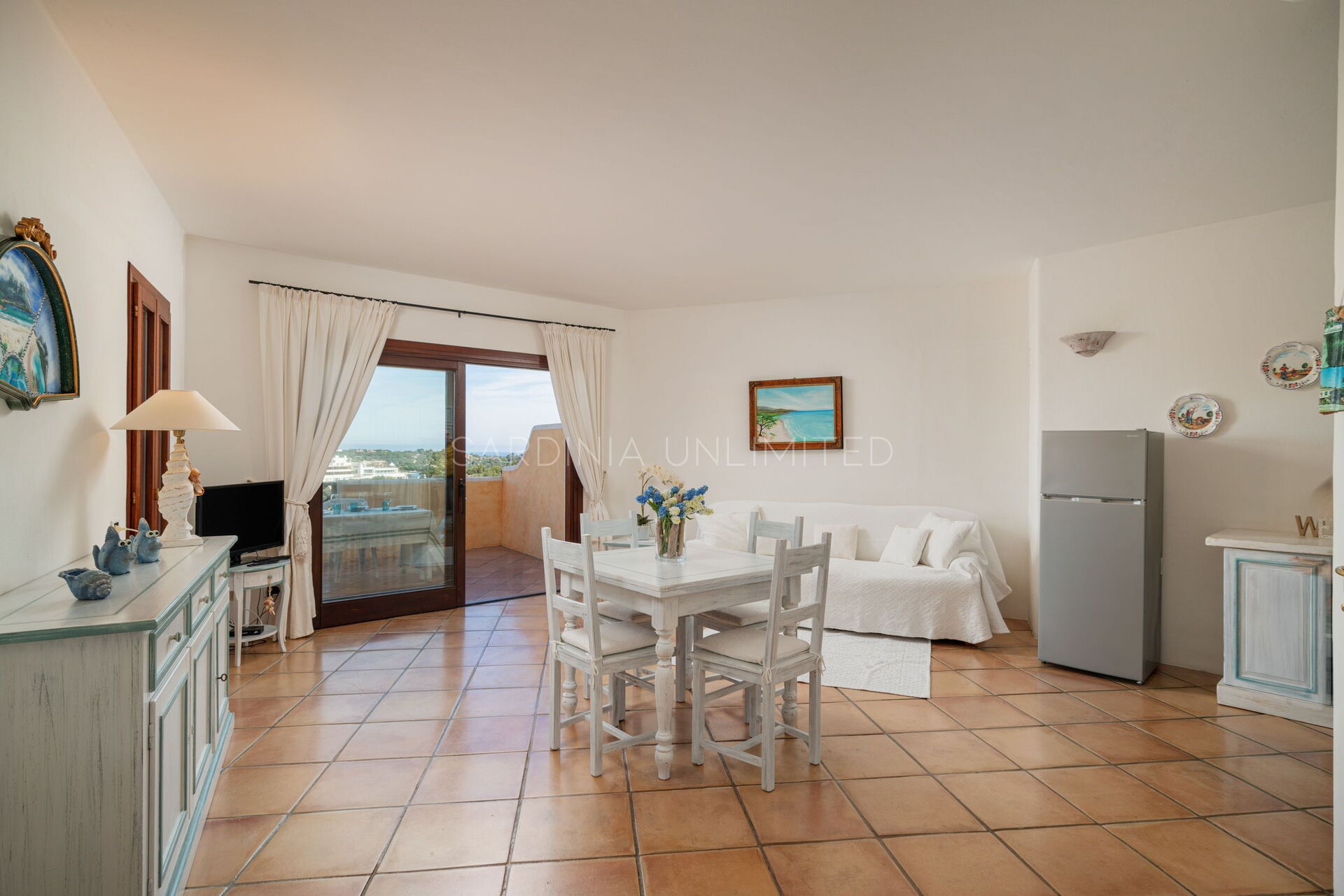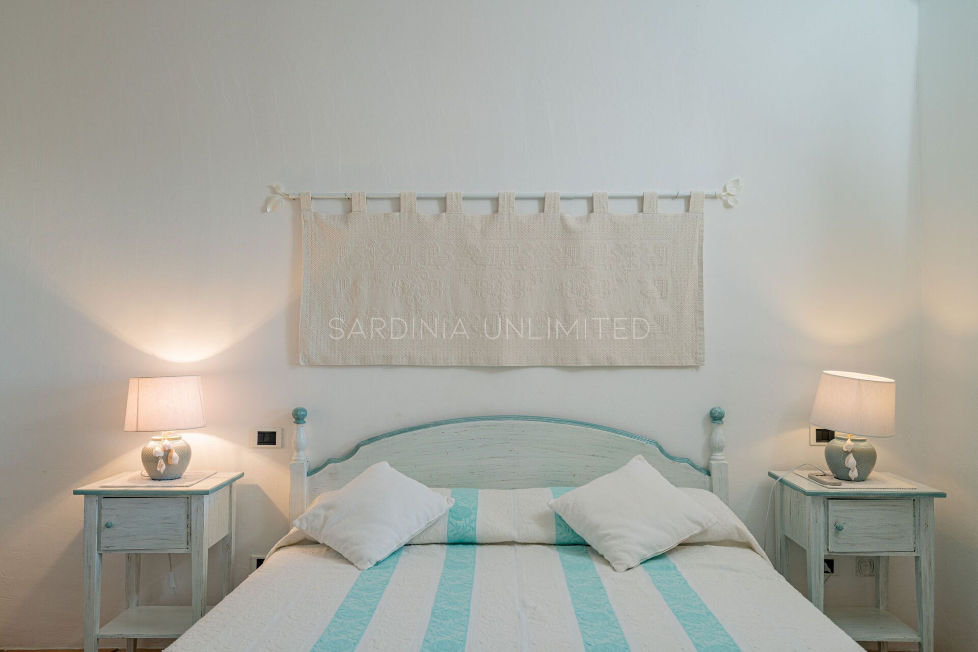 Villetta L’Amore del Marinaio è una comoda villetta in affitto in Sardegna pensata per ospitare fino a 3 persone e arredata interamente nello stile tipico sardo. Ad accogliere l’ospite uno spazioso e luminosissimo open space composto da una cucina completamente accessoriata e una zona living con divano e tv. Da qui, una grande porta finestra permette di accedere alla terrazza. Sulla sinistra invece, si trova un’ampia e comoda camera padronale anch’essa arricchita con preziosi orpelli sardi che vanno dai minuziosi ricami del letto alle fini intarsiature dei mobili in legno pregiato. Anche questa stanza si affaccia sulla terrazza, garantendole una vista panoramica.