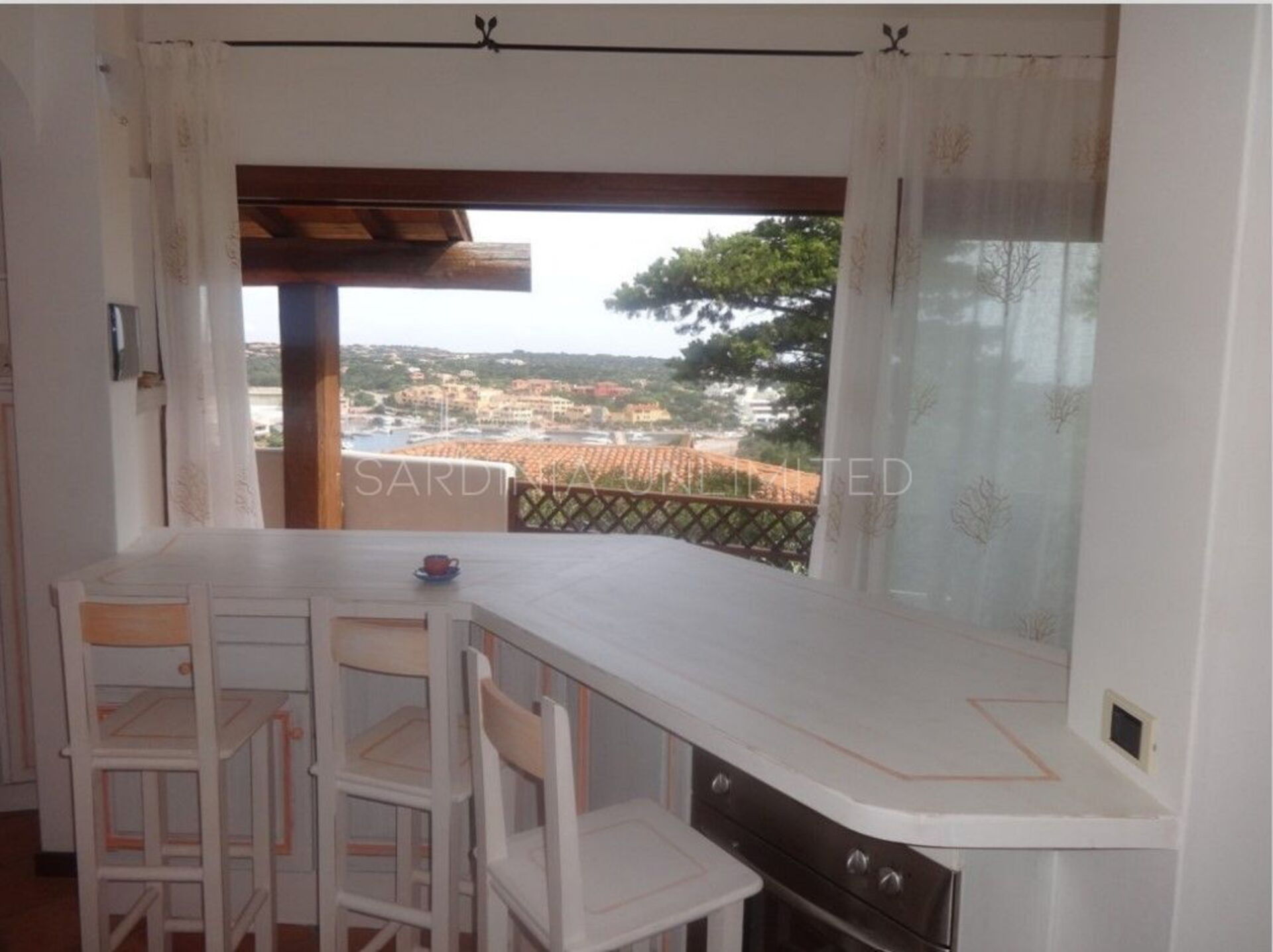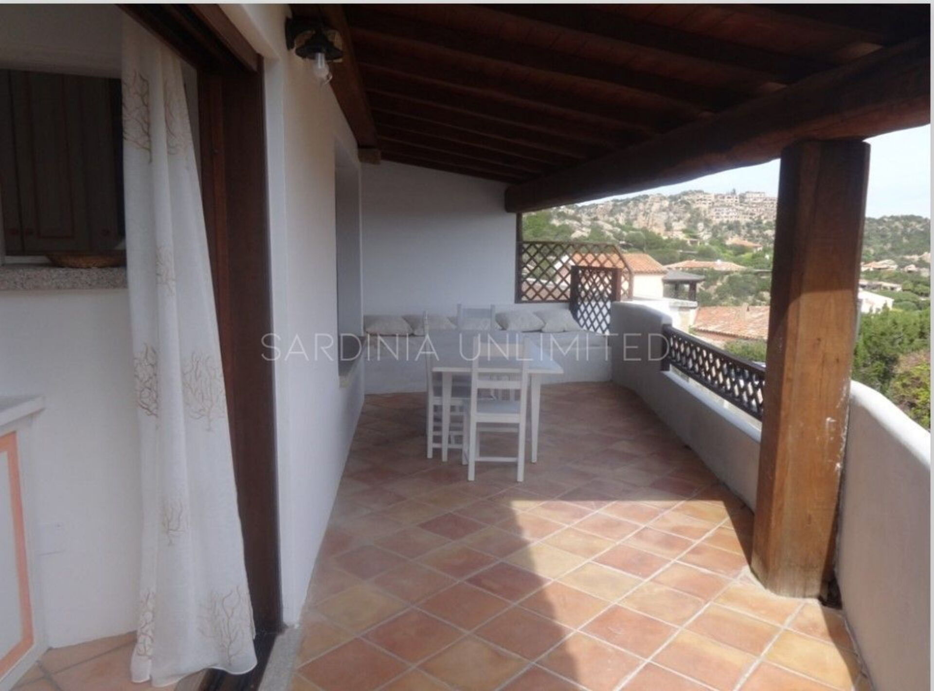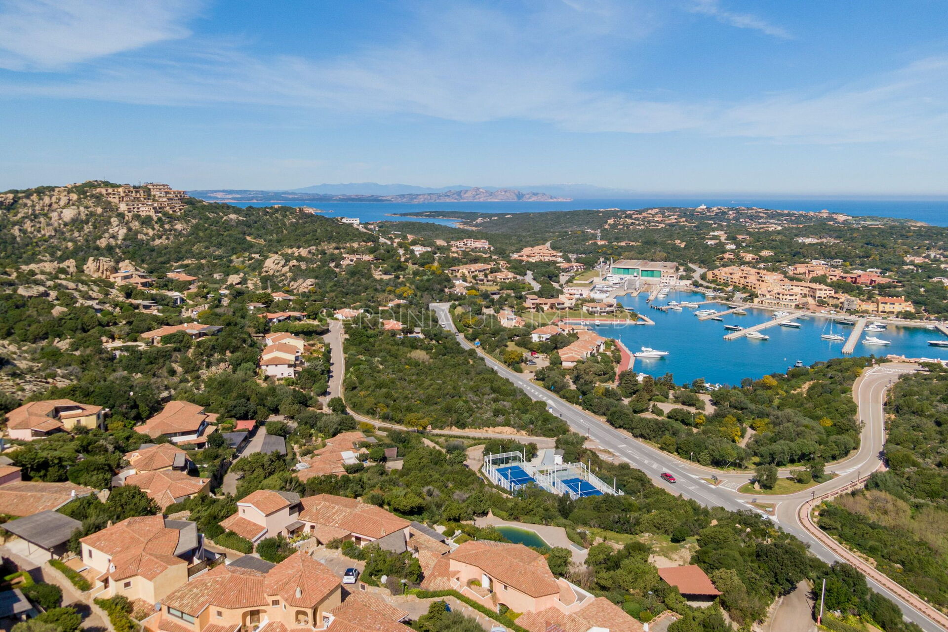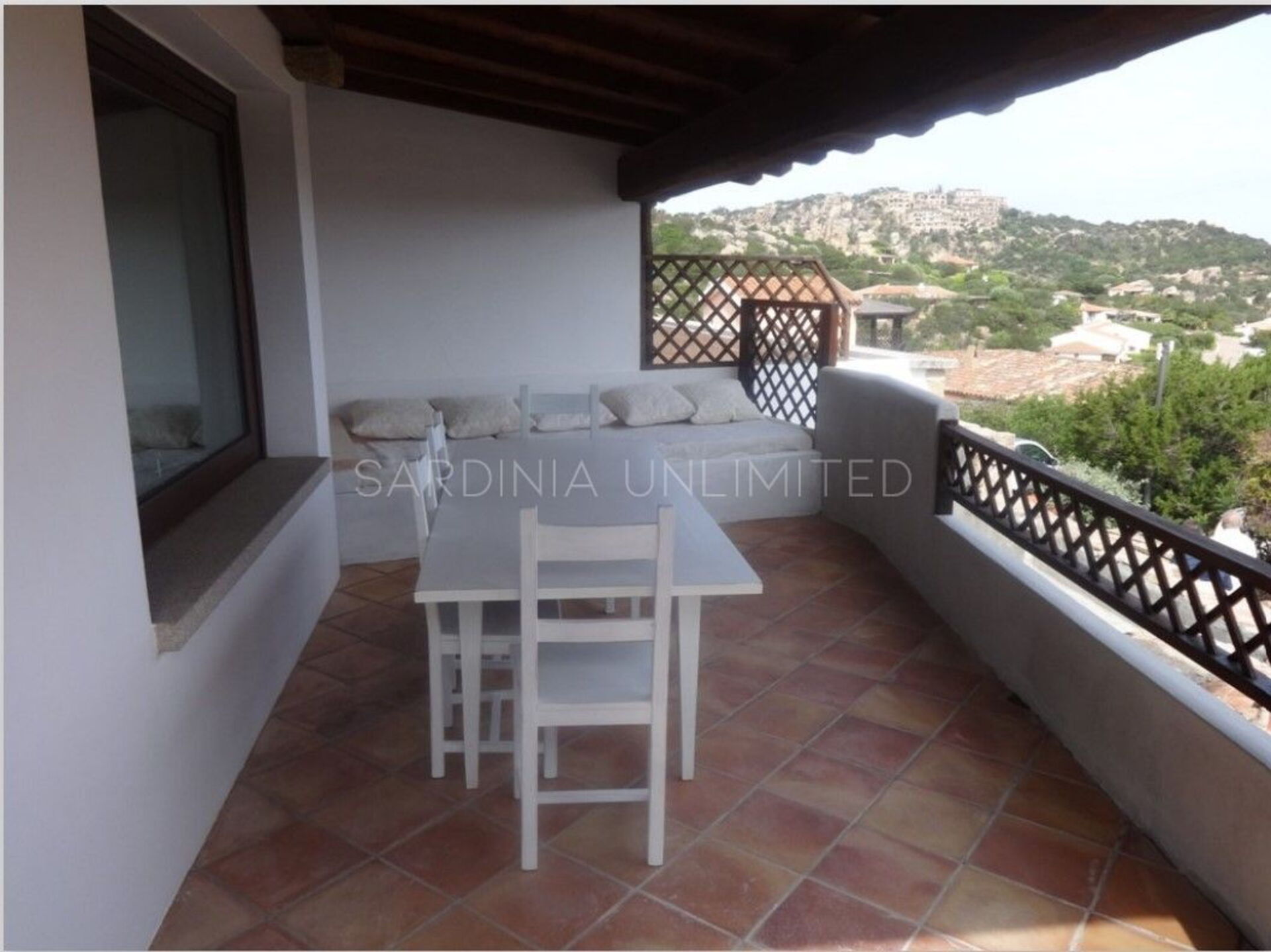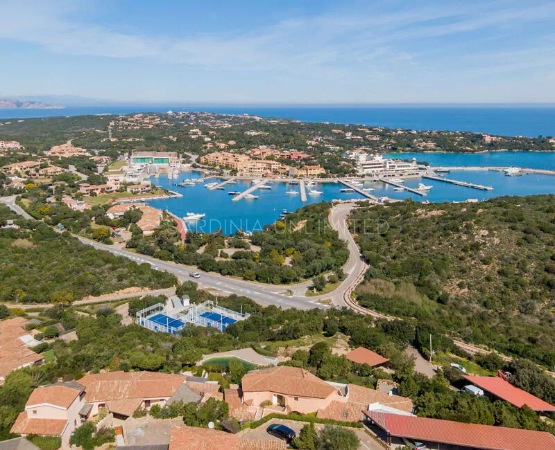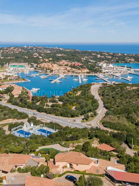 La terrazza panoramica si affaccia direttamente sul porto di Porto Cervo ed è arredata con un comodo tavolo per godersi i pasti all’aperto e di un divano a muro per poter passare piacevoli momenti in compagnia. Oltre al panorama mozzafiato, il complesso residenziale dispone di una piscina condominiale e di un campo da padel.