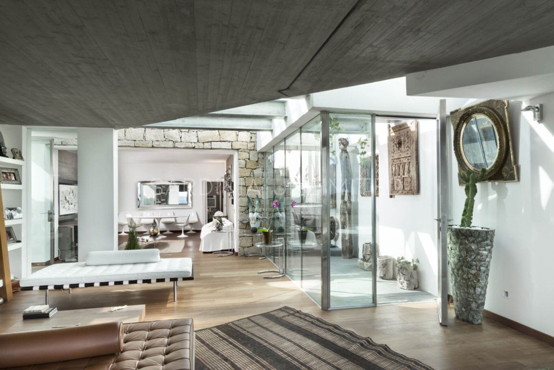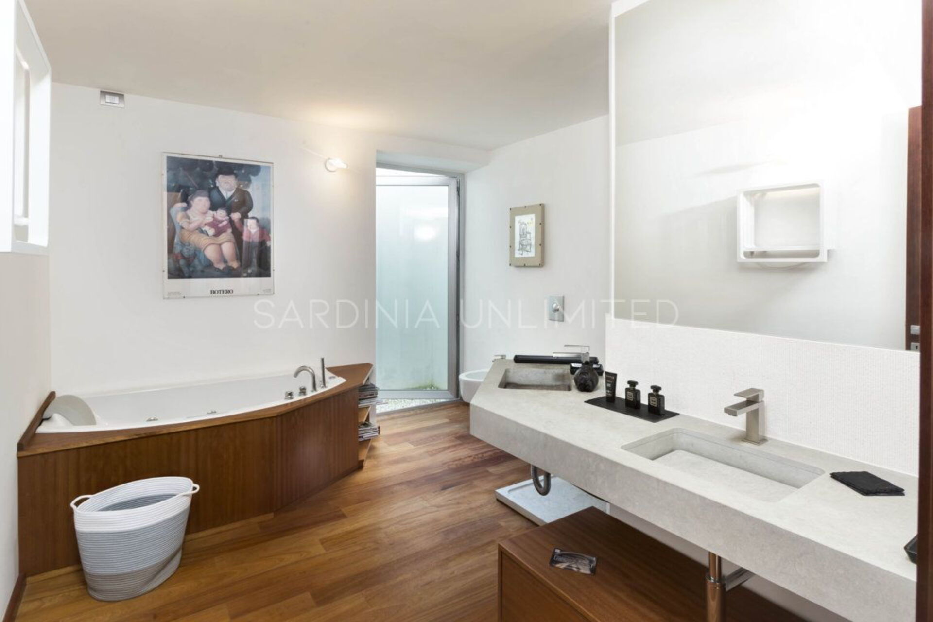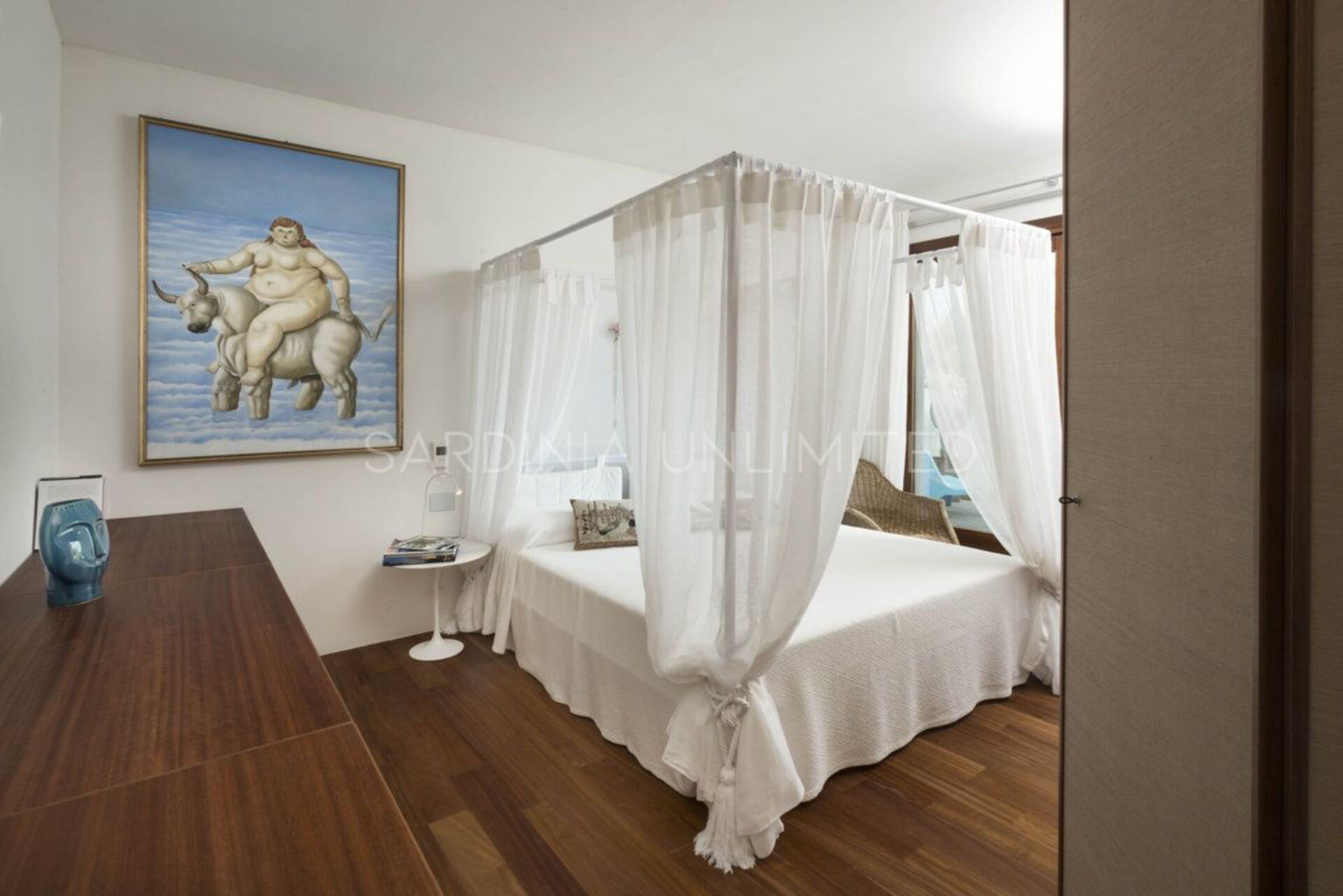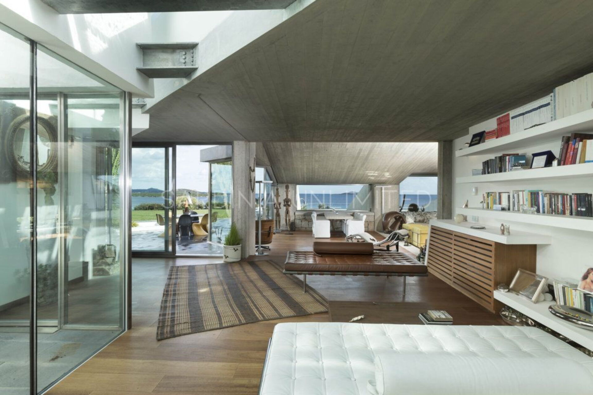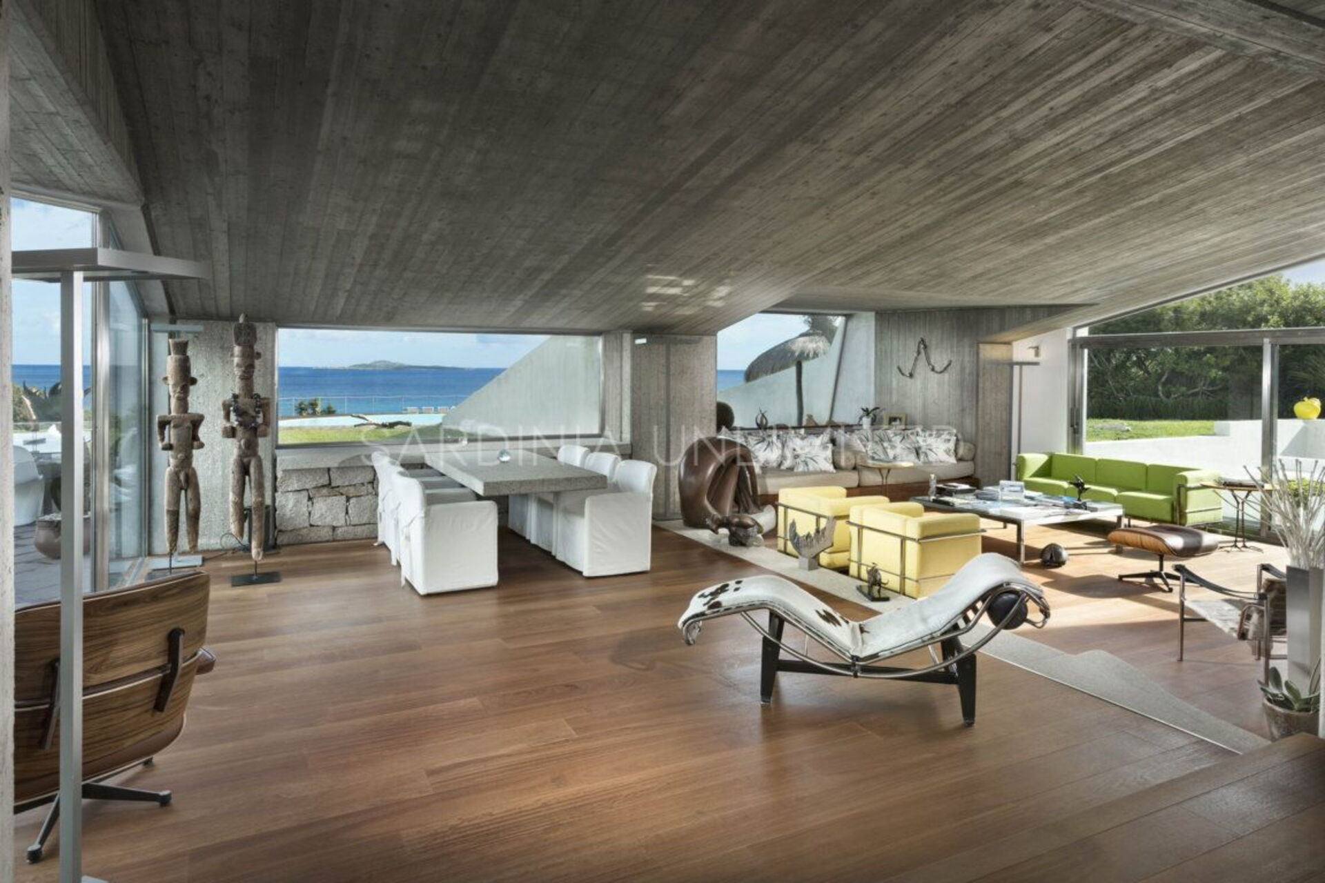 L'interno di questa villa vi sorprenderà: imponenti e singolari sculture di pregio si stagliano sullo sfondo turchese del mare che è il grande protagonista di questa proprietà. Infatti le mura esterne della villa sono interamente in vetro e permettono di godere di una vista mozzafiato. La villa è tutta su un piano, con un ampio soggiorno e 4 camere da letto con bagno en suite e 3 camere da letto con 3 bagni. La Villa dispone di una cucina completamente attrezzata e una zona pranzo collocata in uno spazioso e luminoso soggiorno open space.