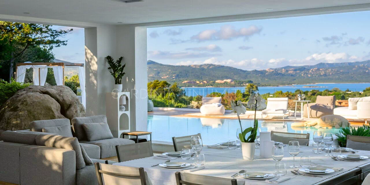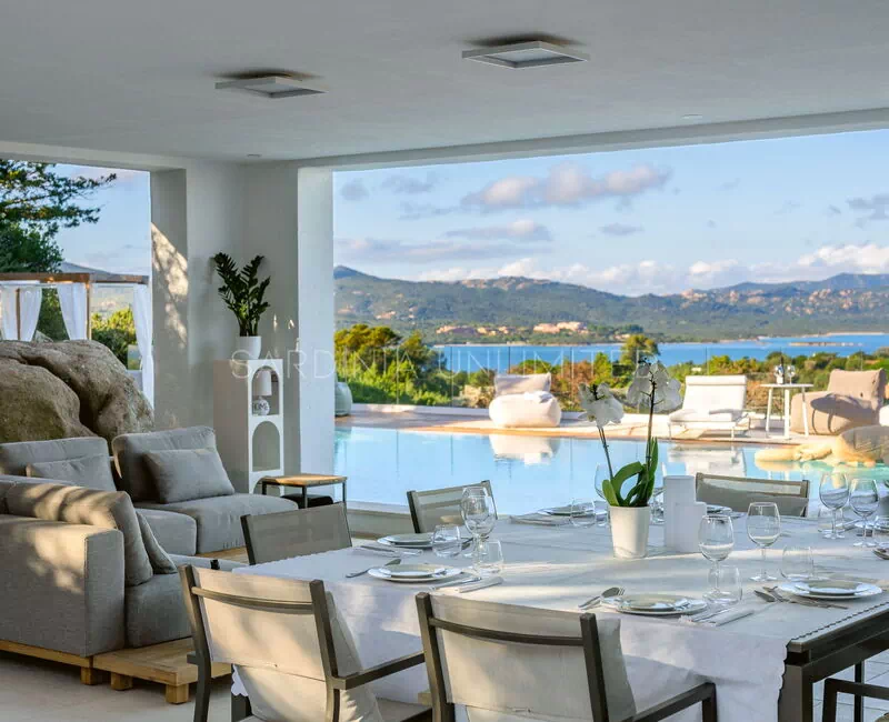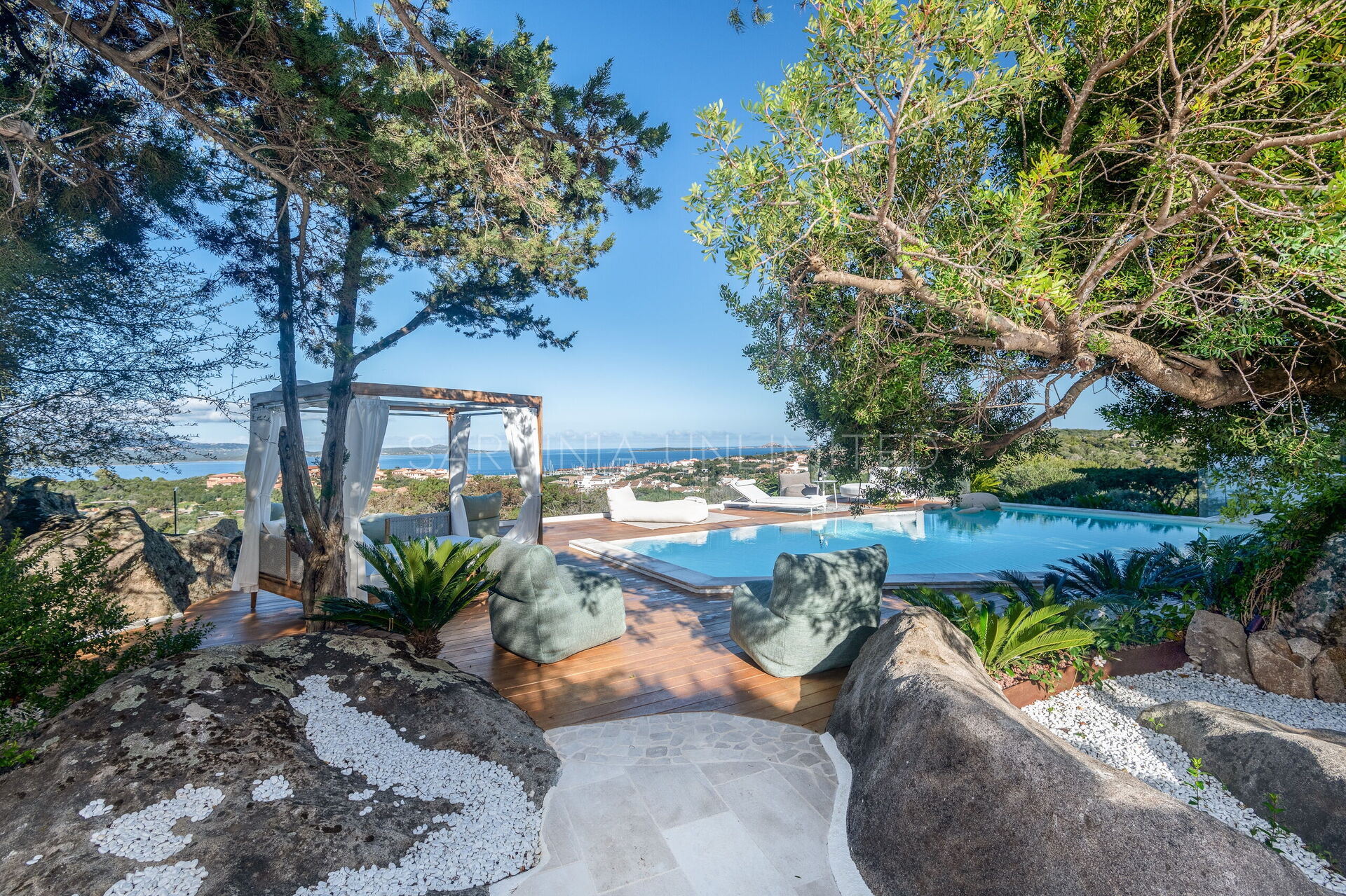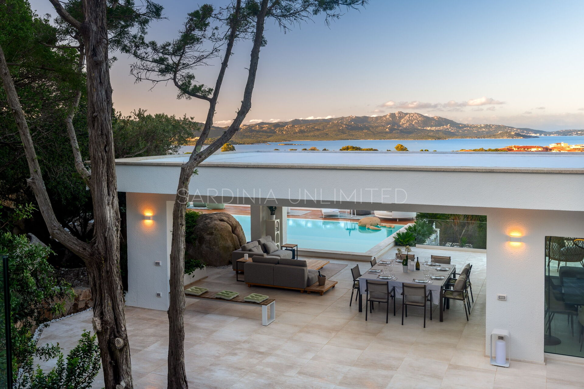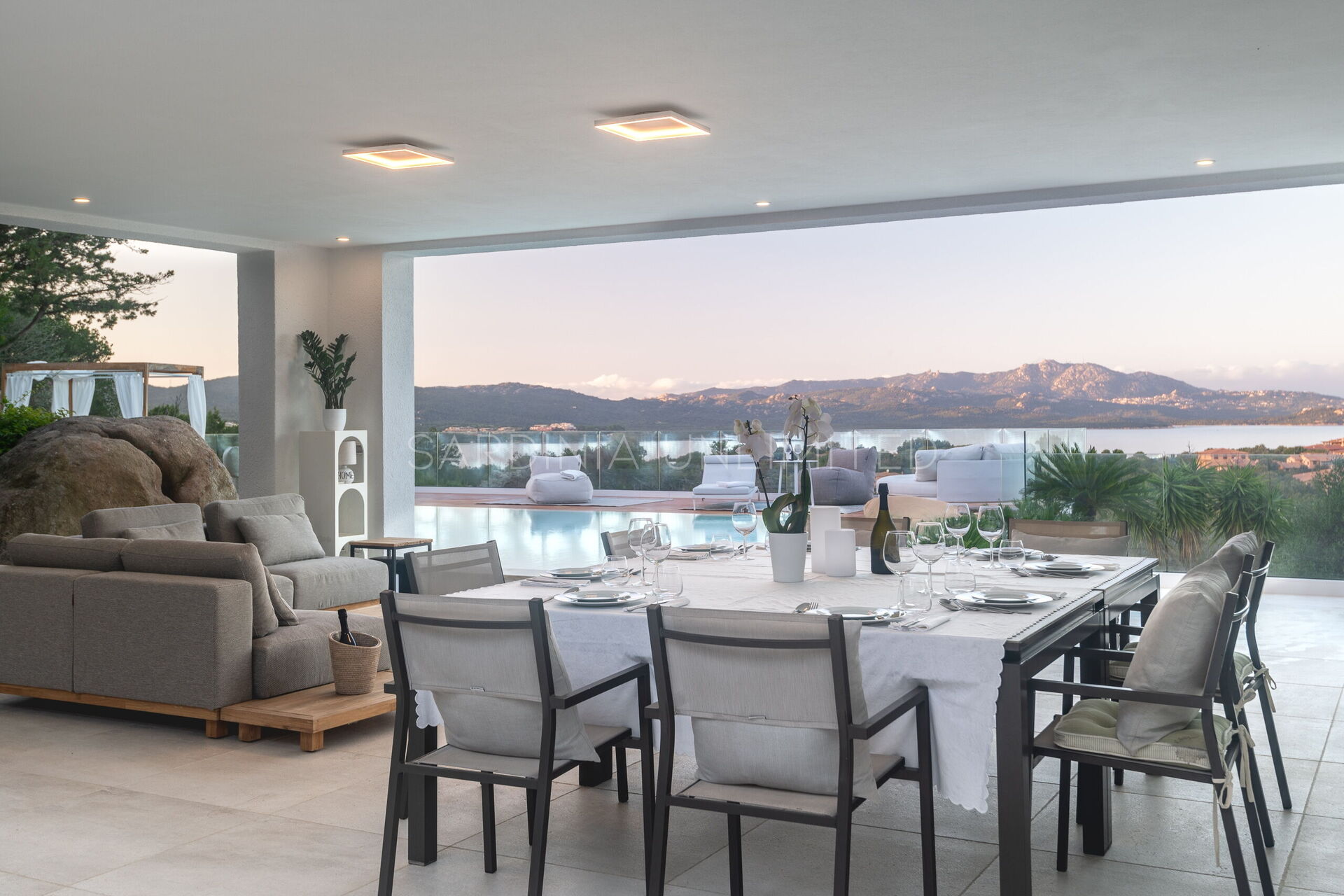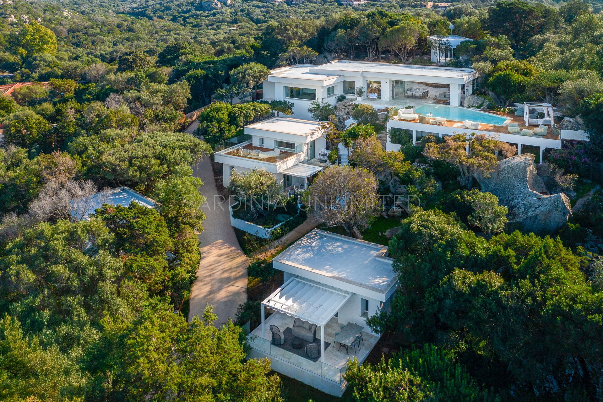 La sua posizione sopraelevata regala una vista panoramica straordinaria che abbraccia il Golfo di Cugnana, Mortorio, Portisco, Cala di Volpe e Porto Rotondo, offrendo scenari sempre diversi durante il giorno e al tramonto. La proprietà è composta da una Villa Padronale e cinque villette indipendenti immerse nel parco, inclusa una dependance completamente autonoma, soluzione ideale per accogliere famiglie numerose o gruppi di amici garantendo comfort e spazi privati.