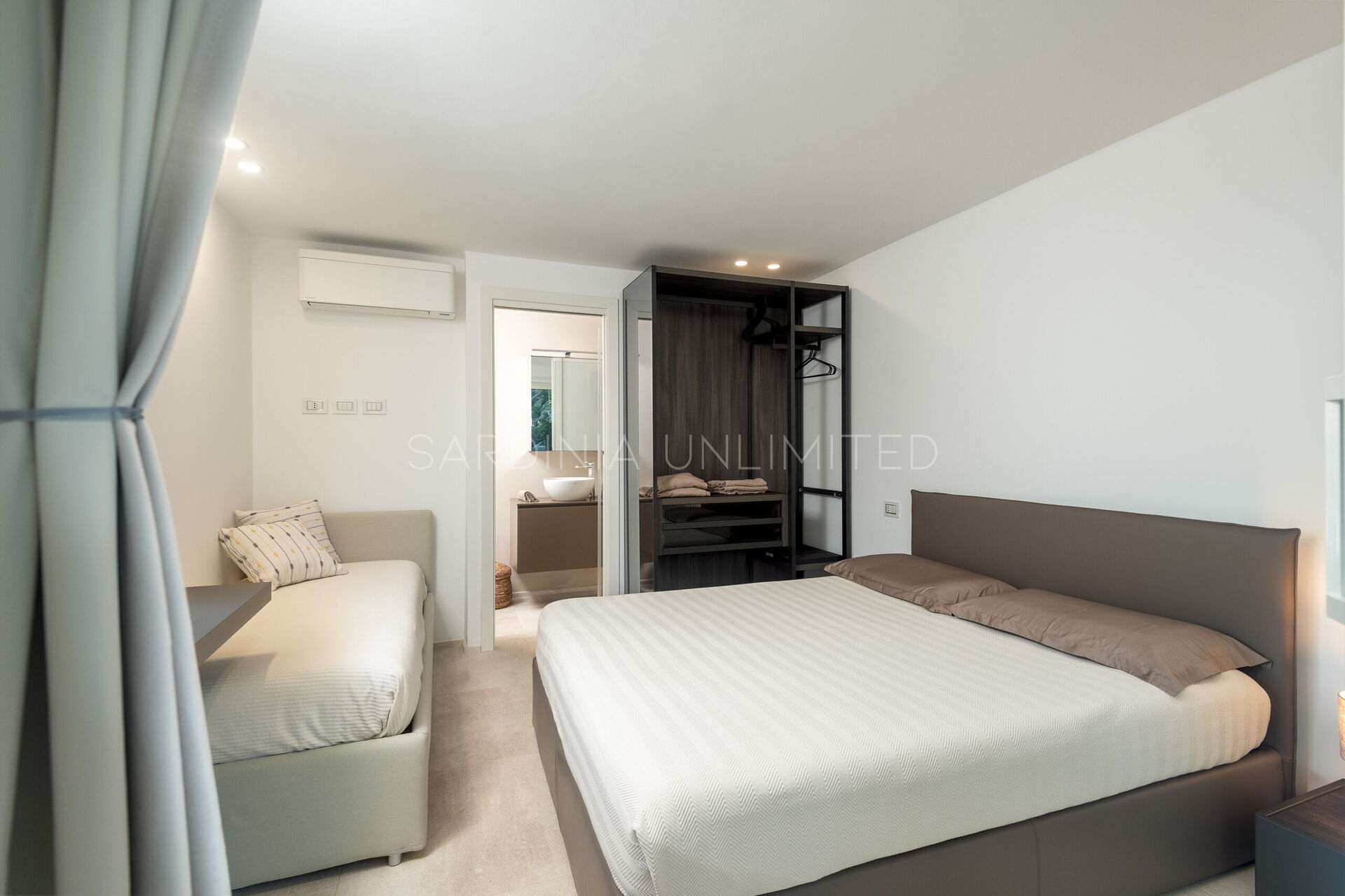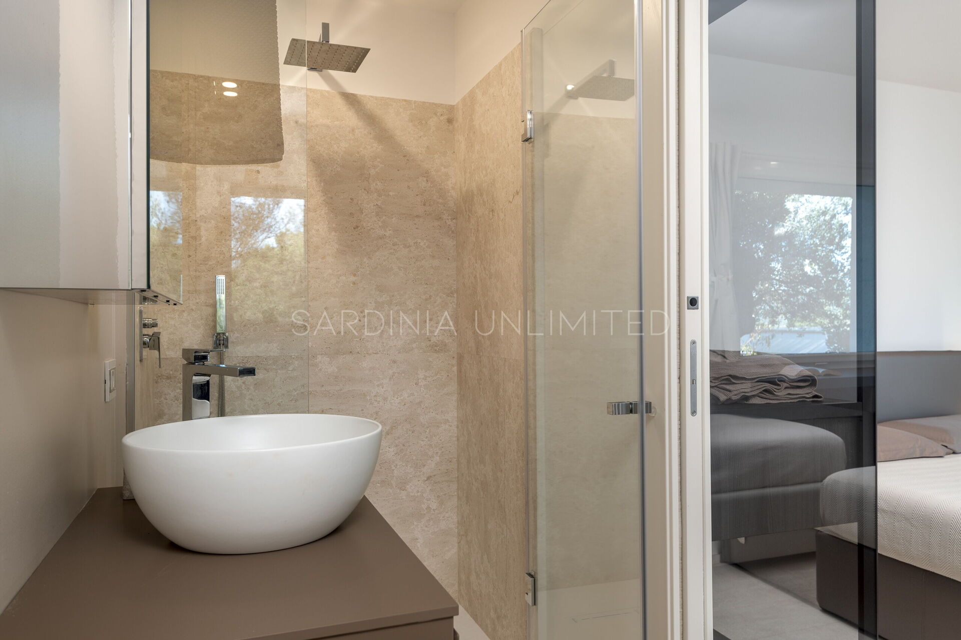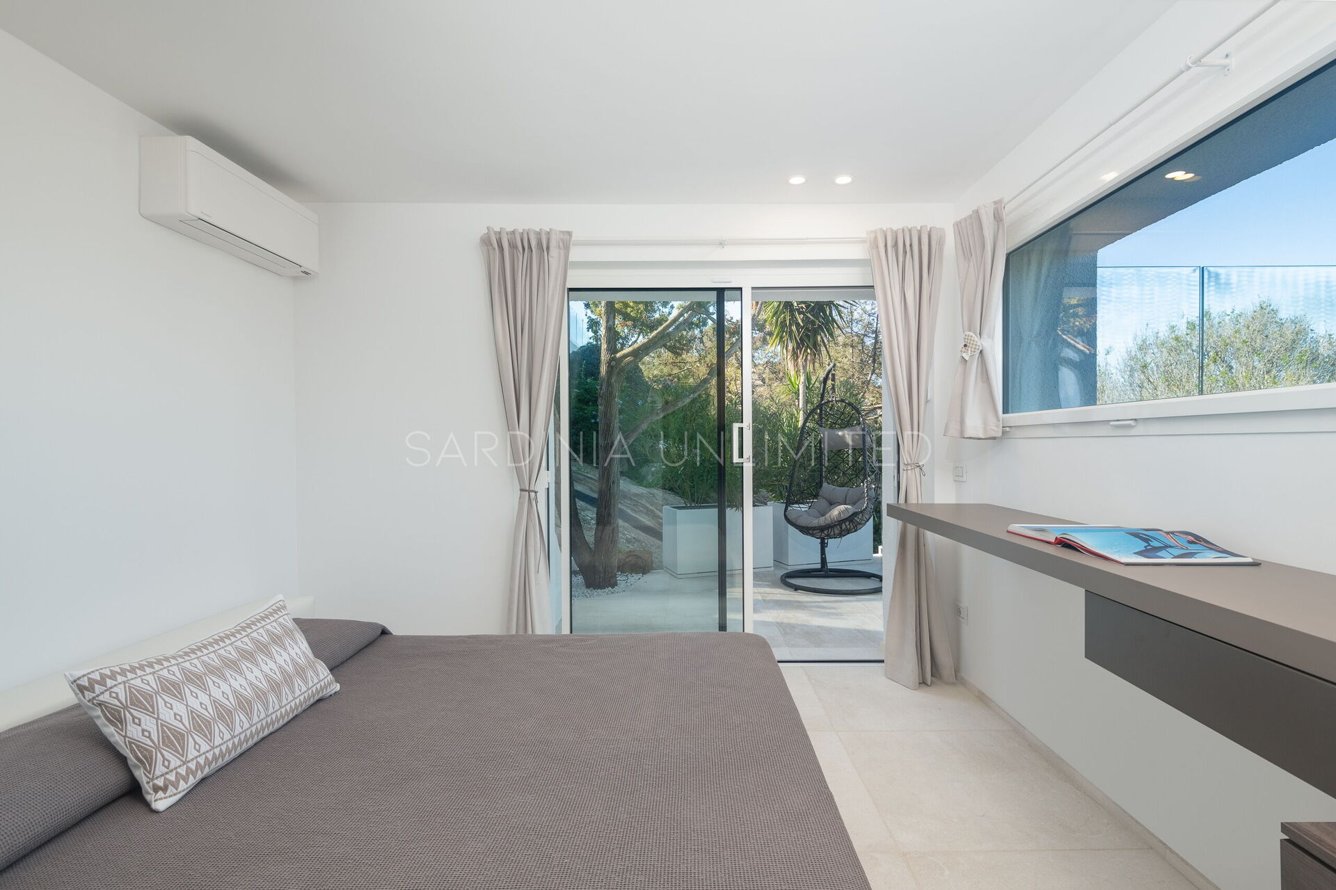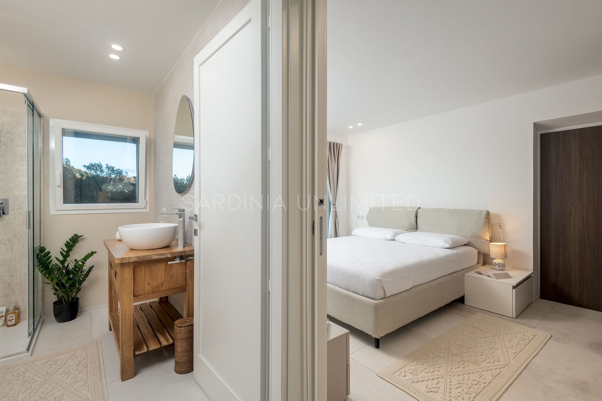 La zona notte è dominata da una spettacolare suite padronale caratterizzata da grandi vetrate che regalano viste suggestive sul paesaggio, sulla piscina e su Porto Rotondo, offrendo un’atmosfera di assoluta pace e privacy. La camera è dotata di cabina armadio e bagno en-suite con accesso a una terrazza privata ed è stata completamente rinnovata nel 2024, come il resto della villa, con impianti di climatizzazione e riscaldamento gestibili autonomamente. Una seconda camera matrimoniale con balcone e bagno privato completa la Villa Padronale, ideale per ospitare familiari o amici.