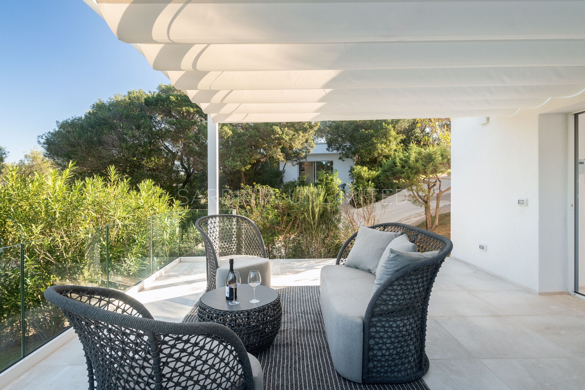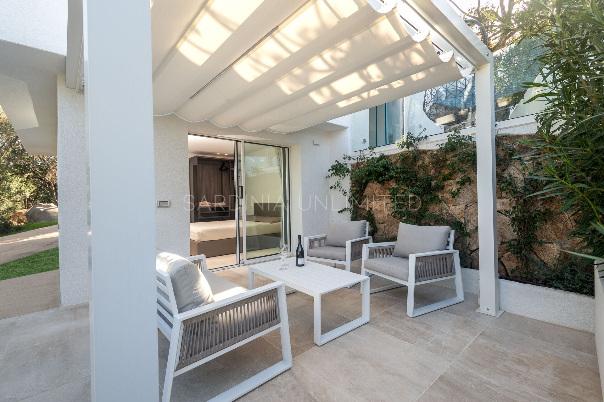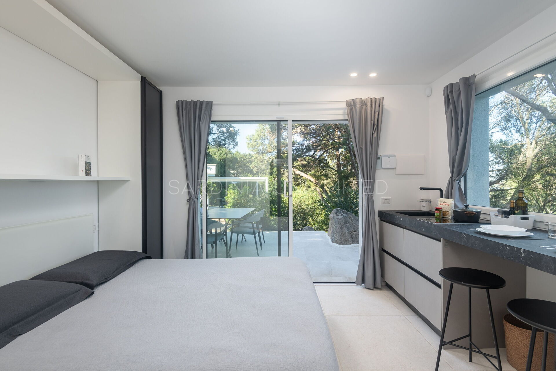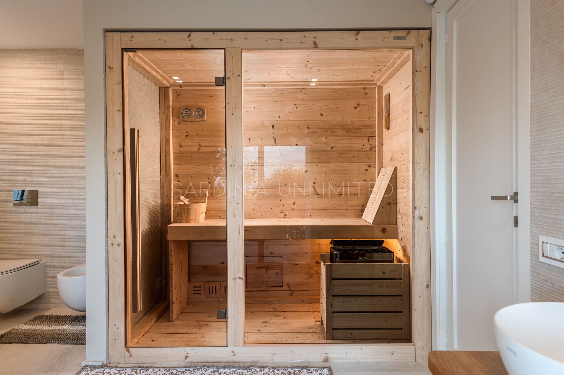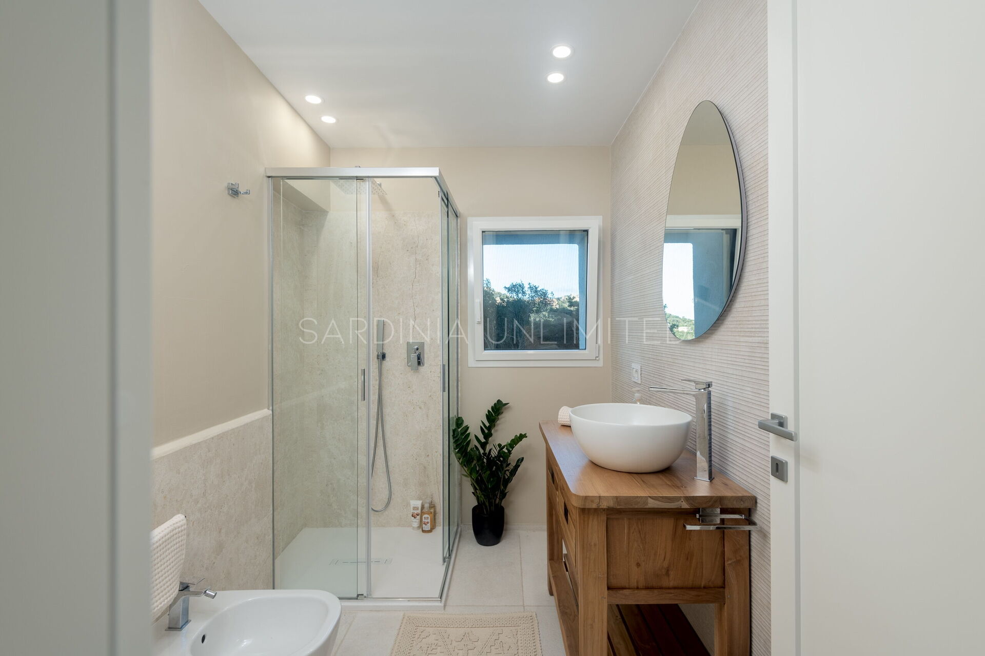 La zona notte è dominata da una spettacolare suite padronale caratterizzata da grandi vetrate che regalano viste suggestive sul paesaggio, sulla piscina e su Porto Rotondo, offrendo un’atmosfera di assoluta pace e privacy. La camera è dotata di cabina armadio e bagno en-suite con accesso a una terrazza privata ed è stata completamente rinnovata nel 2024, come il resto della villa, con impianti di climatizzazione e riscaldamento gestibili autonomamente. Una seconda camera matrimoniale con balcone e bagno privato completa la Villa Padronale, ideale per ospitare familiari o amici.