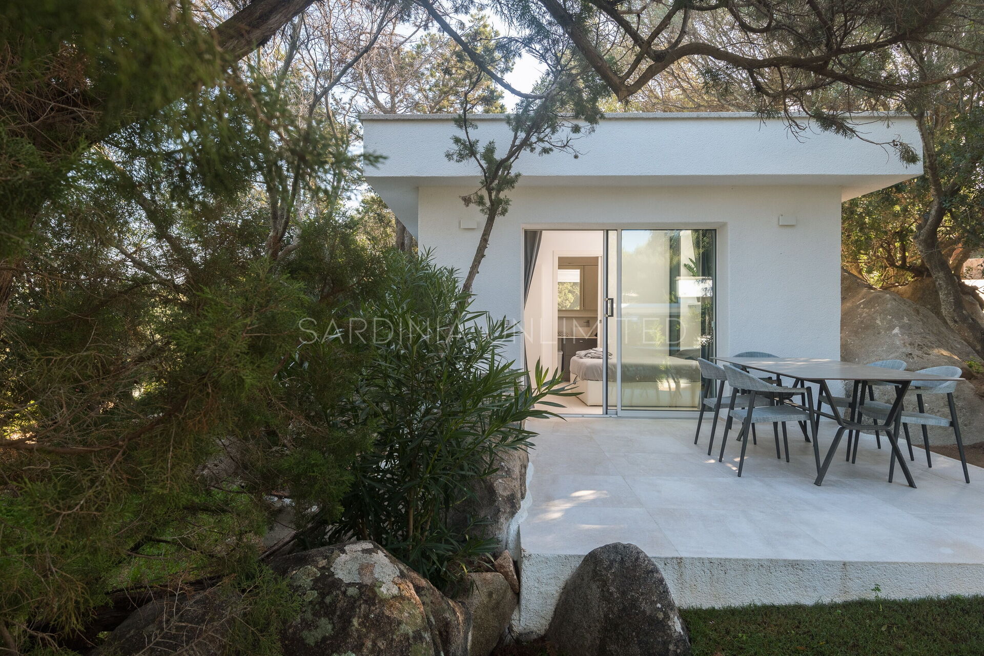 All’interno del parco si trovano cinque villette indipendenti, immerse nella natura e progettate per garantire comfort e riservatezza. Ogni unità dispone di ingresso autonomo, spazi esterni privati e ambienti luminosi grazie alle ampie vetrate panoramiche. Le cinque villette offrono 3 camere matrimoniali romantiche e 2 camere triple (letto matrimoniale più letto singolo), con arredi nuovi e finiture di pregio, aria condizionata autonoma, frigorifero in camera e bagni in marmo di Orosei. Sono la soluzione ideale per accogliere ospiti che desiderano indipendenza senza rinunciare all’eleganza e alla qualità.