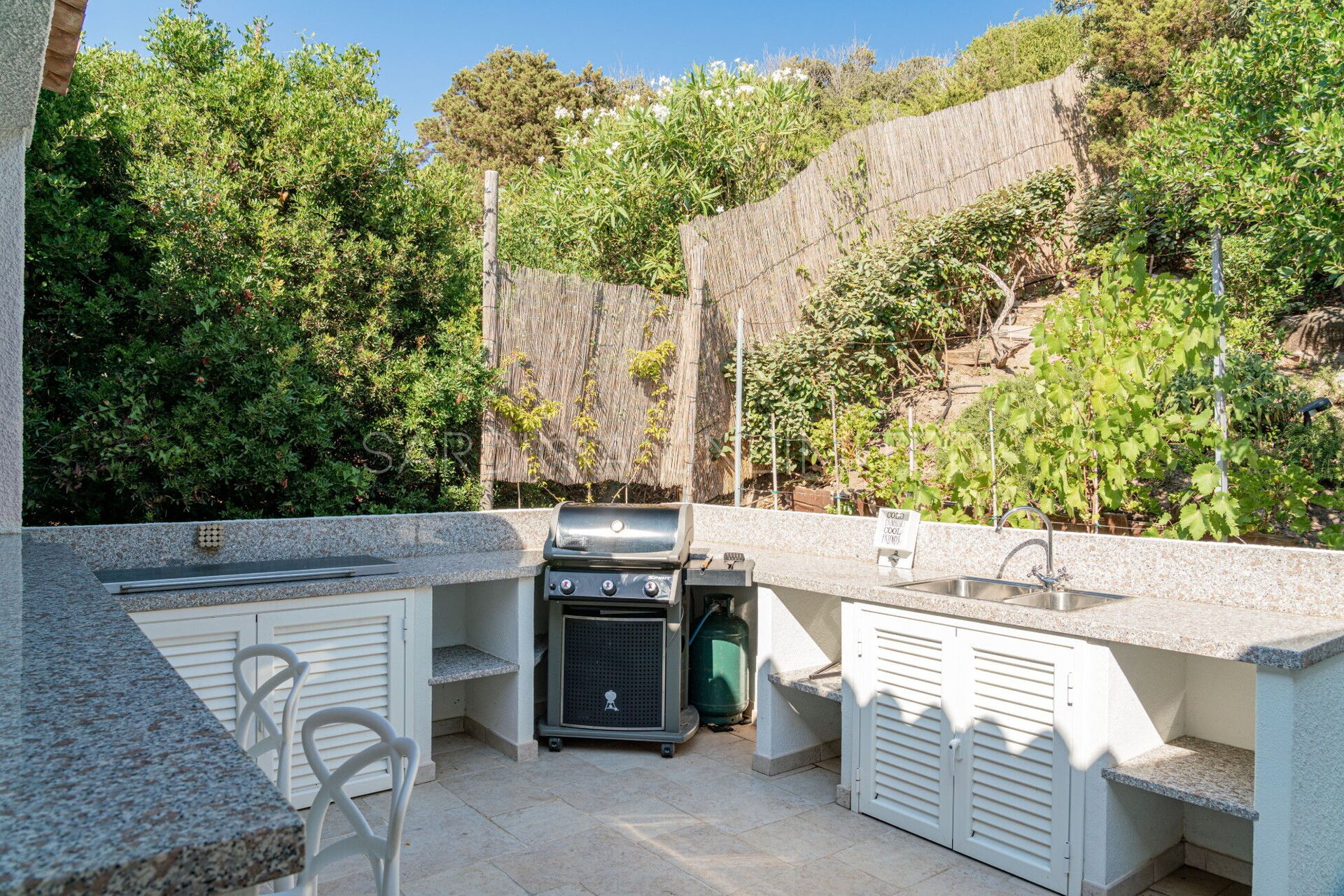 Anche nella parte posteriore della proprietà è possibile trovare un comodo e ampio patio dotato di piano cottura e barbecue, oltre che un largo tavolo e una penisola per consumare piacevolmente i pasti all’aperto. In aggiunta, villa Bolina dispone di diverse dotazioni destinate al tempo libero e alle attività ludiche per spensierati momenti conviviali con parenti ed amici.